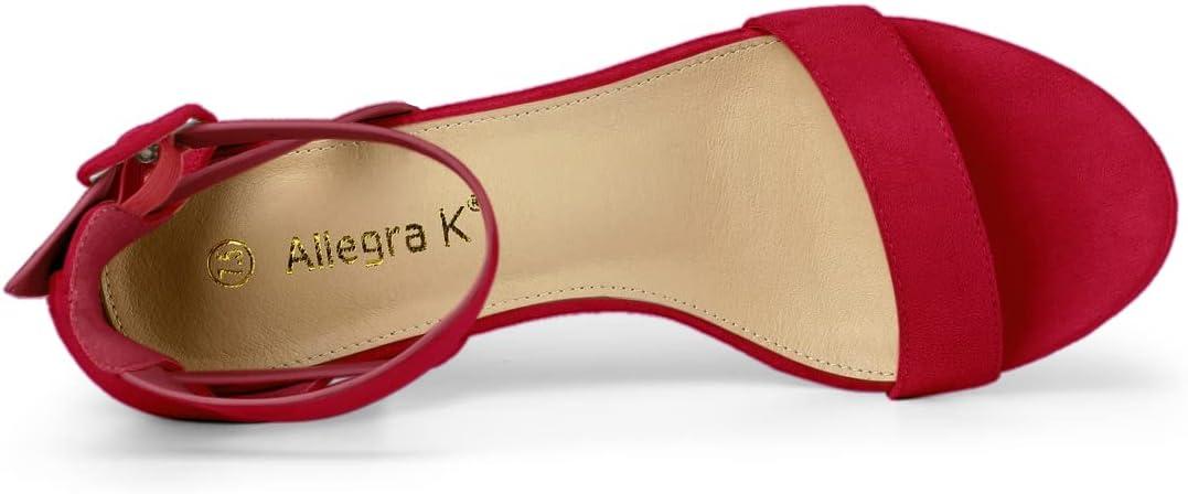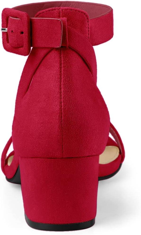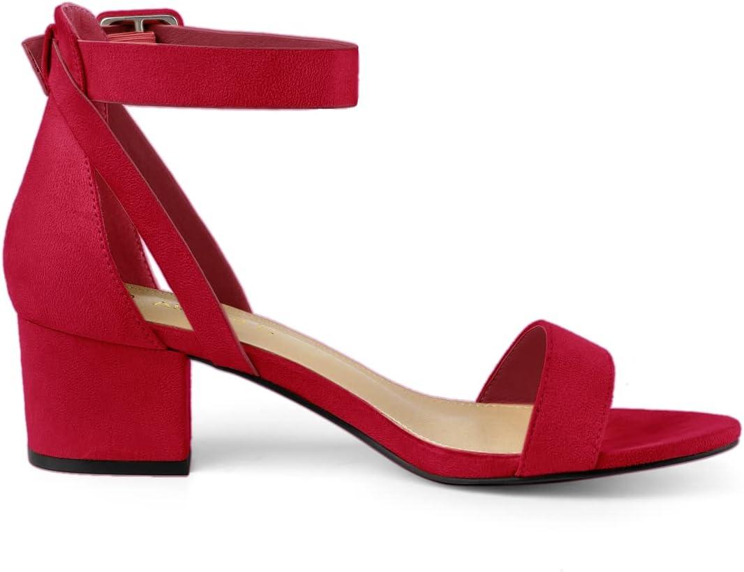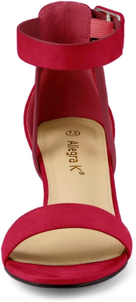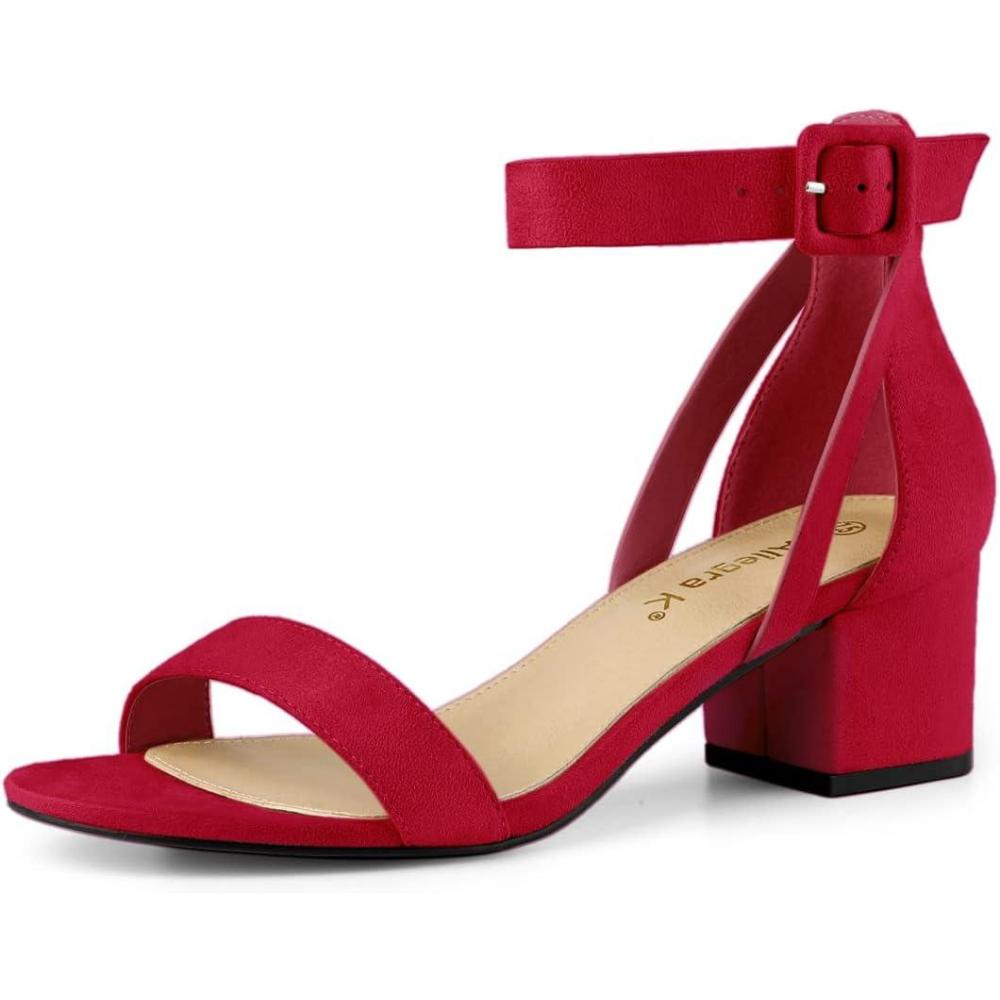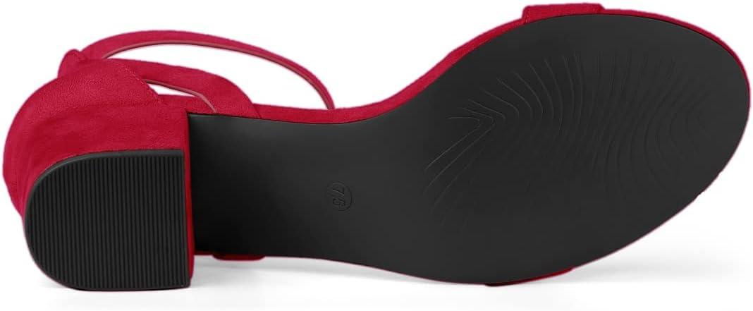 Allegra K Women’s Ankle Strap Block Low Heel Sandal(Red)