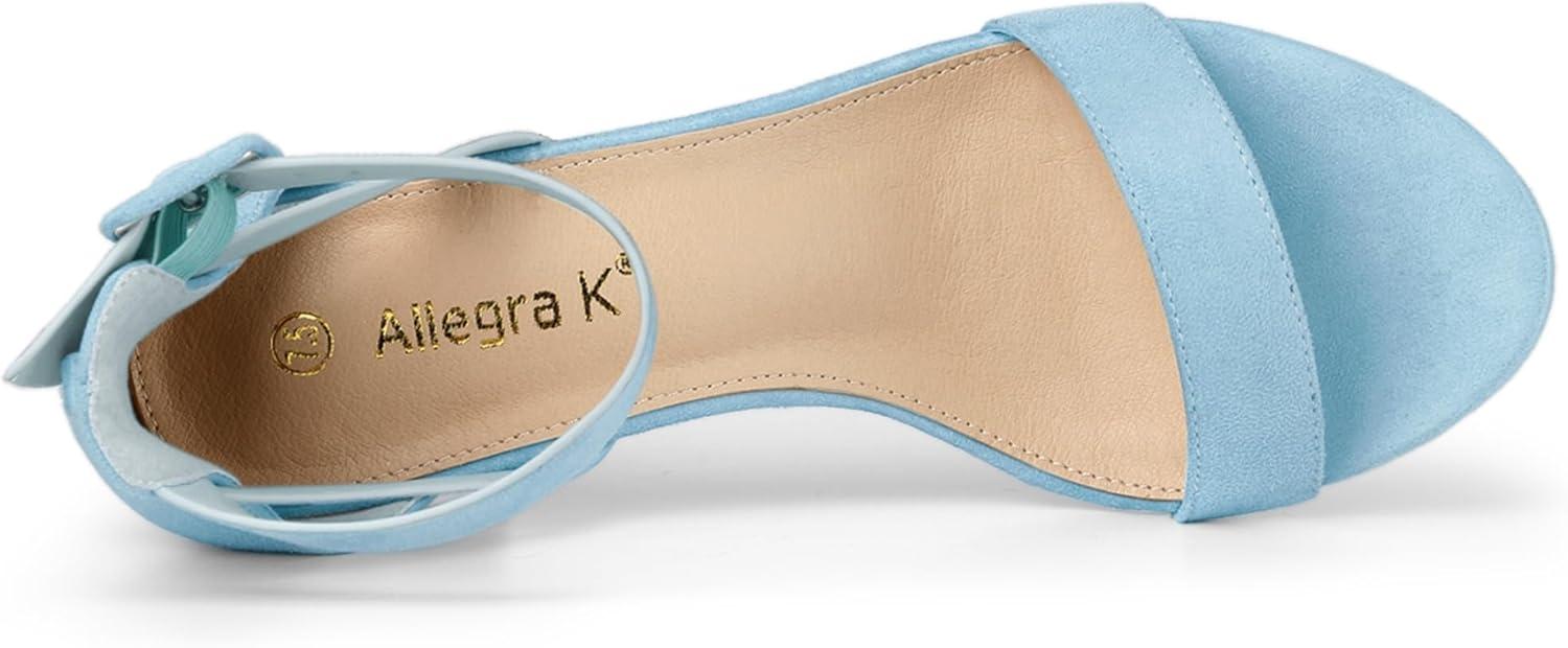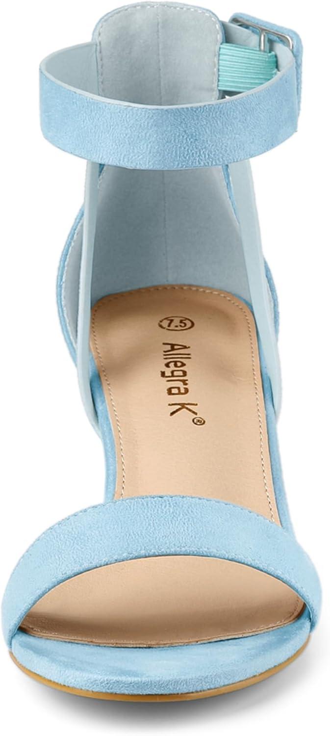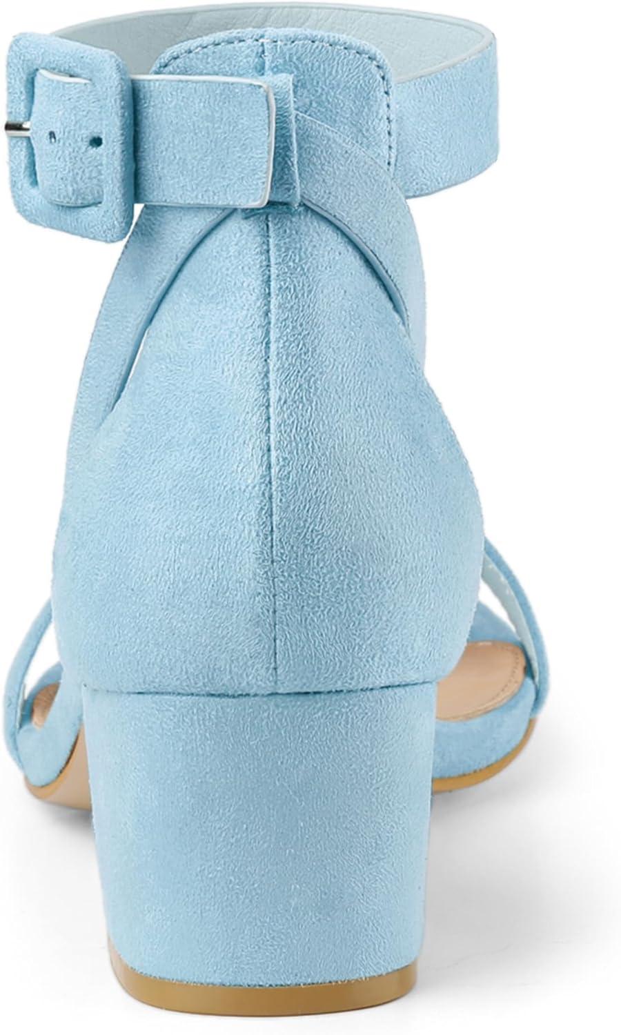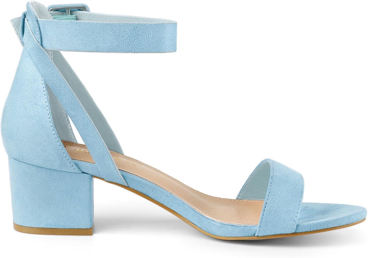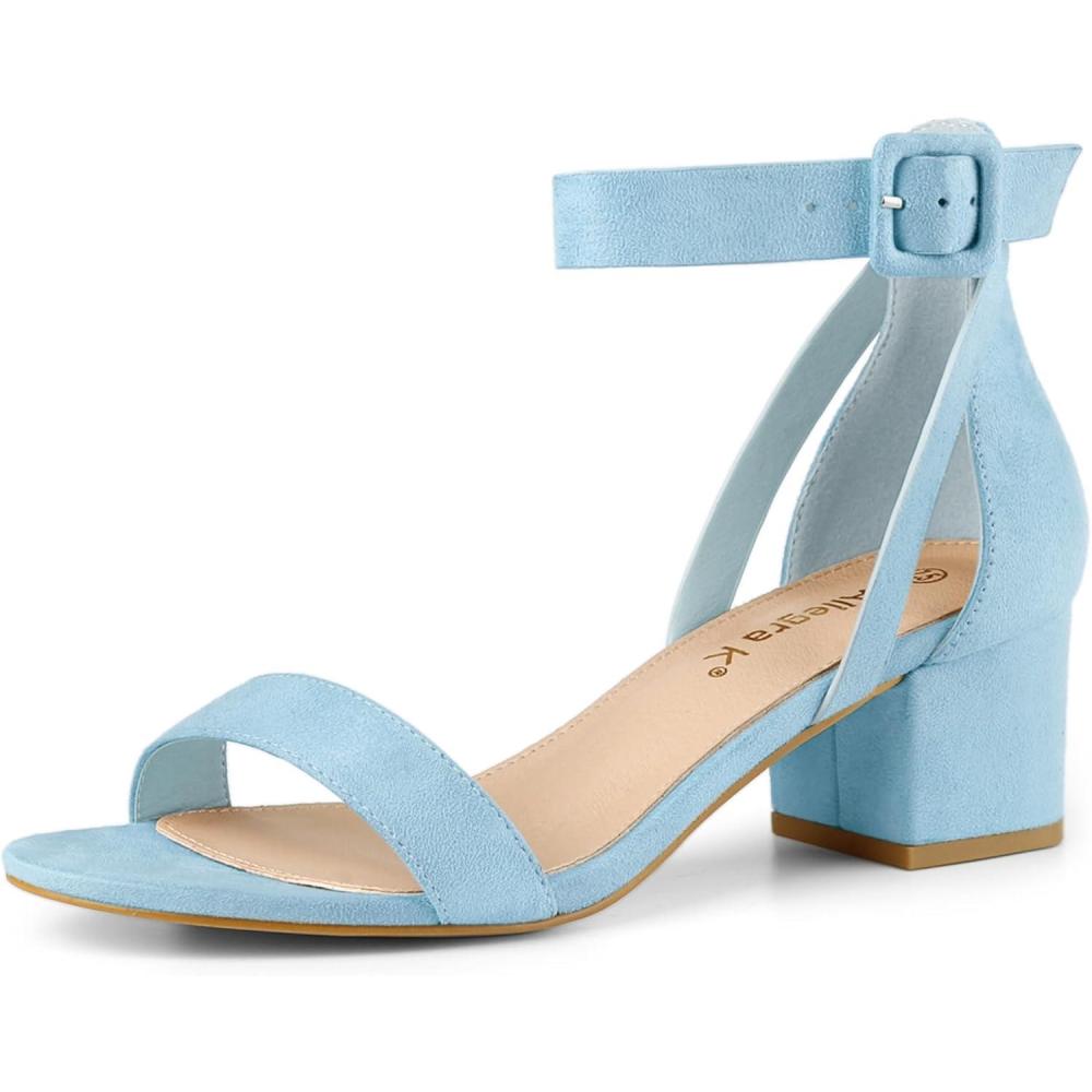 Allegra K Women’s Ankle Strap Block Low Heel Sandal(Sky Blue)