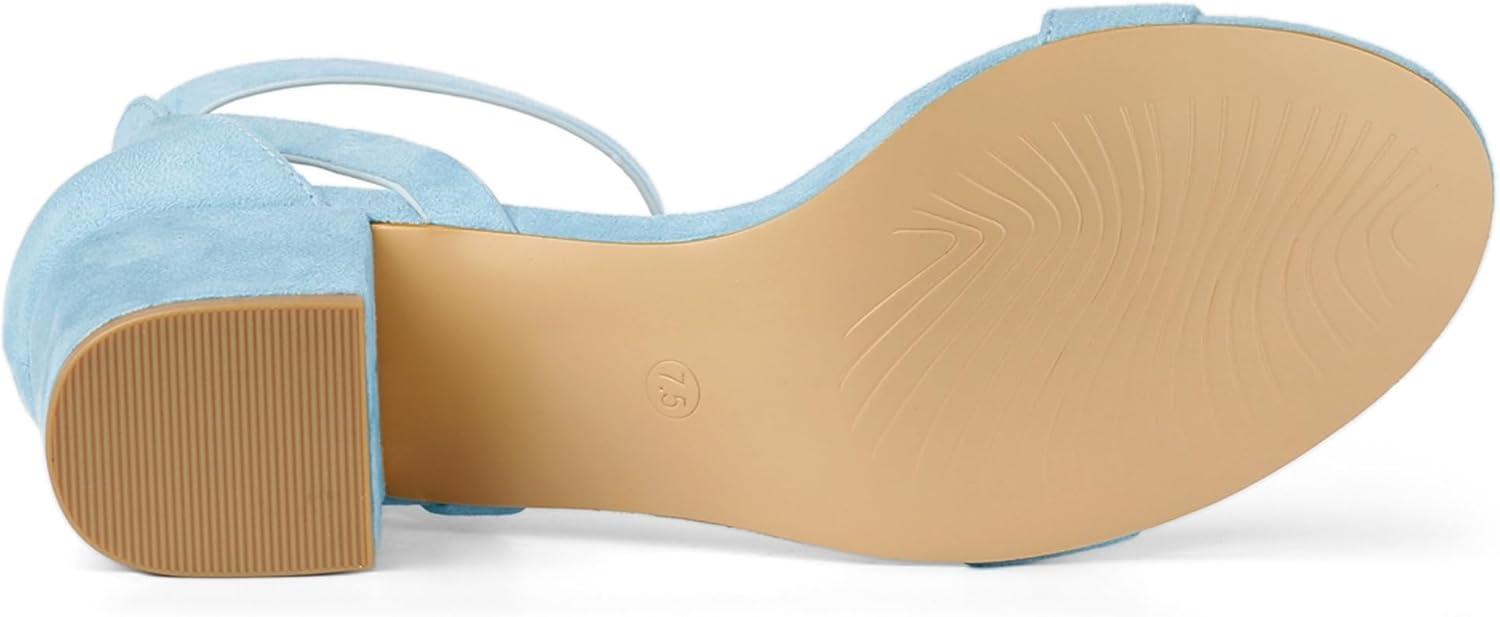 Allegra K Women's Ankle Strap Block Low Heel Sandal(Sky Blue)