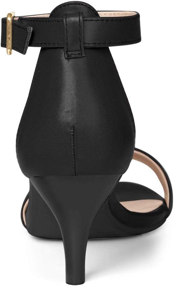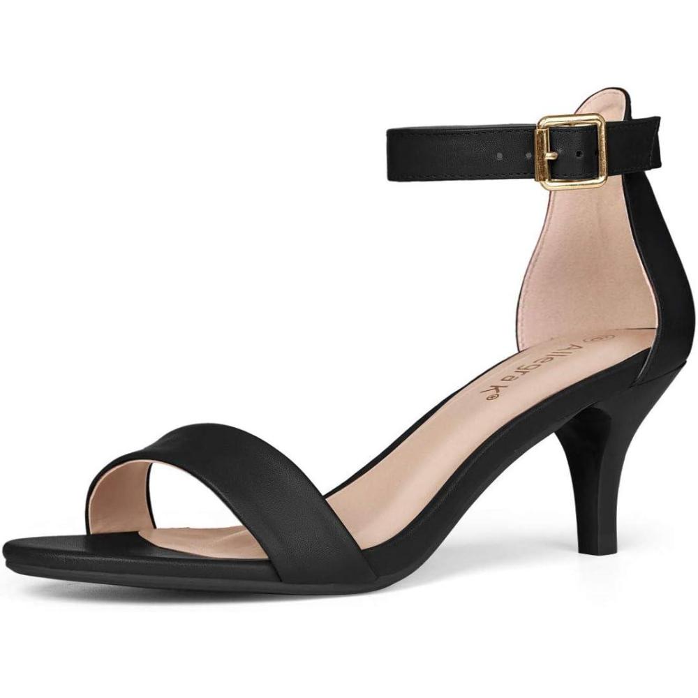 Allegra K Women’s Ankle Strap Kitten Heel Sandals(Black)