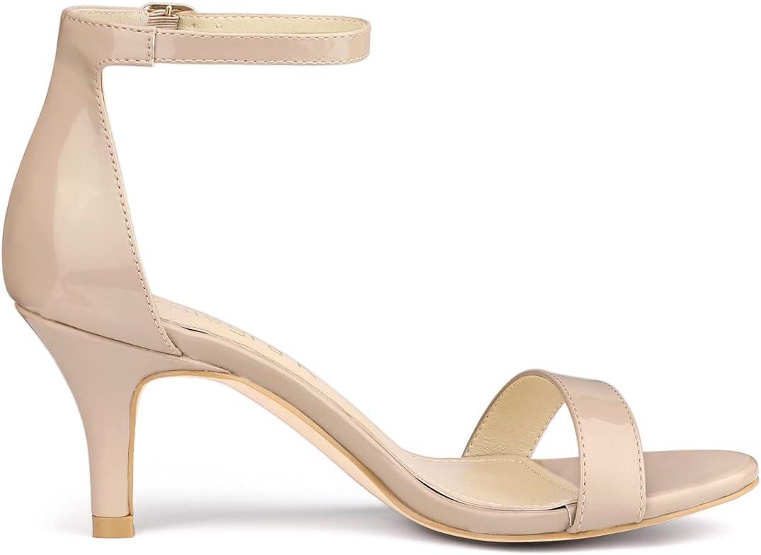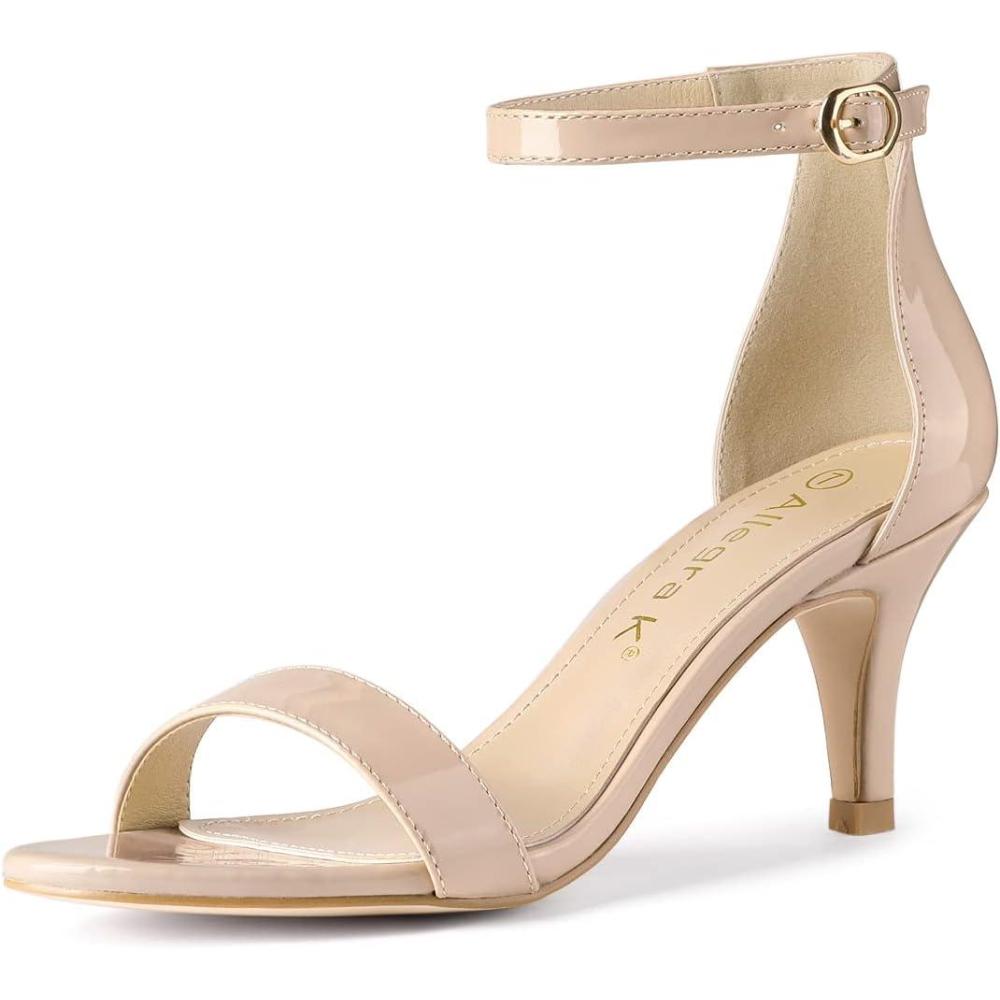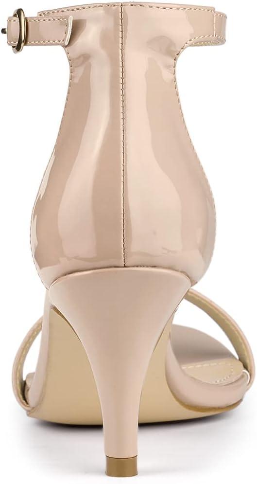 Allegra K Women’s Ankle Strap Kitten Heeled Open Toe Stiletto Heels Sandals(Beige)
