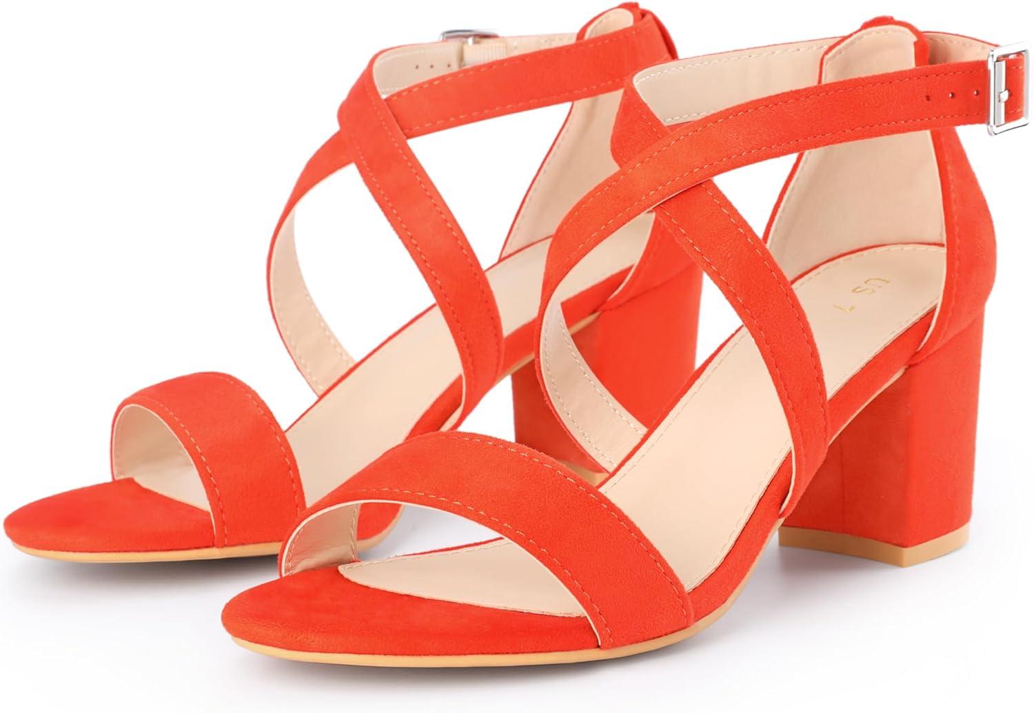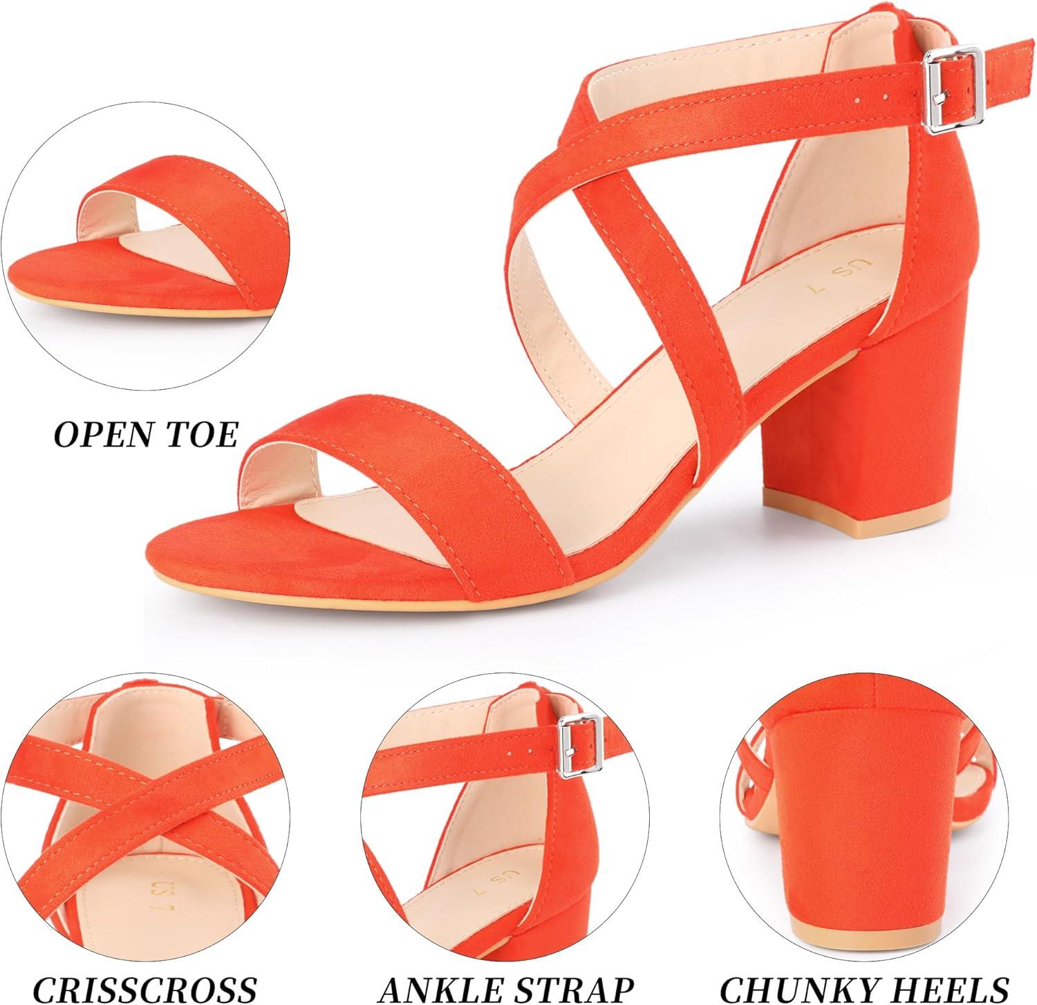 Allegra K Women’s Ankle Strap Open Toe Sandals(Orange)