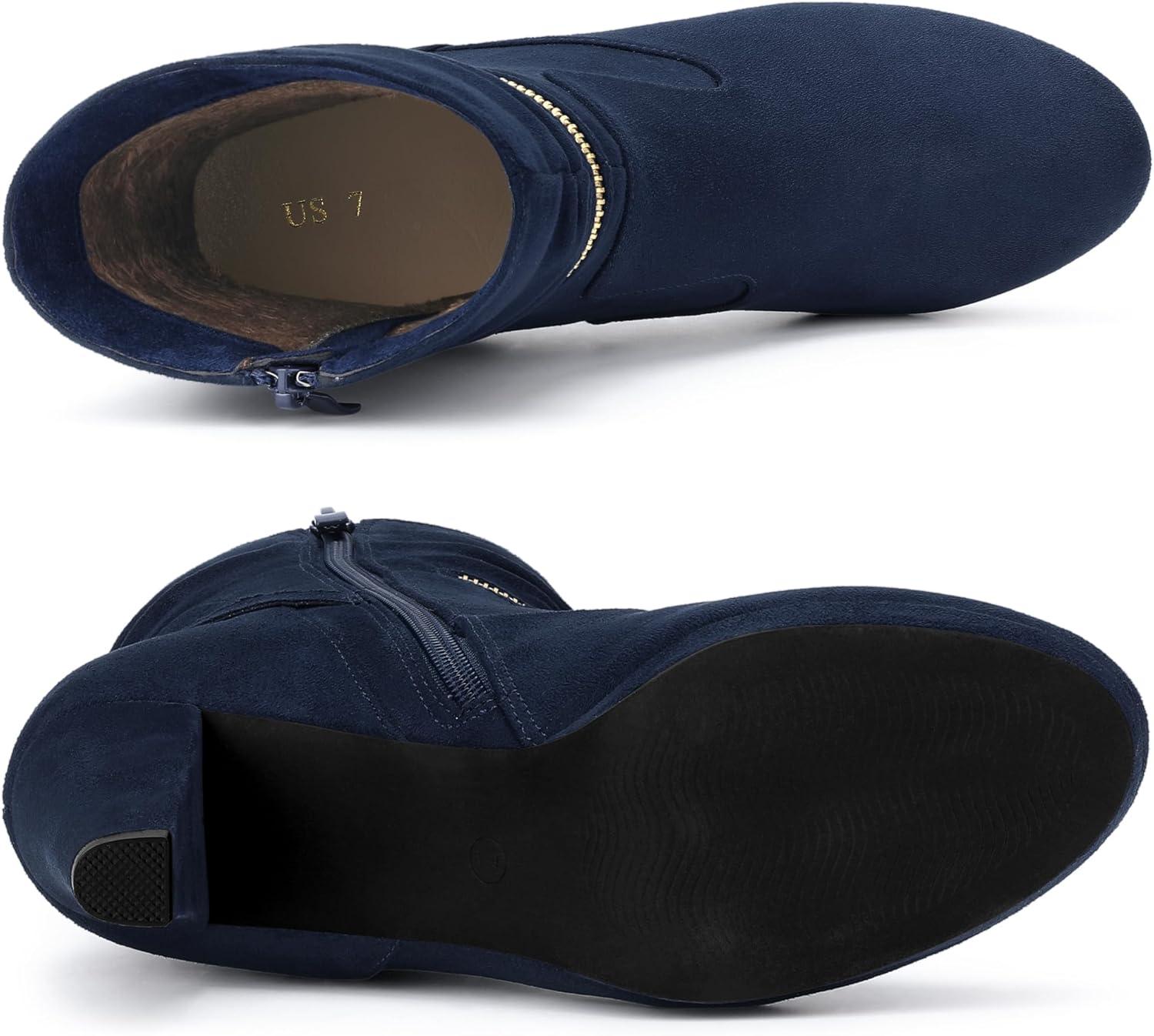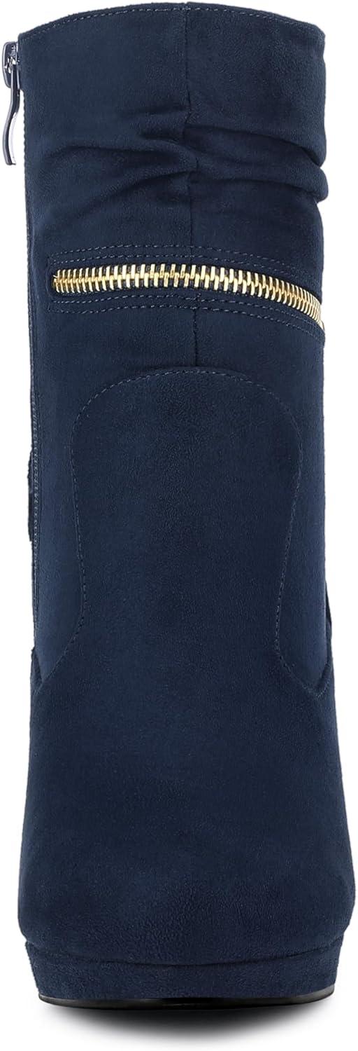 Allegra K Women’s Ankle Zip Platform High Heel Mid Calf Boots(Navy Blue)