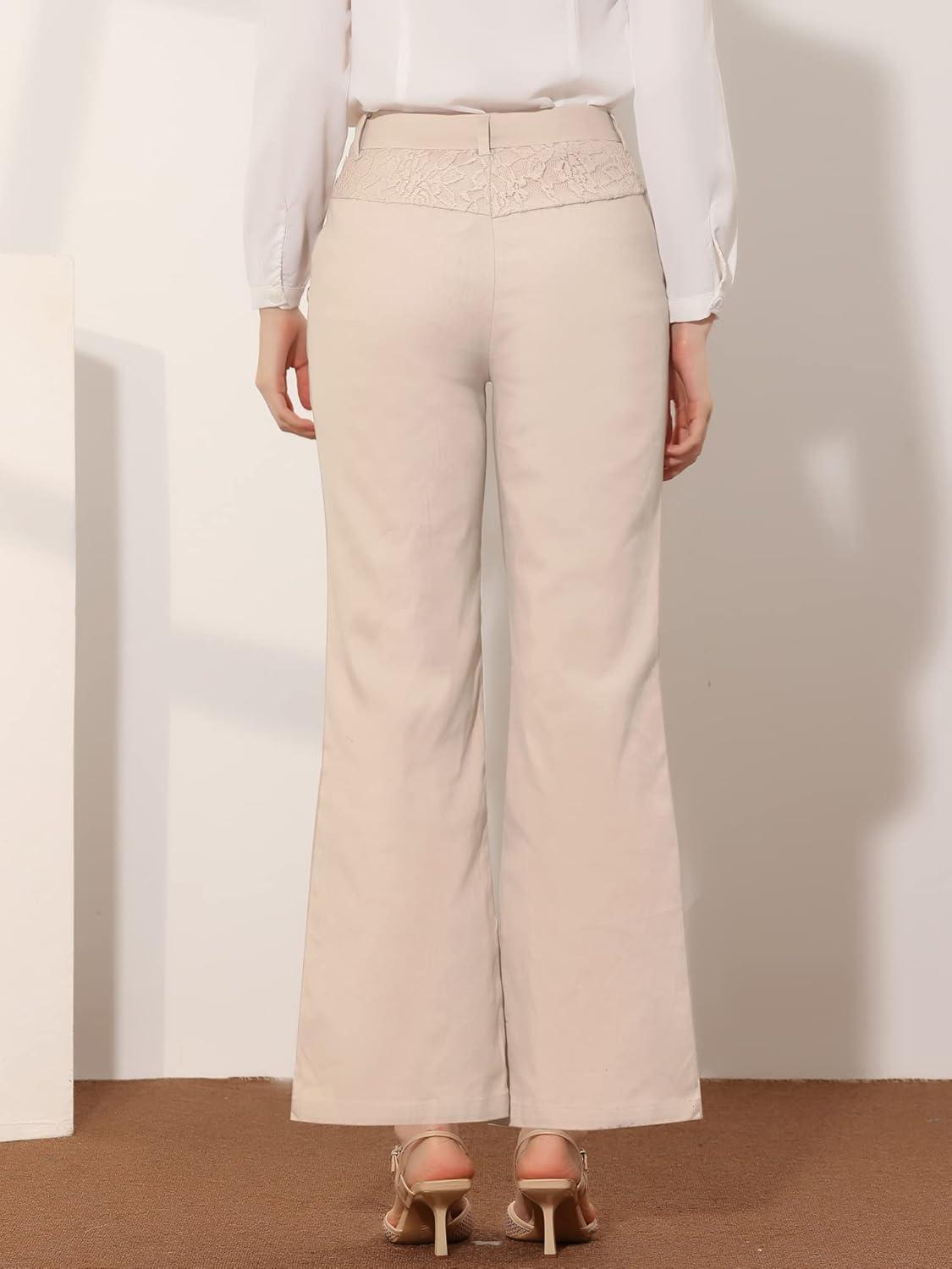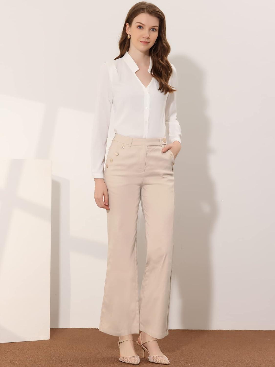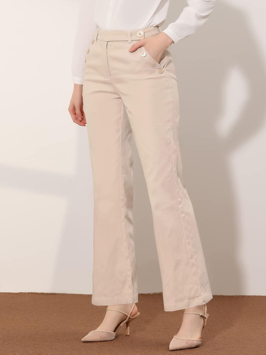Allegra K Women's Bell Bottom 70s Long Pants High Waist Elegant Work Trousers(Apricot)