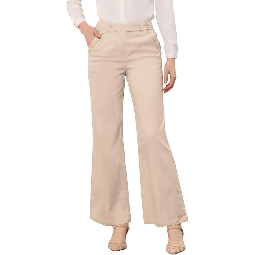 imageAllegra K Womens Bell Bottom 70s Long Pants High Waist Elegant Work TrousersApricot