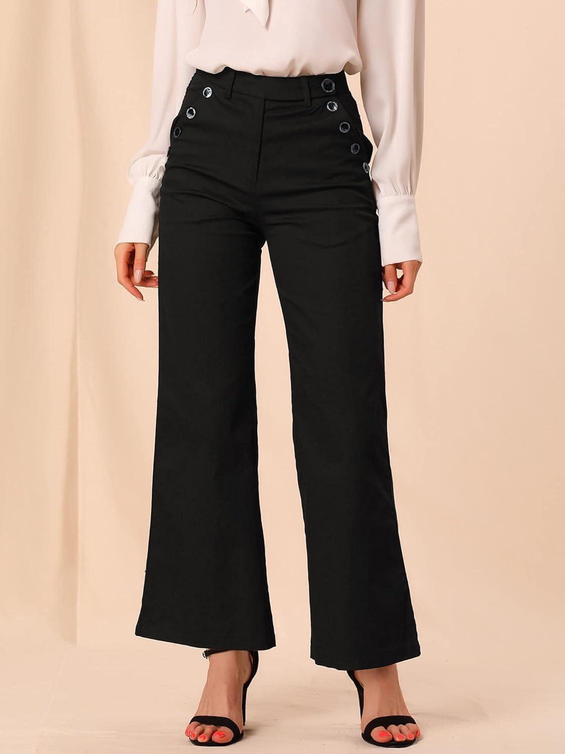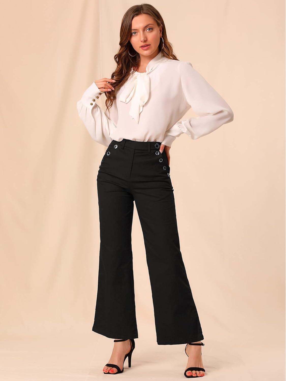 Allegra K Women's Bell Bottom 70s Long Pants High Waist Elegant Work Trousers(Black)