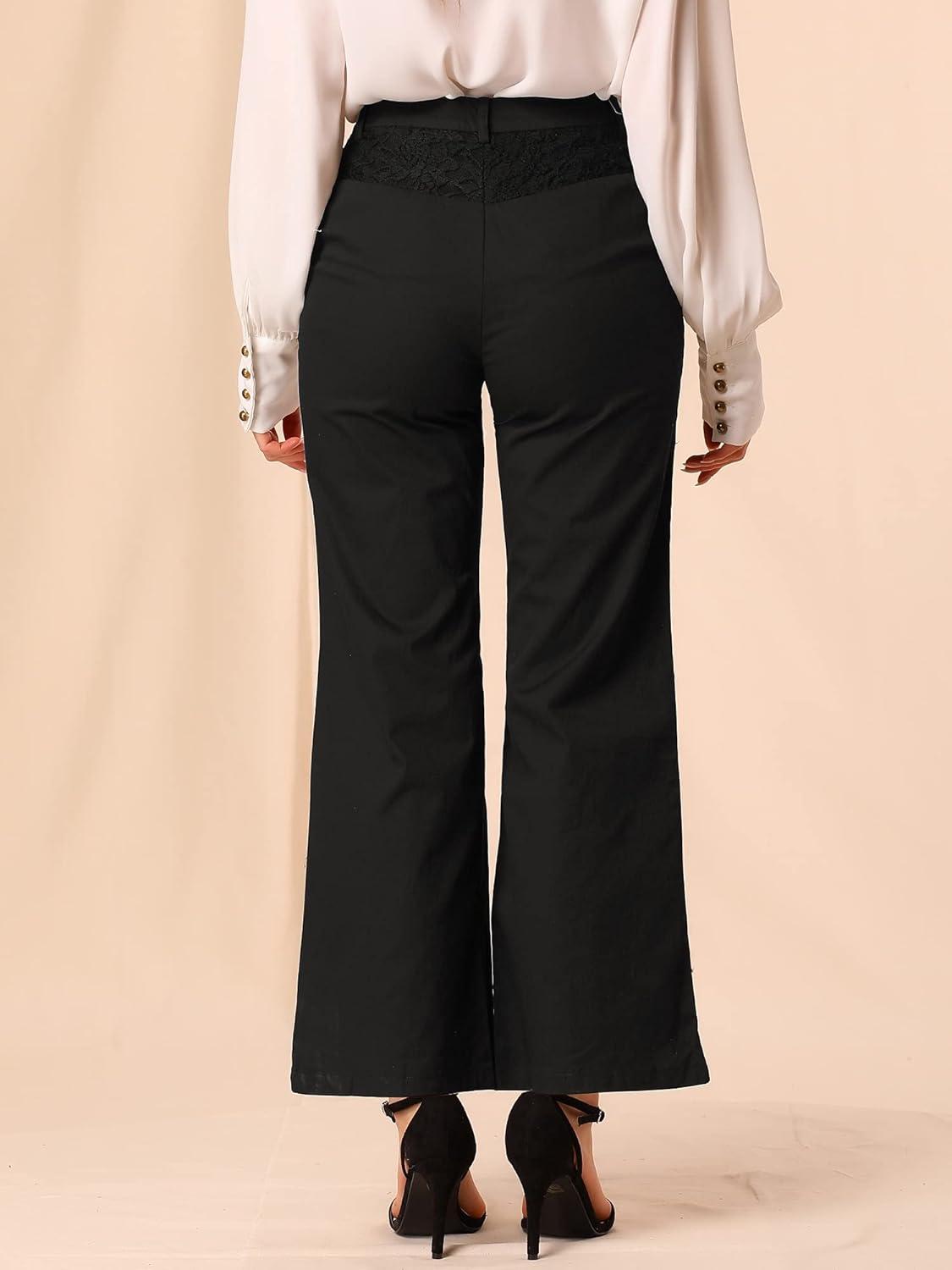 imageAllegra K Womens Bell Bottom 70s Long Pants High Waist Elegant Work TrousersBlack