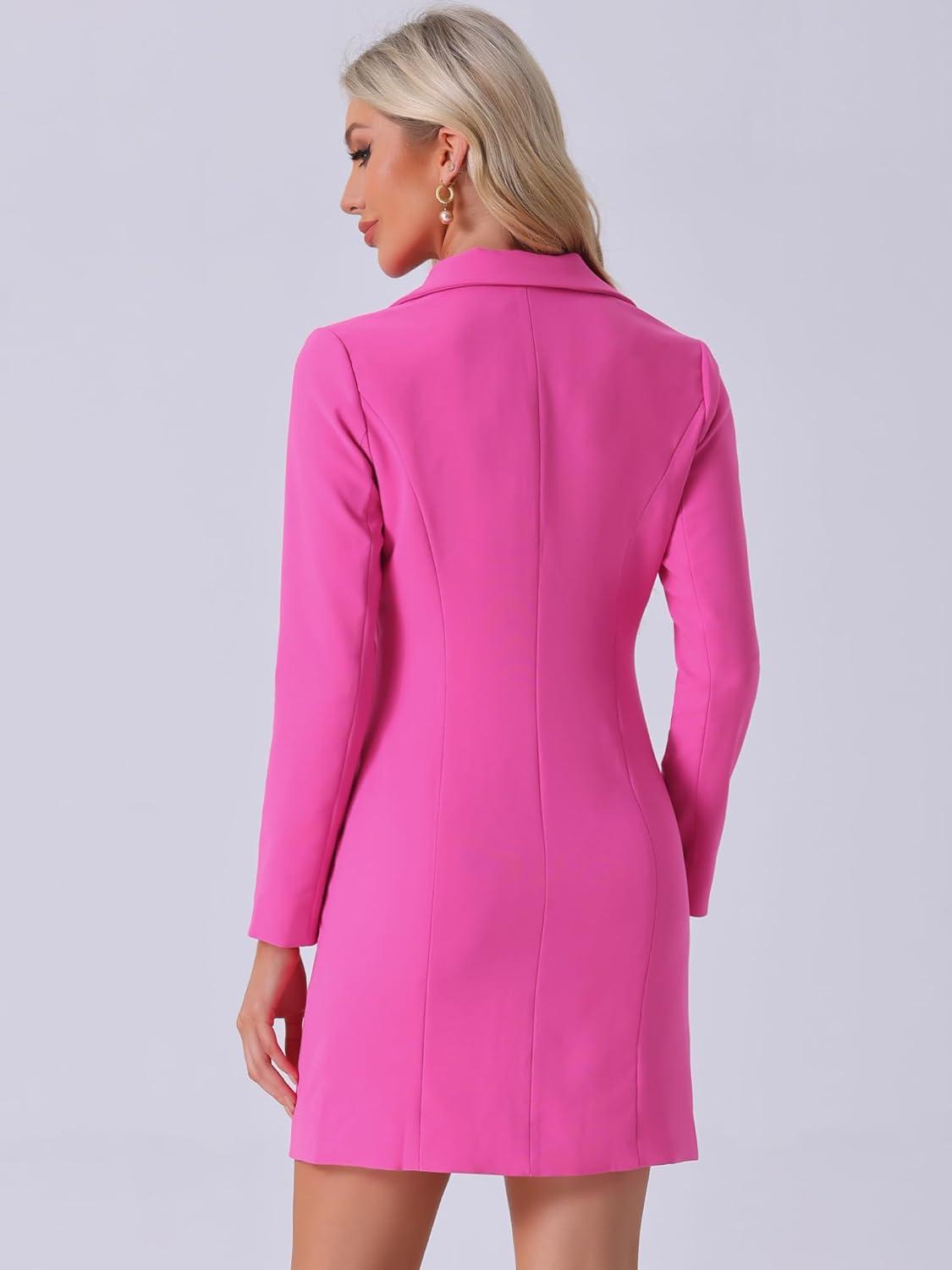 Allegra K Women’s Blazer Dress Notched Lapel Collar Teacher Office Work Jackets Outfits(Hot Pink)