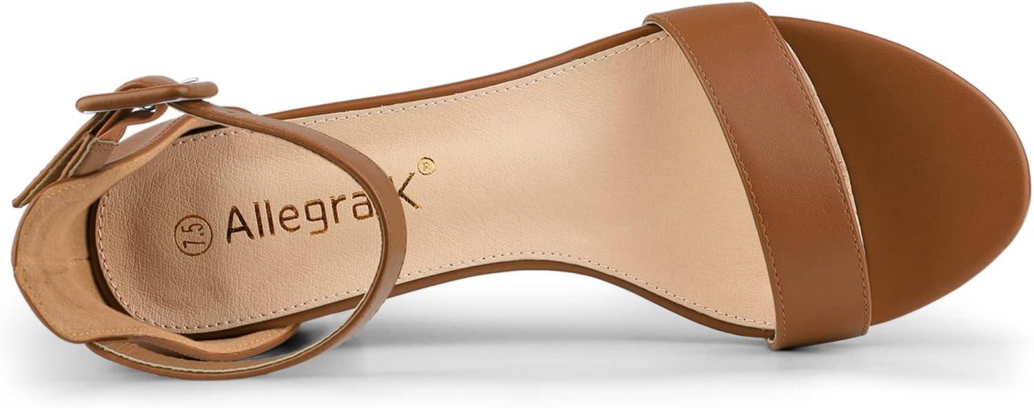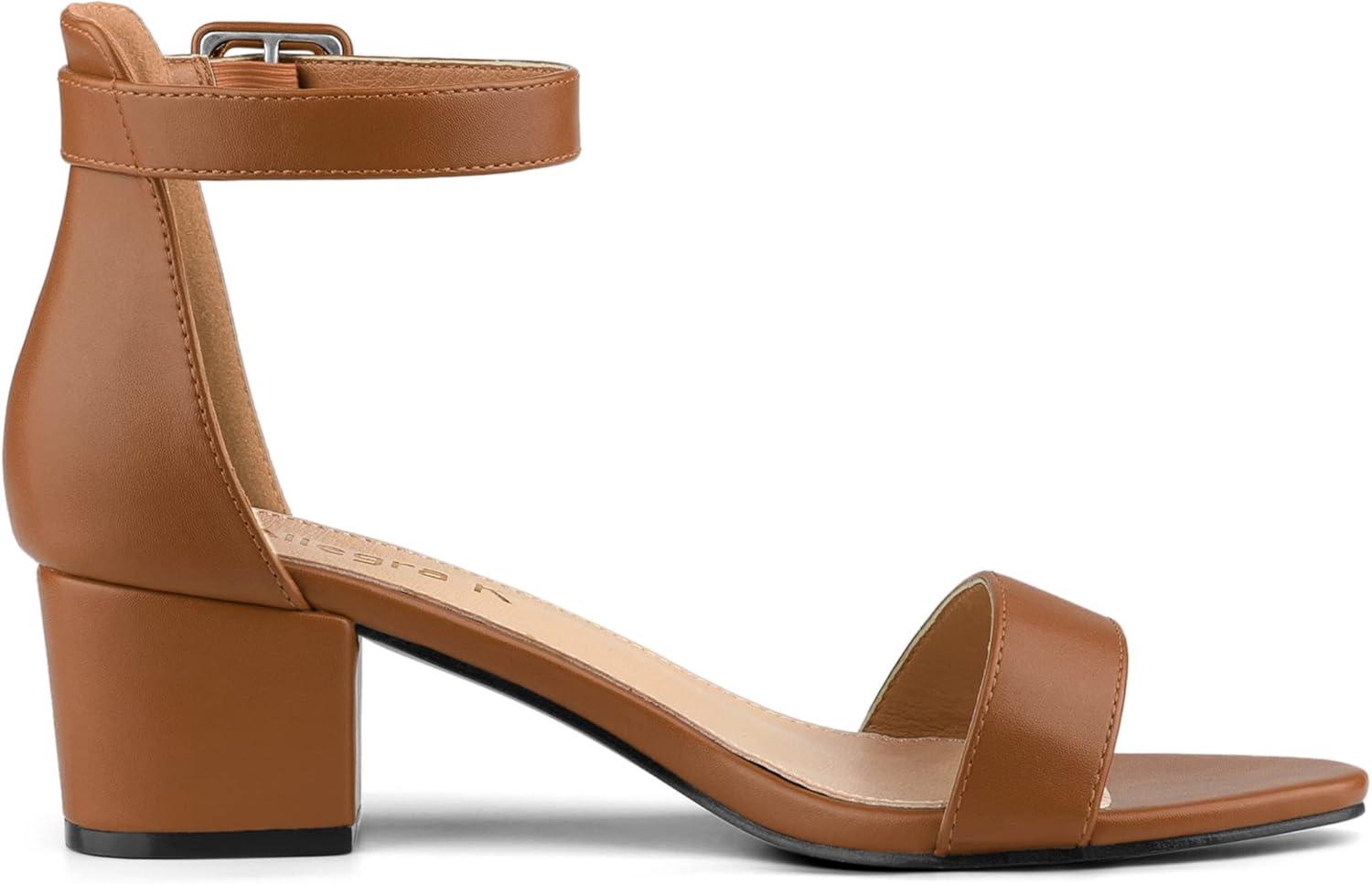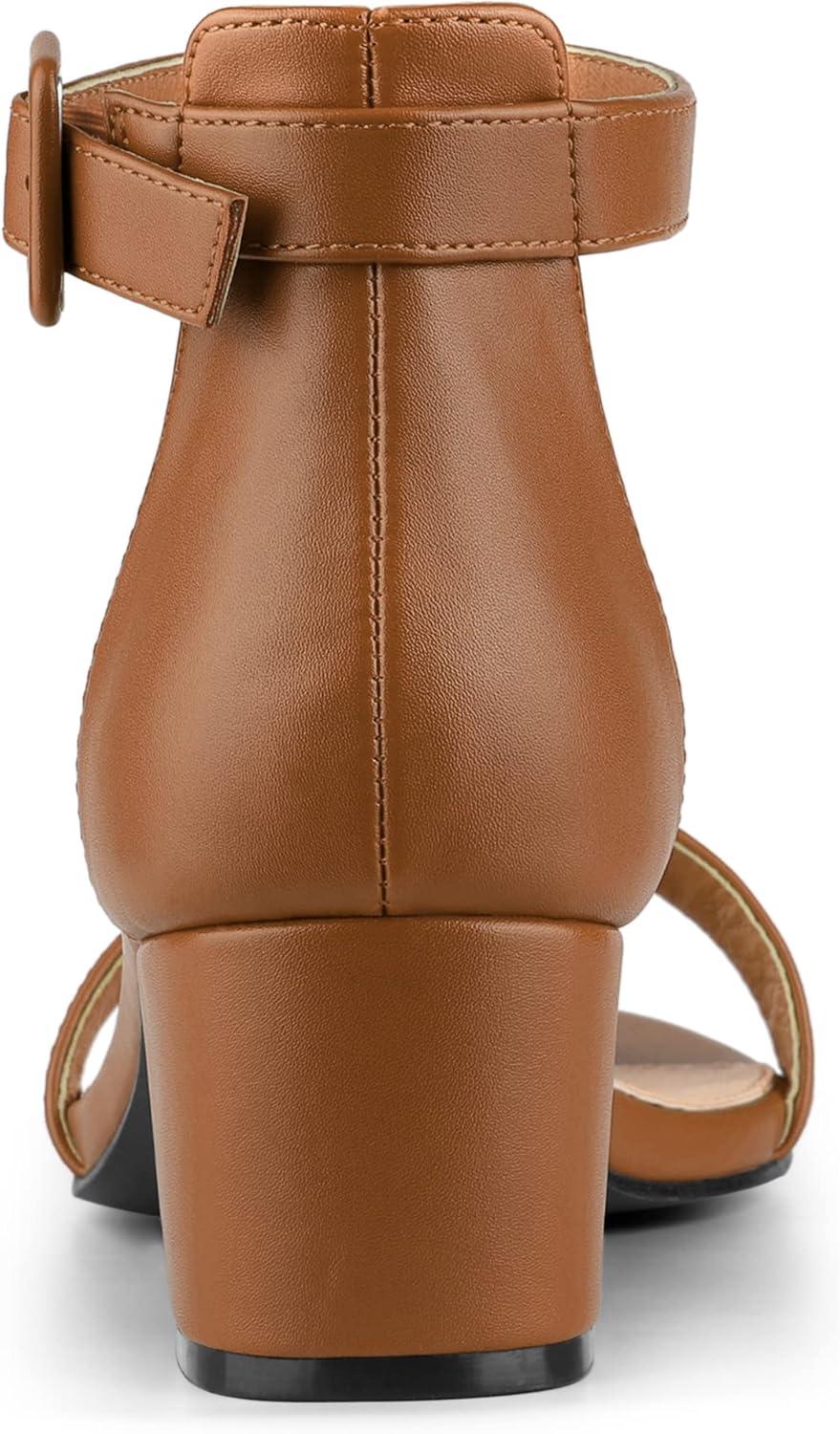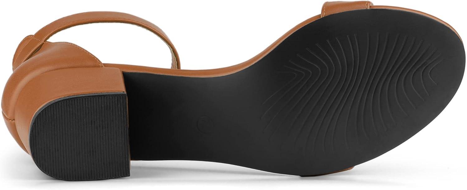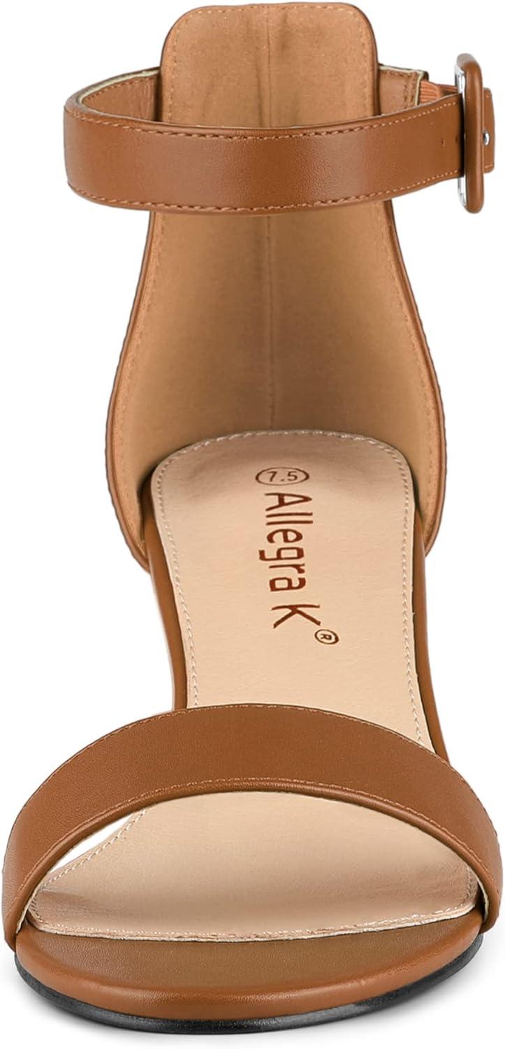Allegra K Women’s Block Low Heels Ankle Strap Sandals(Brown)