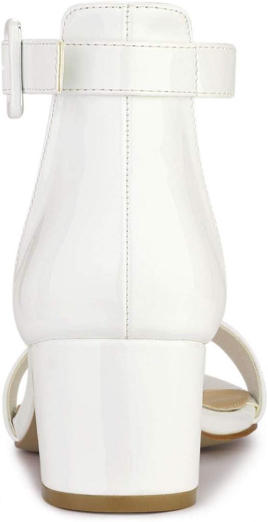 Allegra K Women’s Block Low Heels Ankle Strap Sandals(White)