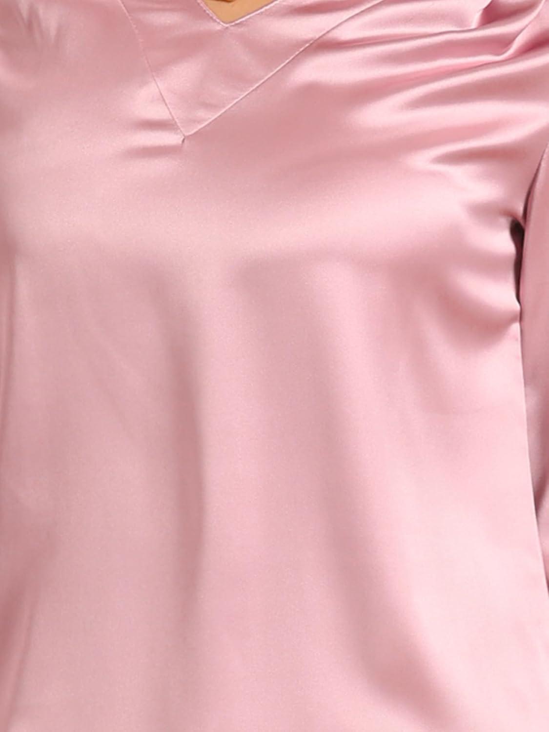Allegra K Women’s Blouse Fall 2025 Dressy Casual Office 3/4 Sleeve V Neck Satin Shirt(Pink)