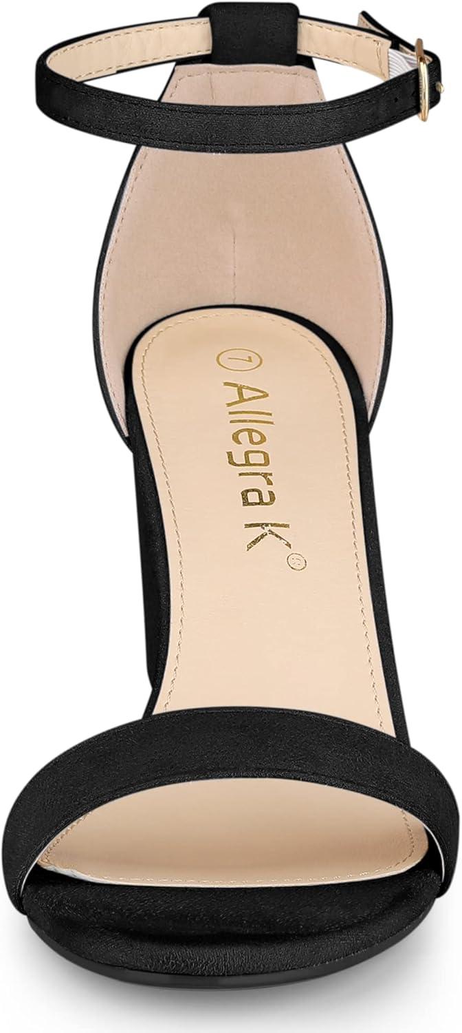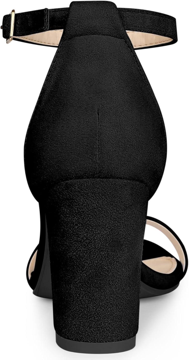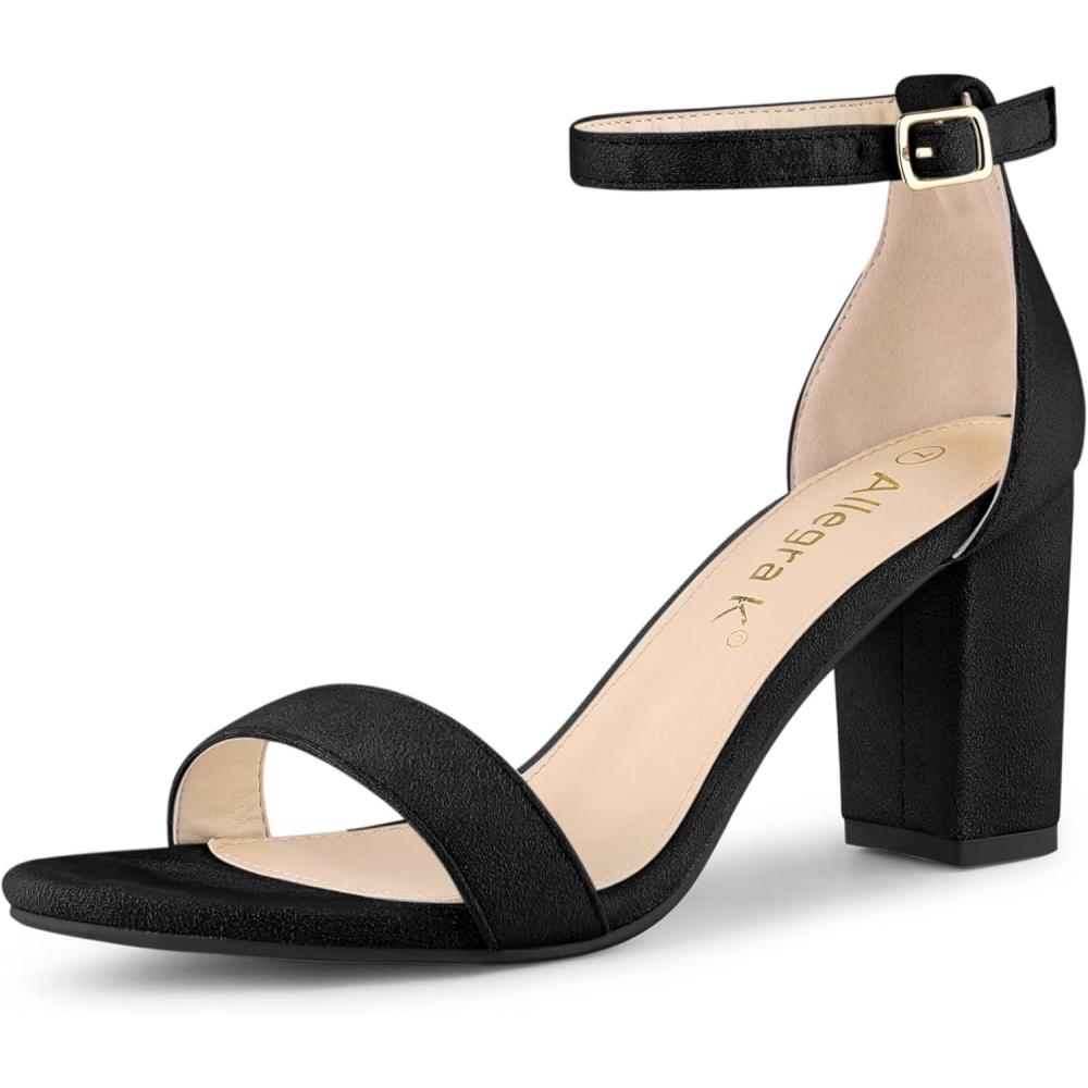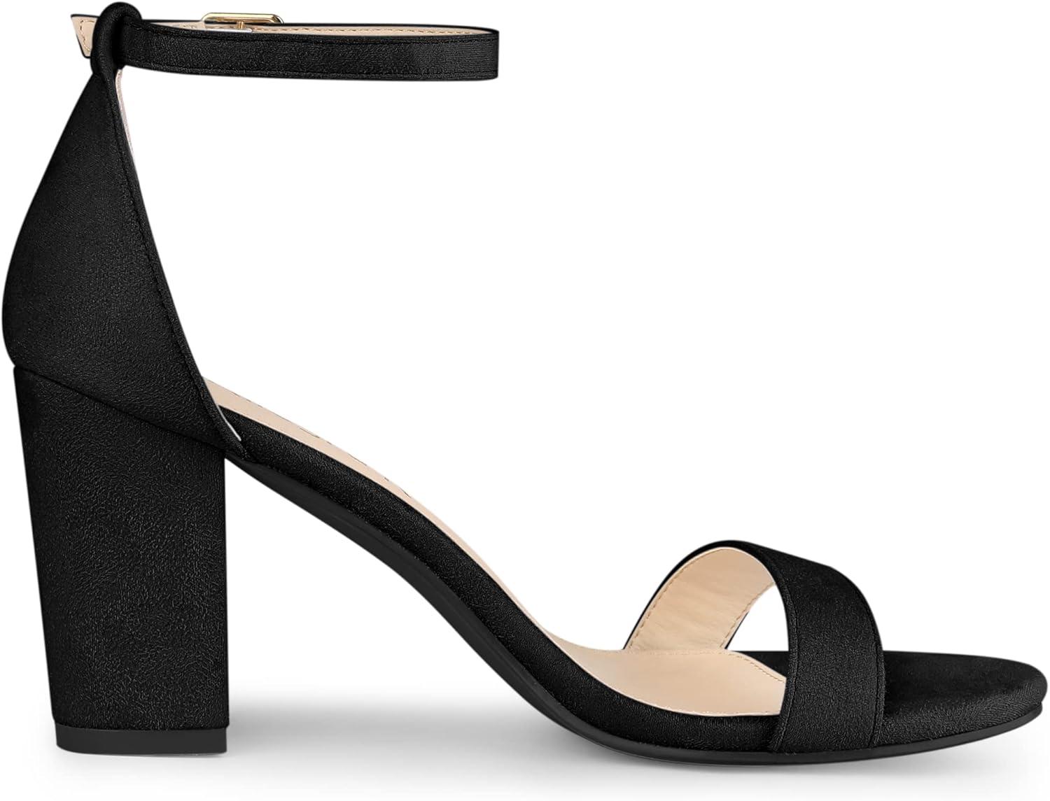 Allegra K Women’s Buckle Ankle Strap High Chunky Heels Sandals(Black)