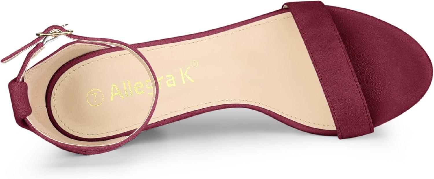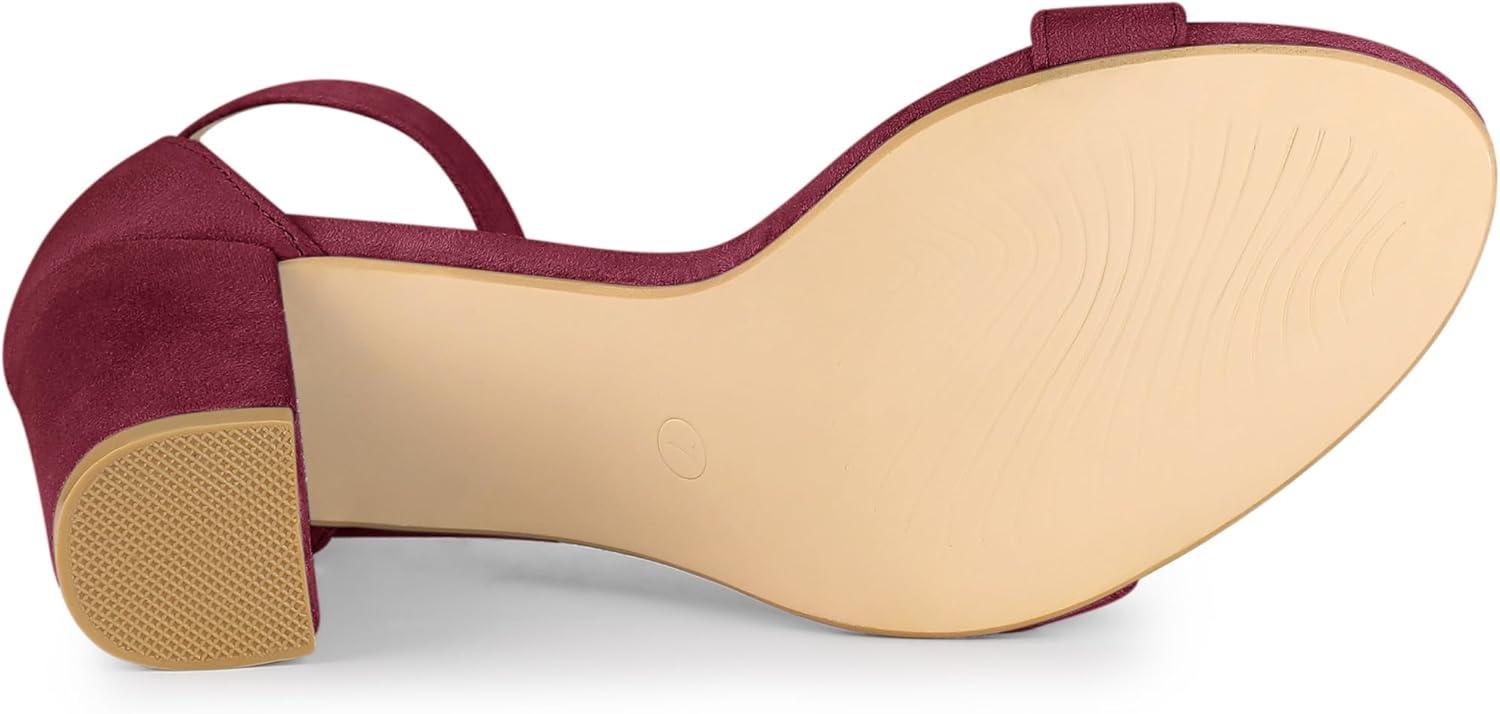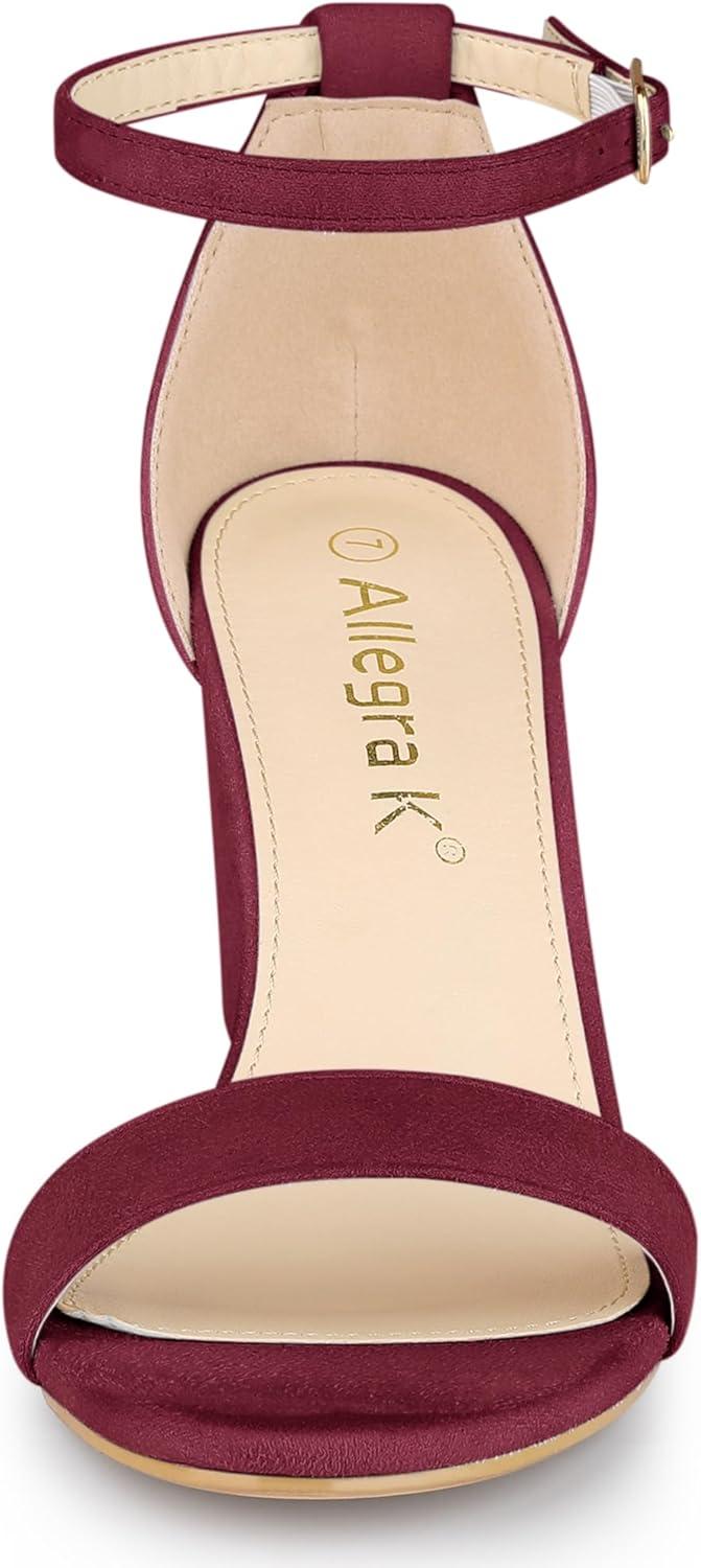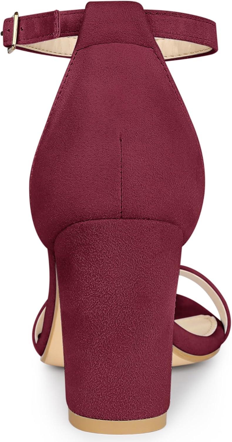 Allegra K Women’s Buckle Ankle Strap High Chunky Heels Sandals(Burgundy)