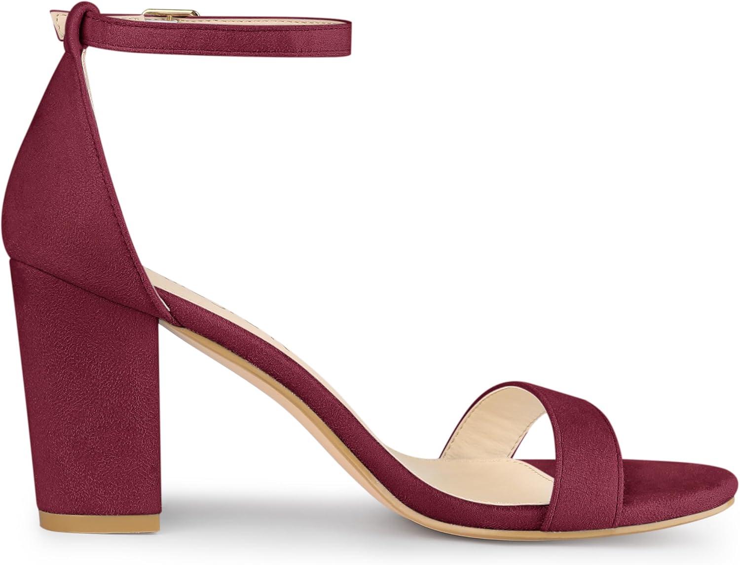 Allegra K Women's Buckle Ankle Strap High Chunky Heels Sandals(Burgundy)