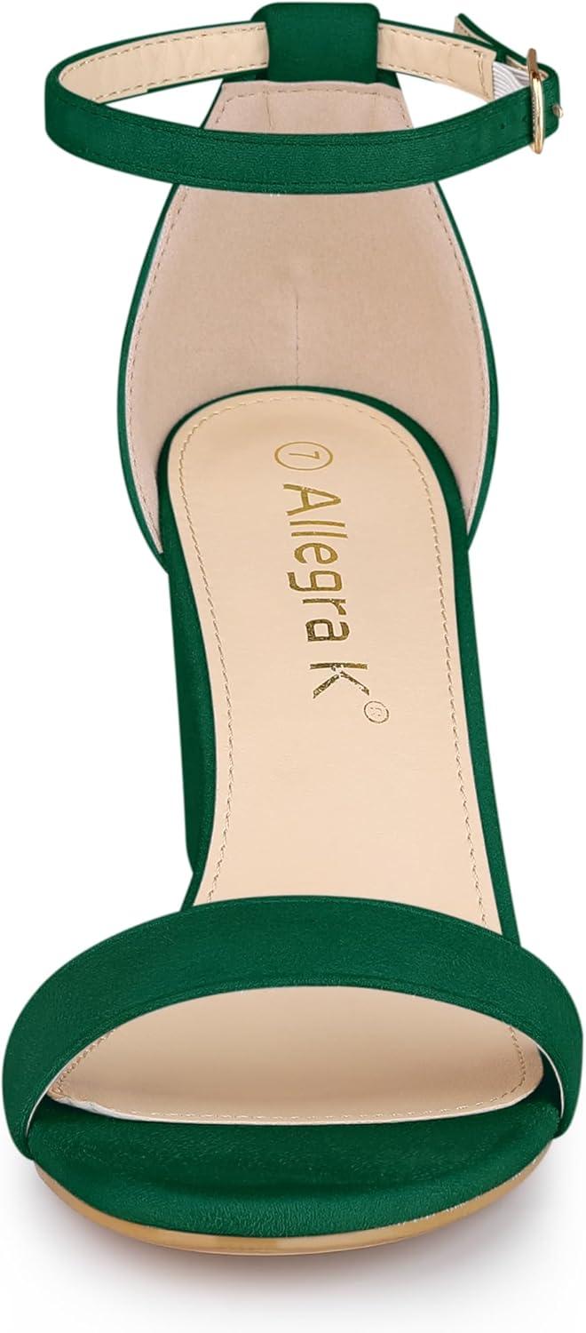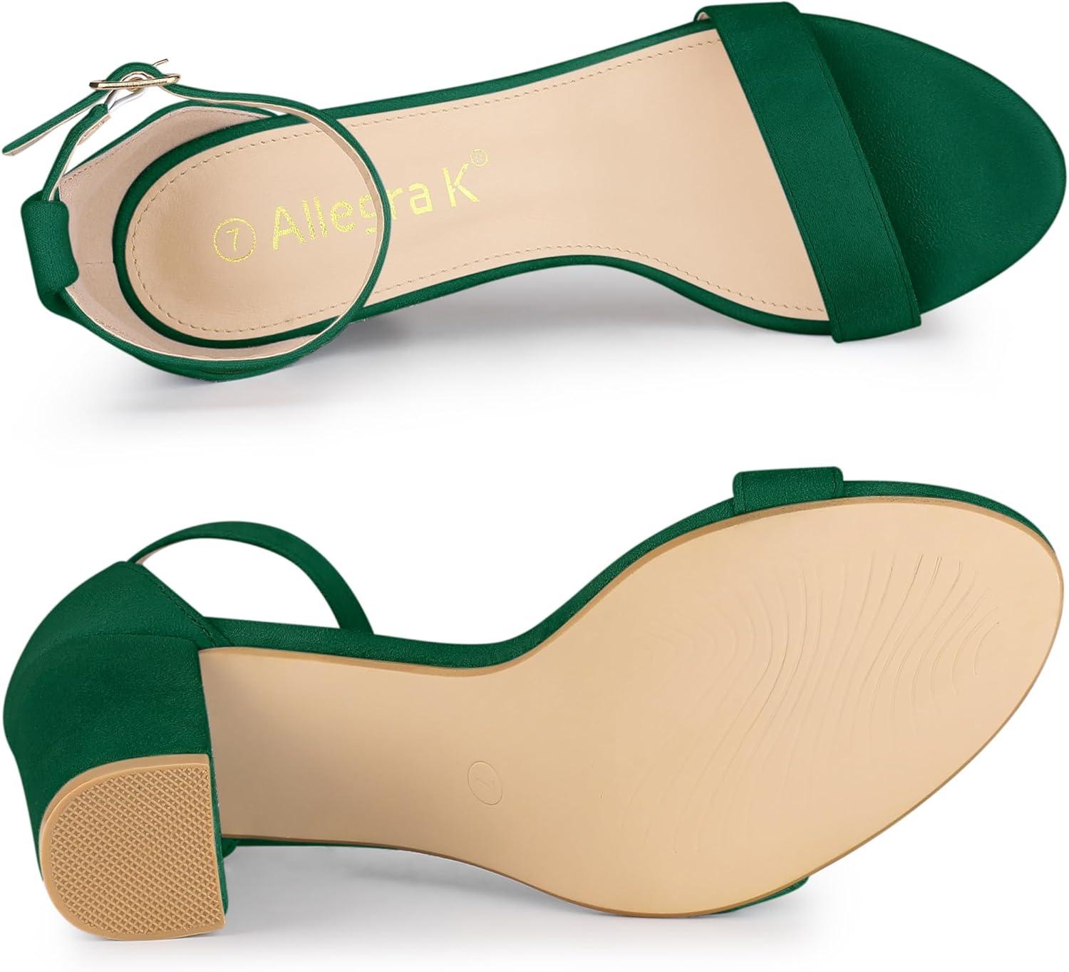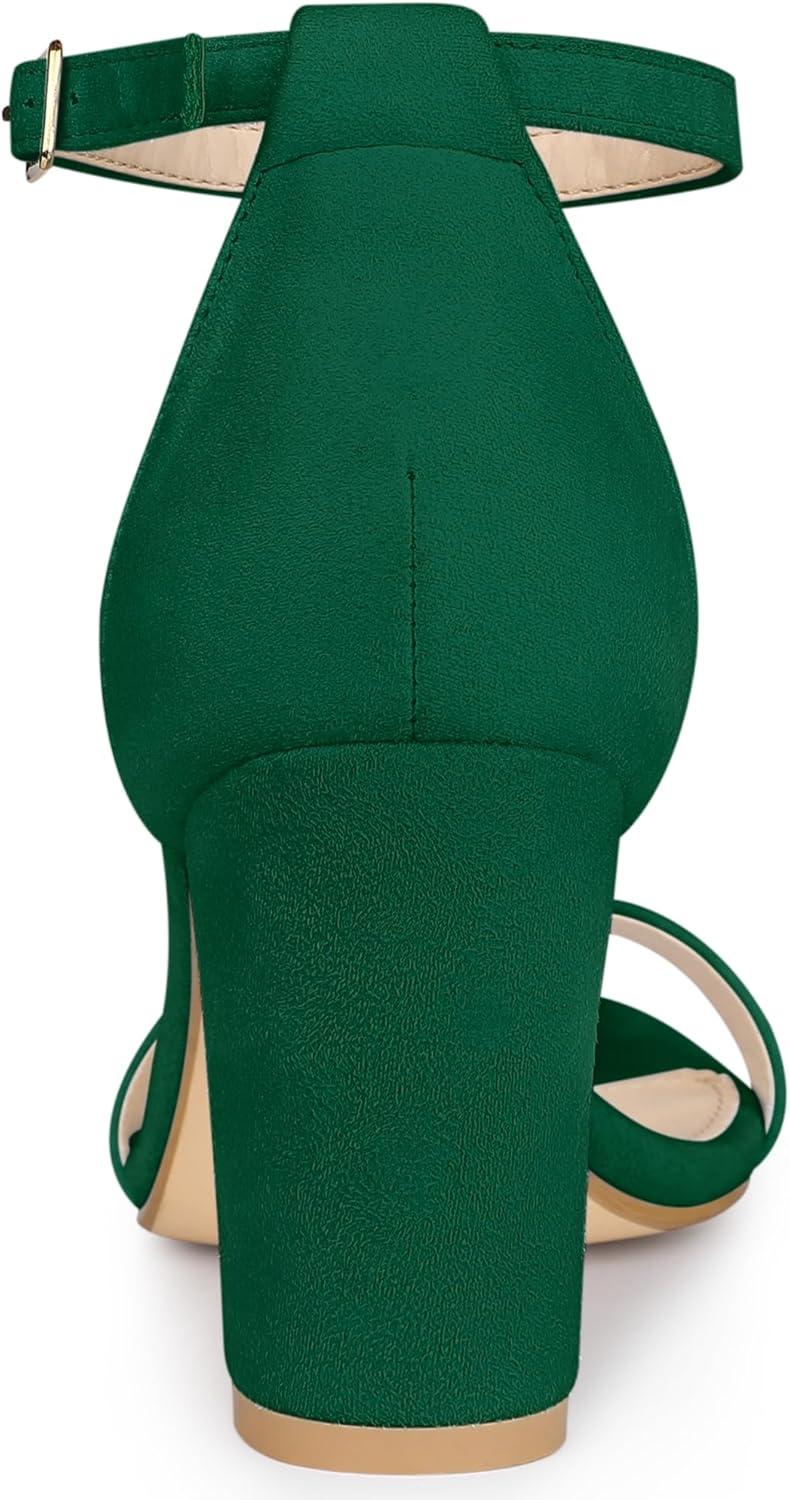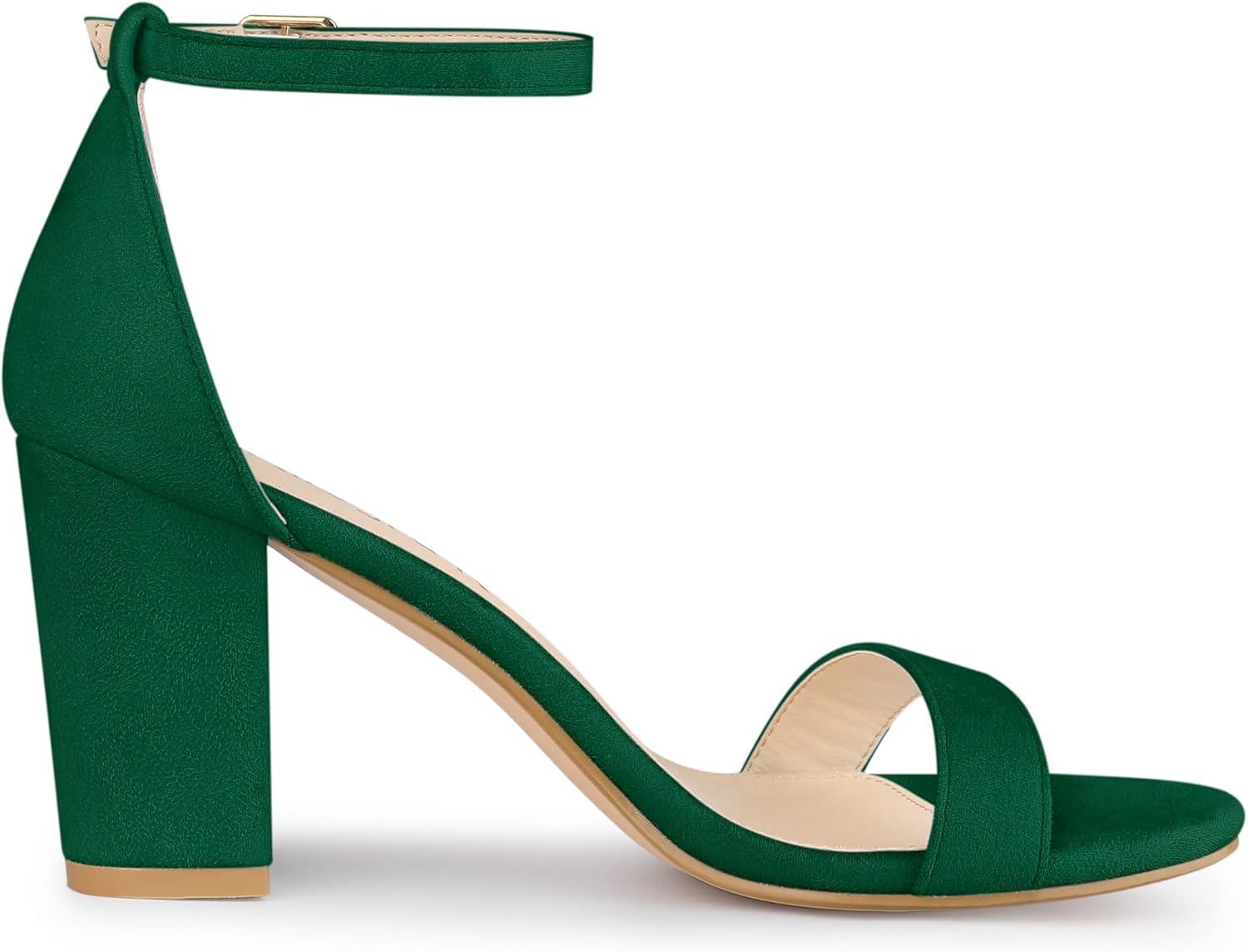 Allegra K Women’s Buckle Ankle Strap High Chunky Heels Sandals(Green)