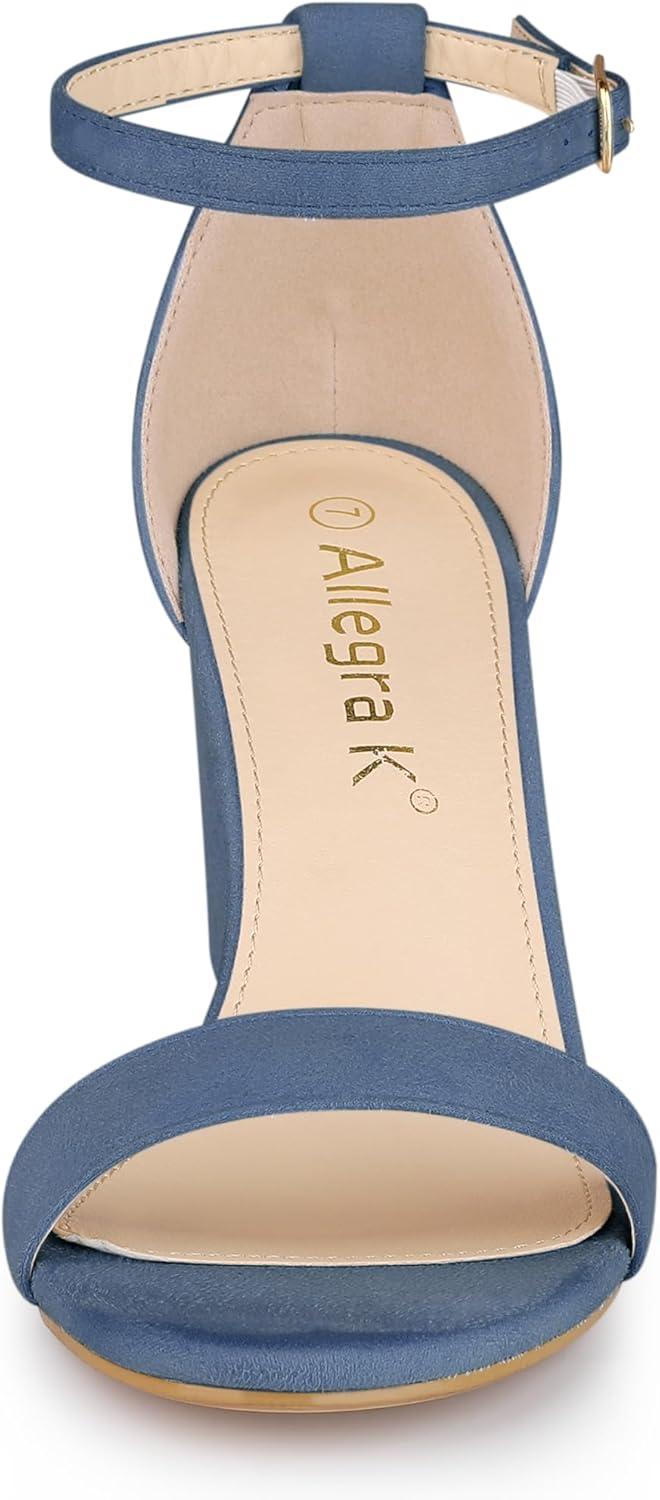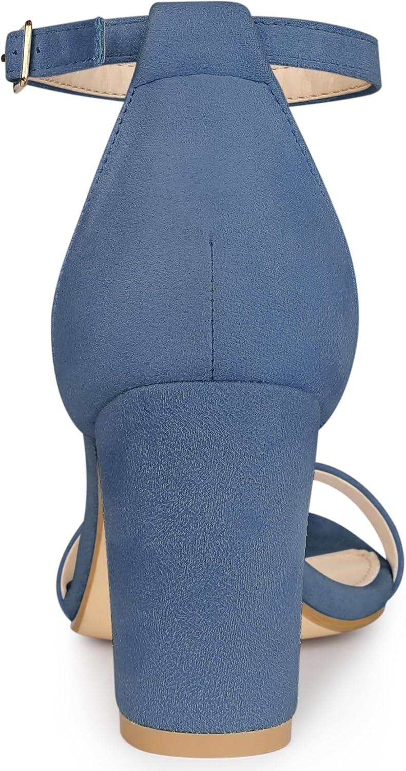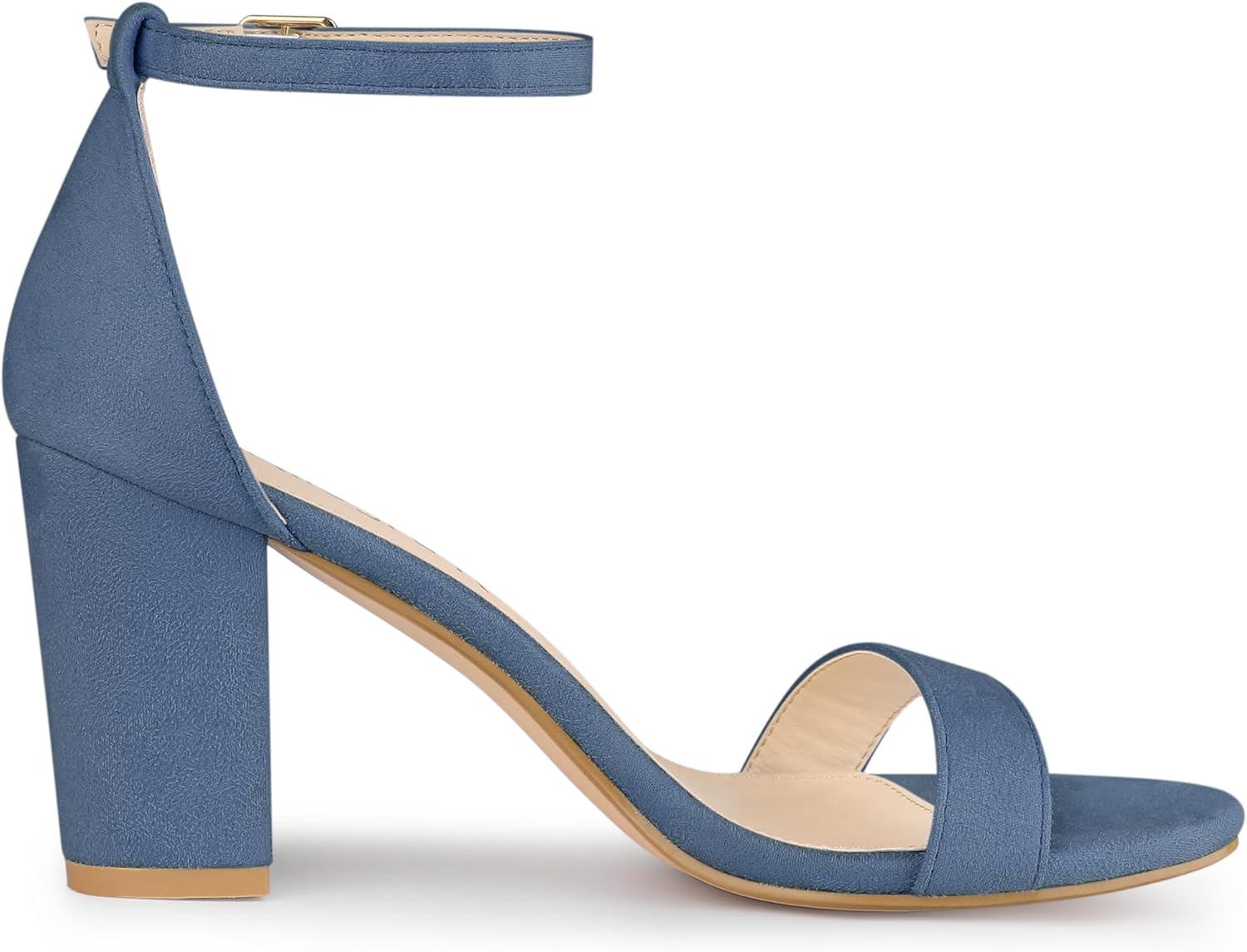Allegra K Women’s Buckle Ankle Strap High Chunky Heels Sandals(Haze Blue)