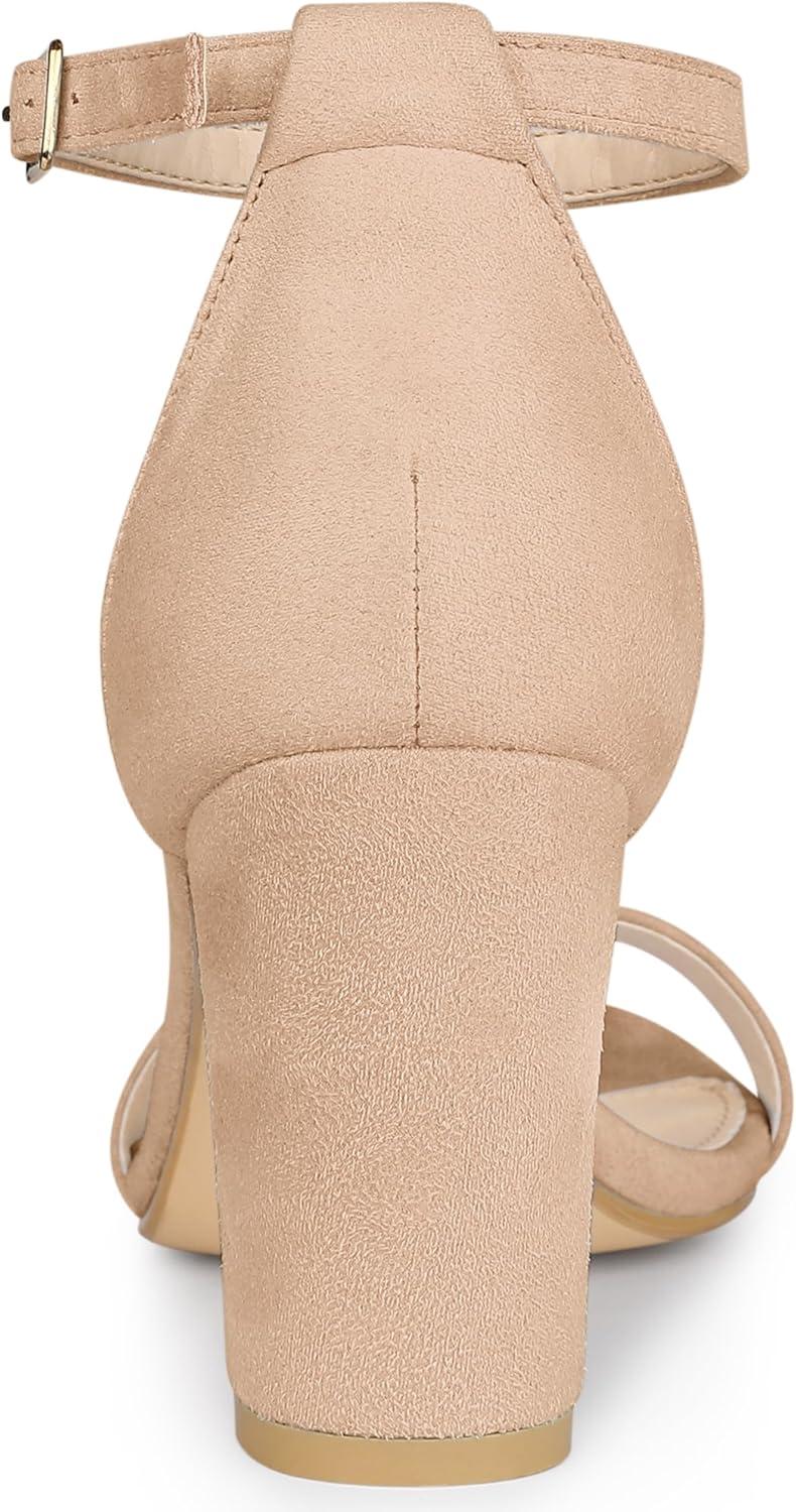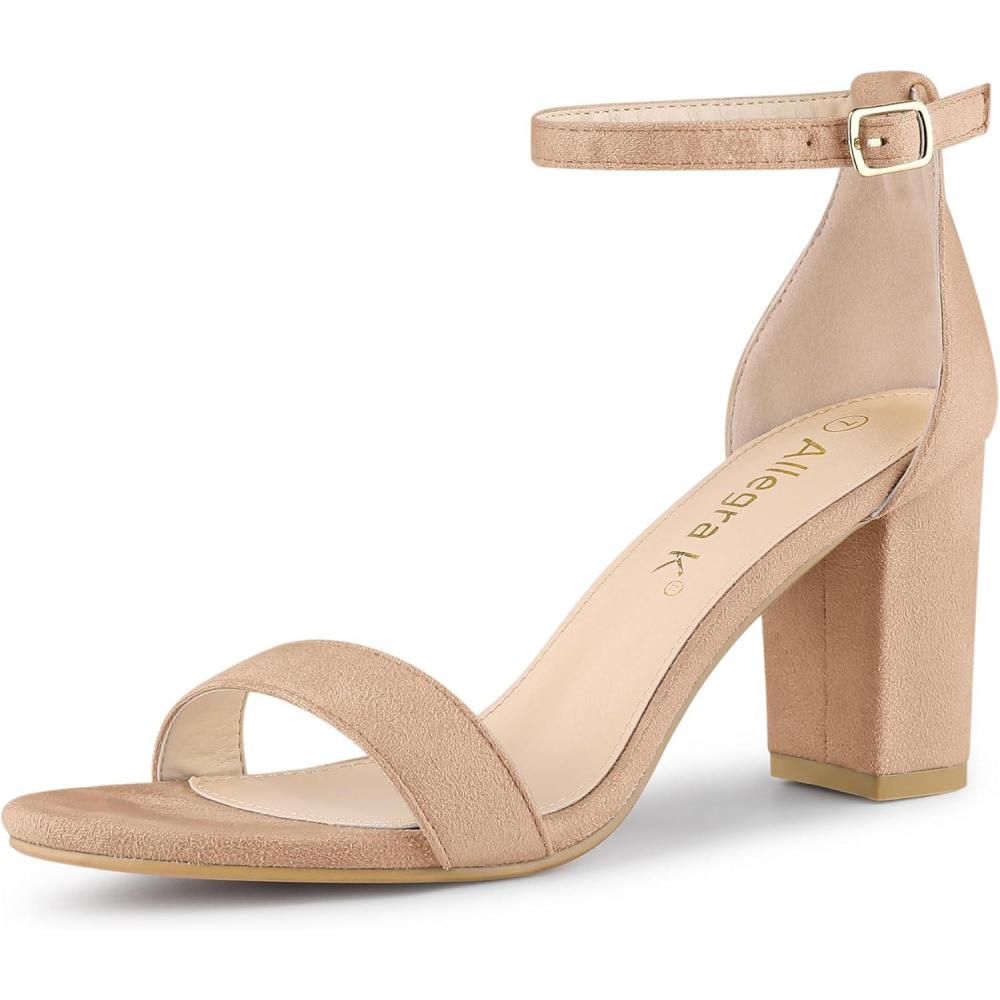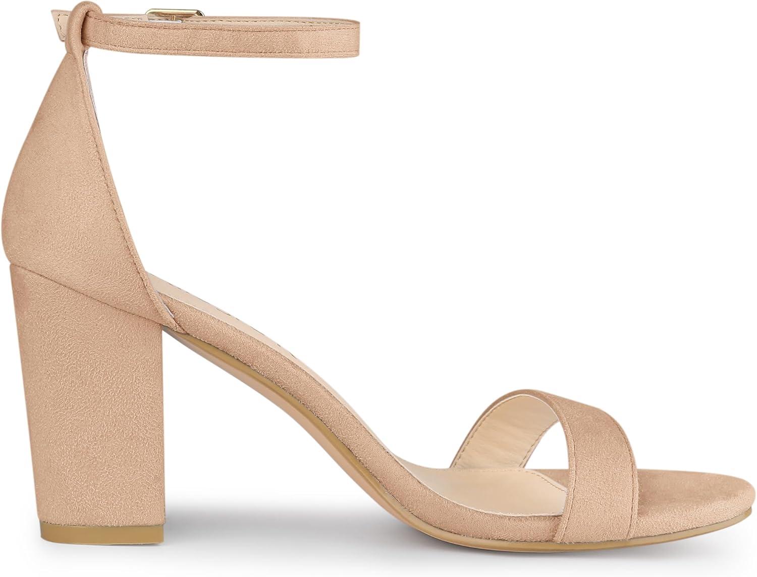Allegra K Women’s Buckle Ankle Strap High Chunky Heels Sandals(Nude)