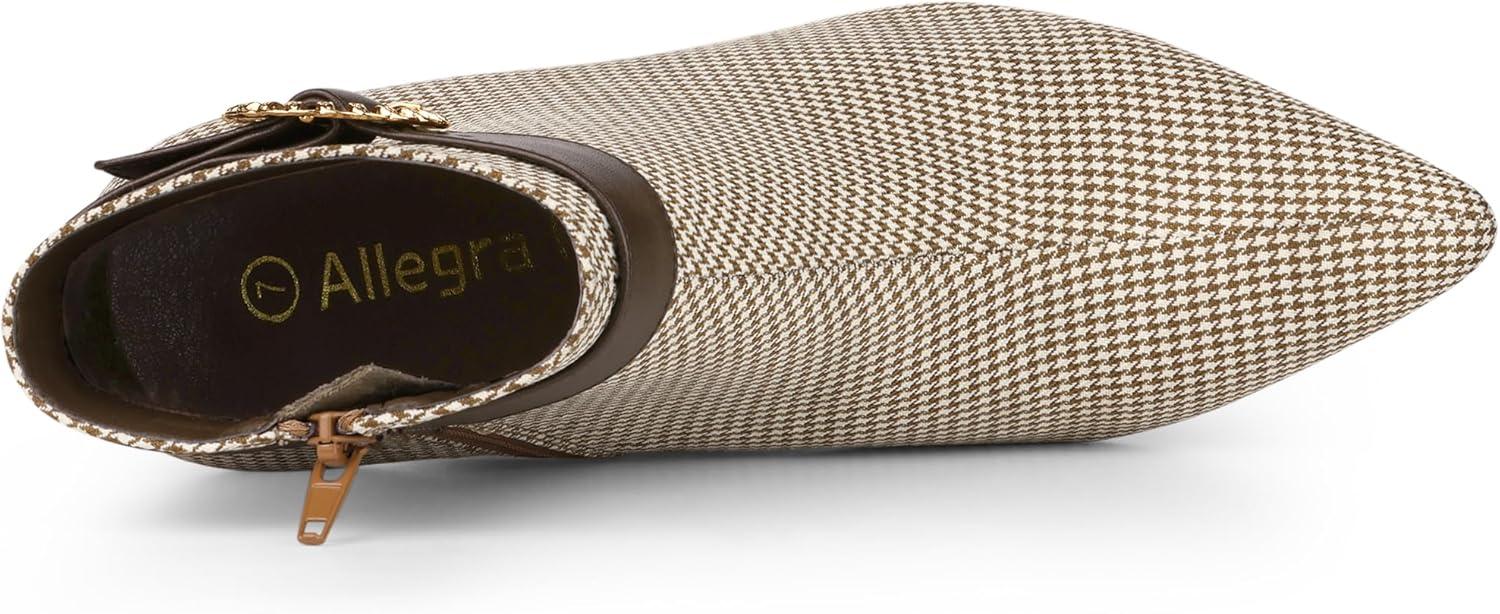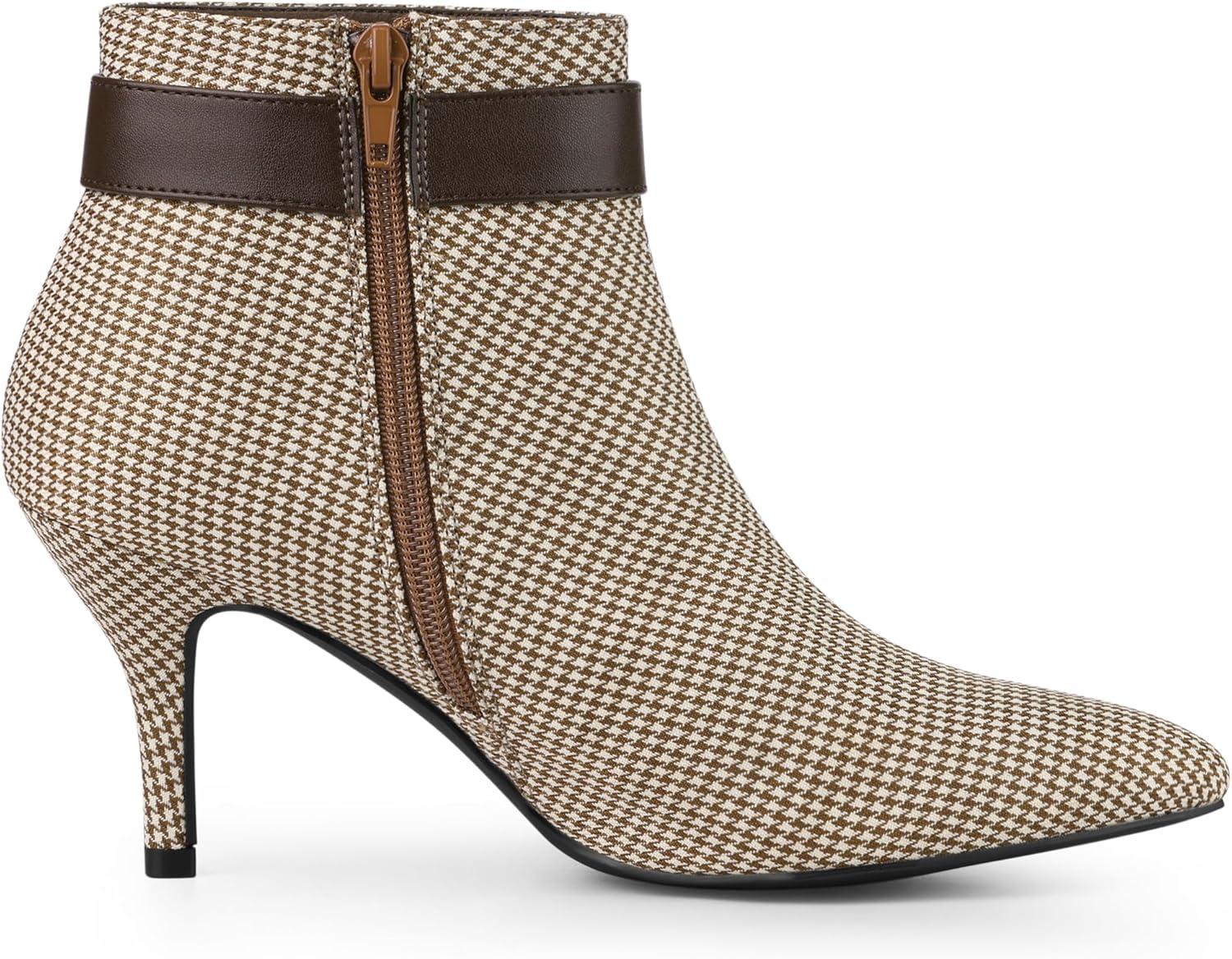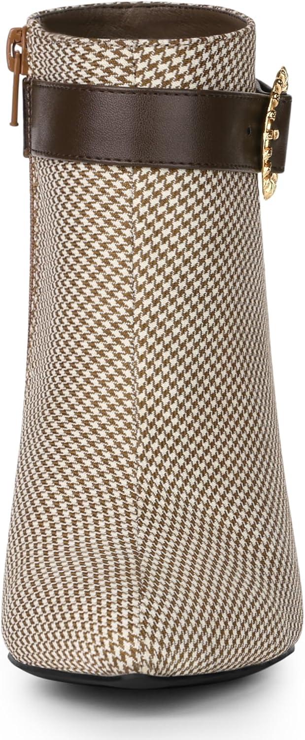 Allegra K Women’s Buckle Plaid Stiletto Heels Houndstooth Ankle Boots(Khaki)