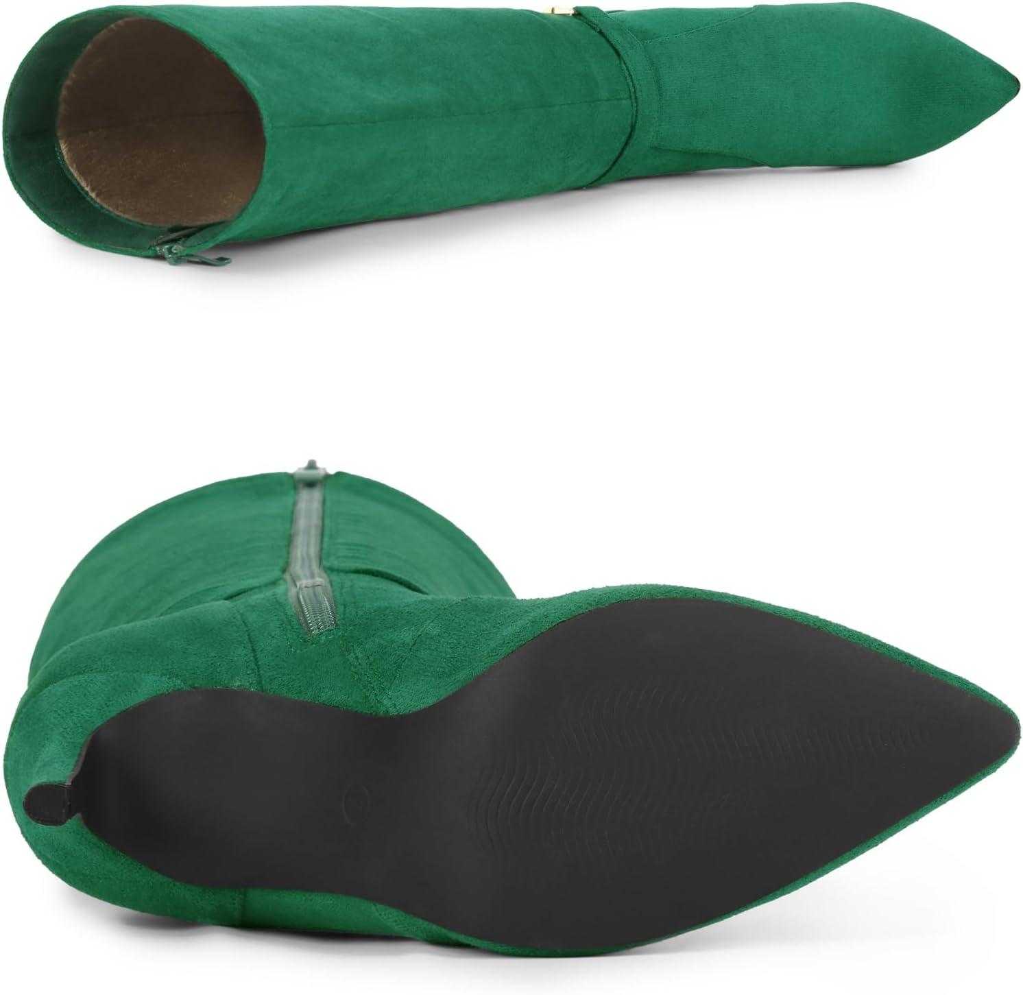 Allegra K Women's Buckle Pointed Toe Stiletto Heel Knee High Boots(Emerald Green)