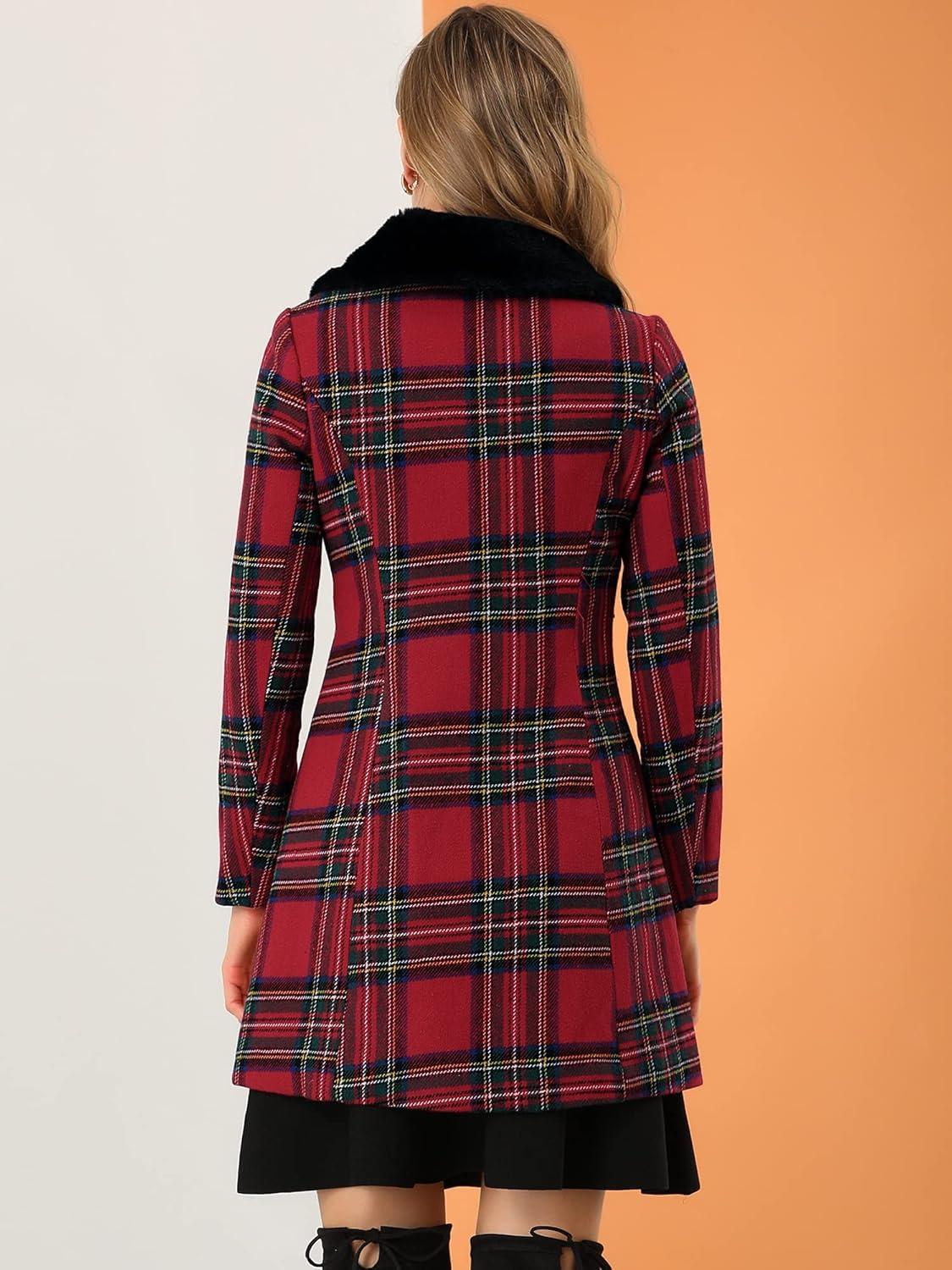 Allegra K Women's Buffalo Checks Shacket Button Down Peter Pan Collar Long Winter Plaid Coat(Red)