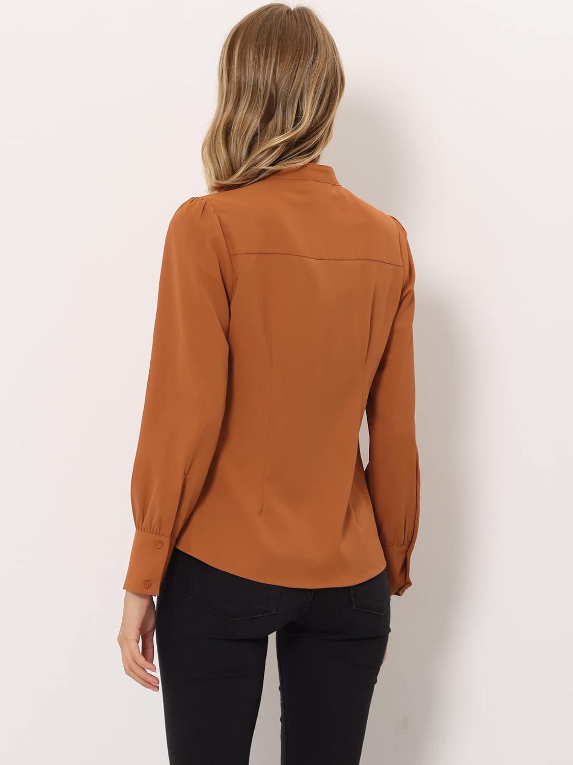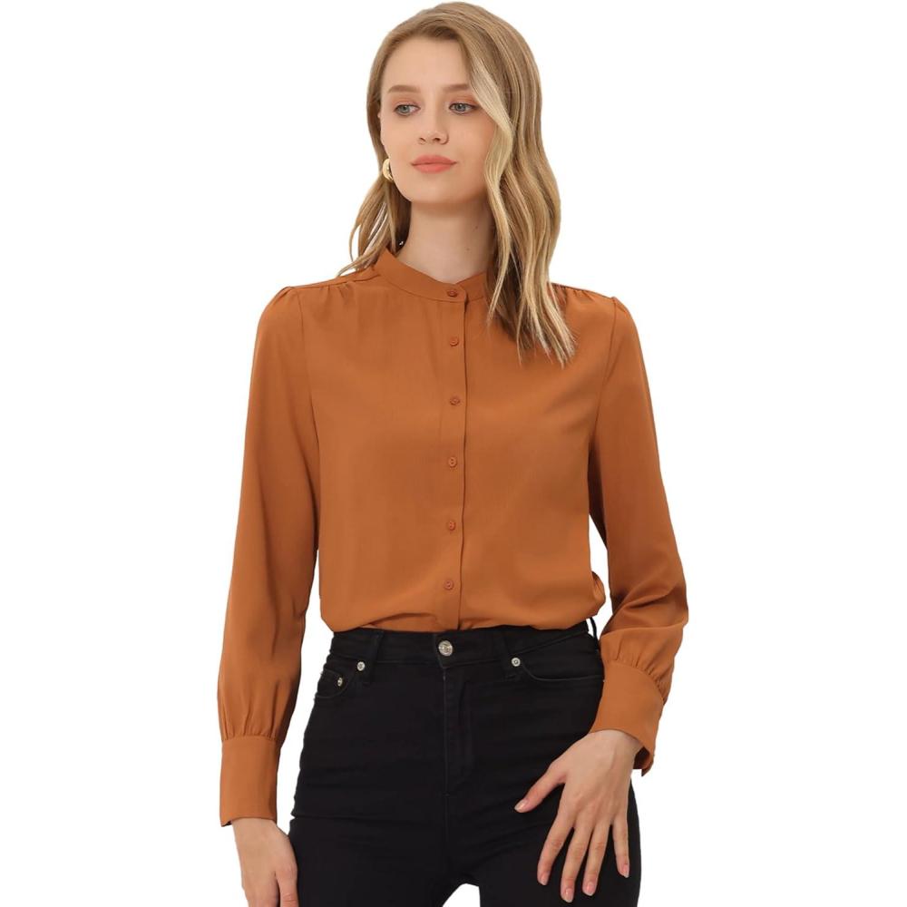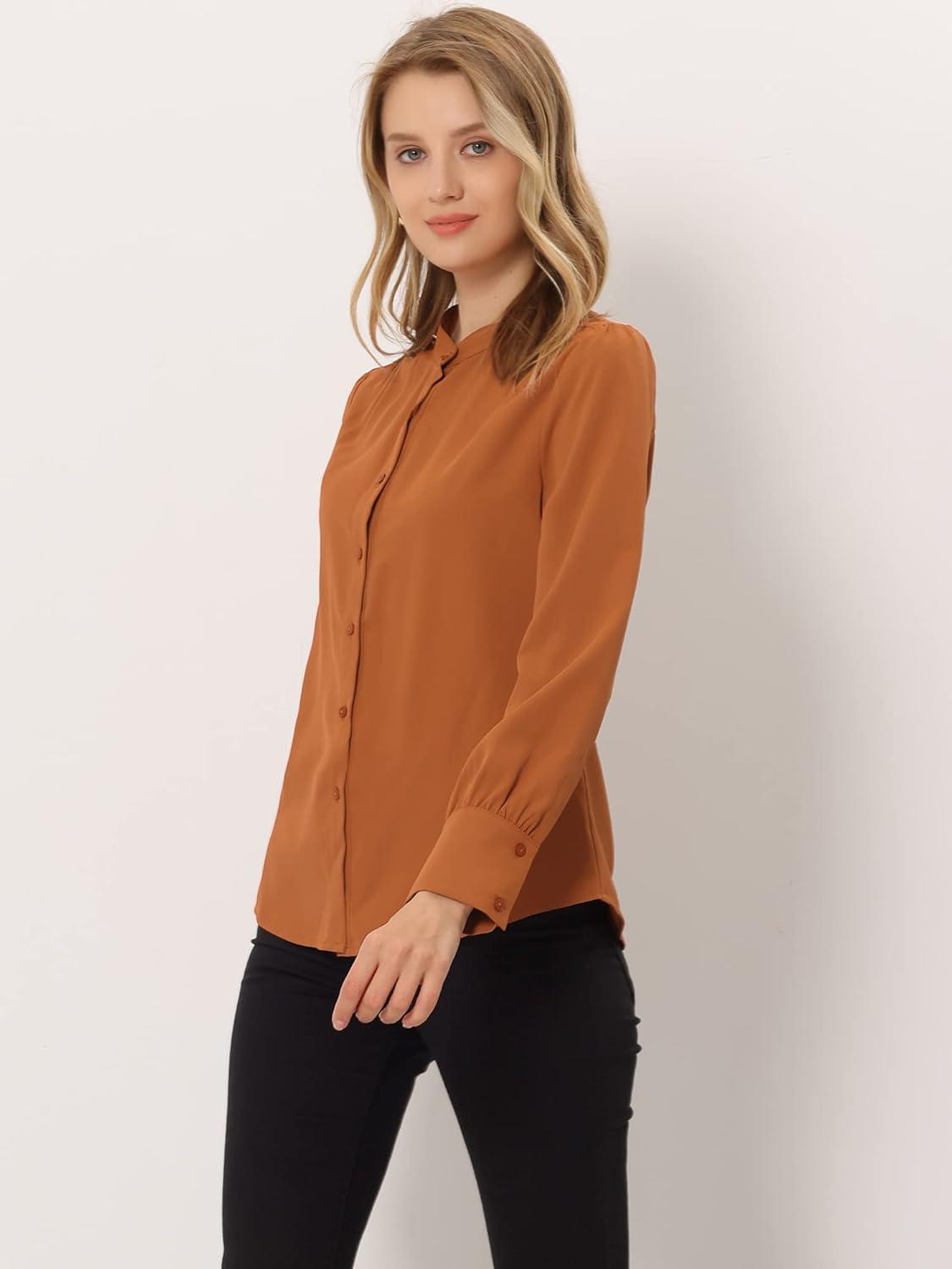 Allegra K Women’s Button Down Office Top Long Sleeve Formal Mandarin Collar Shirt(Orange)