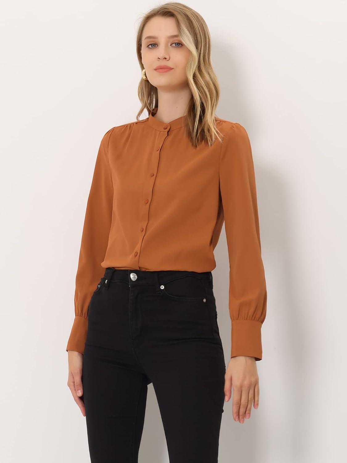 imageAllegra K Womens Button Down Office Top Long Sleeve Formal Mandarin Collar ShirtOrange