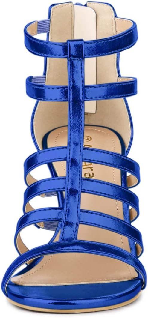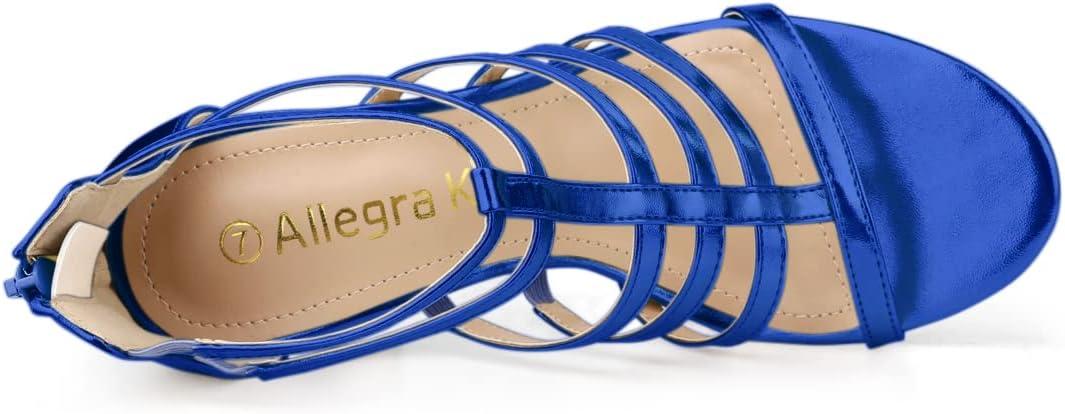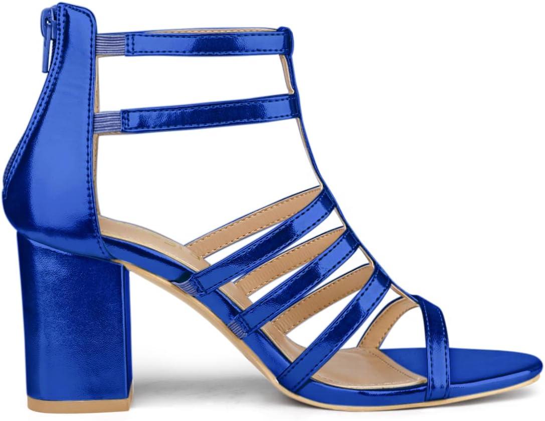 Allegra K Women’s Cage Strappy Gladiators Chunky Heels Sandals(Deep Blue)