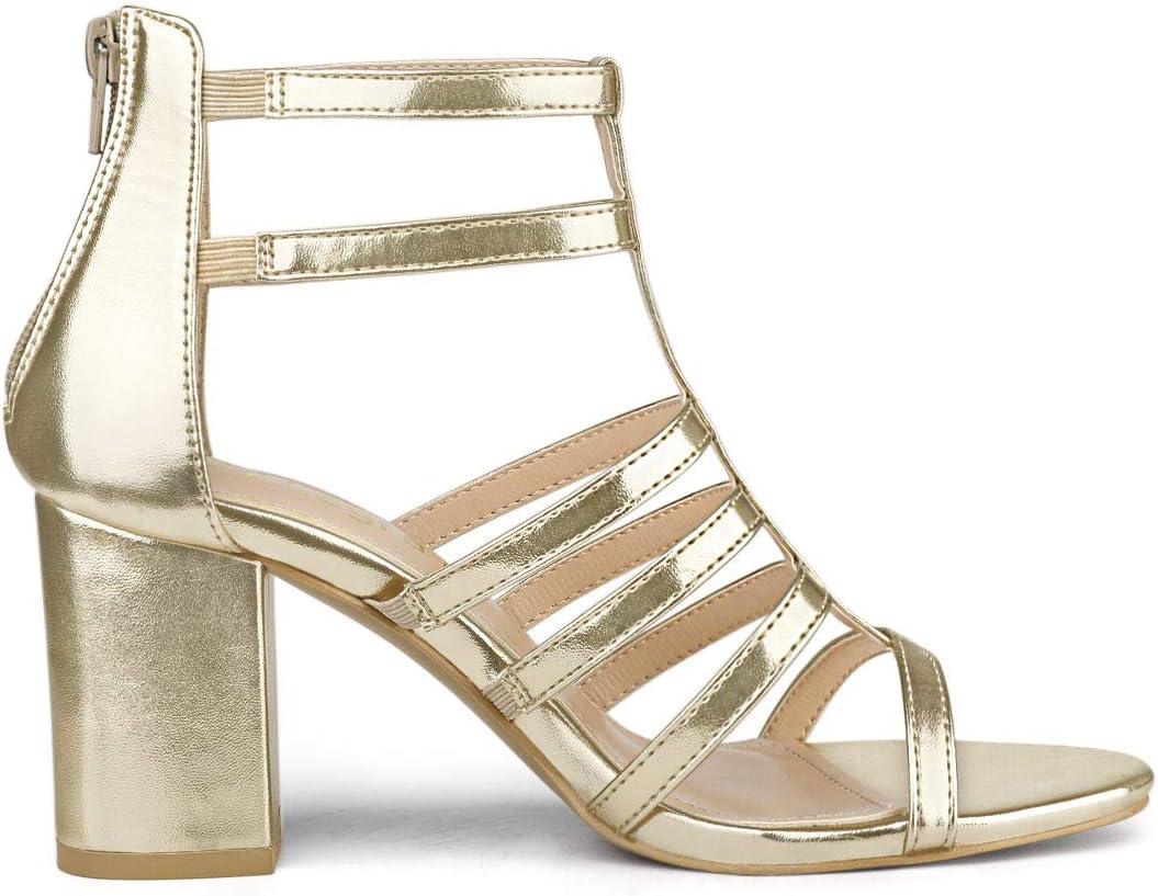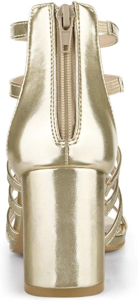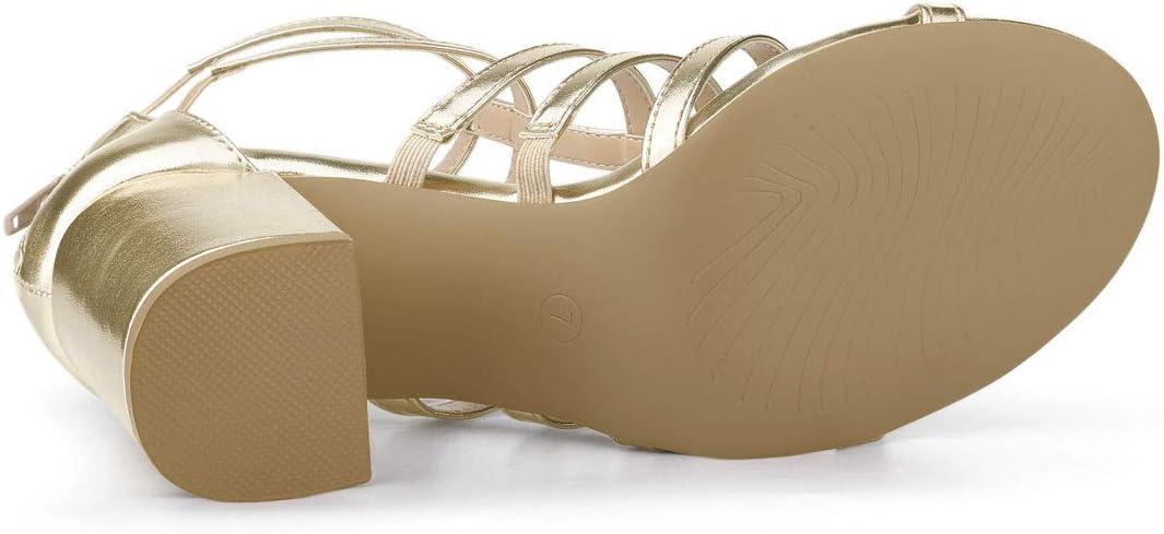 Allegra K Women’s Cage Strappy Gladiators Chunky Heels Sandals(Gold)