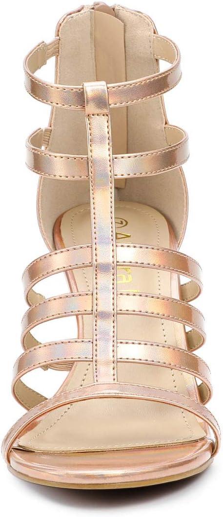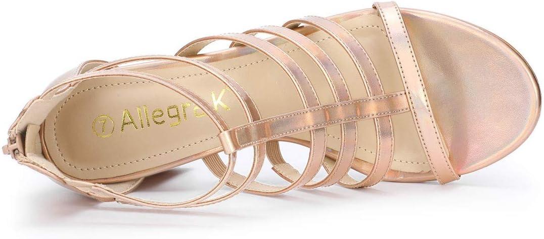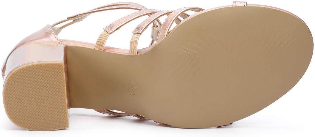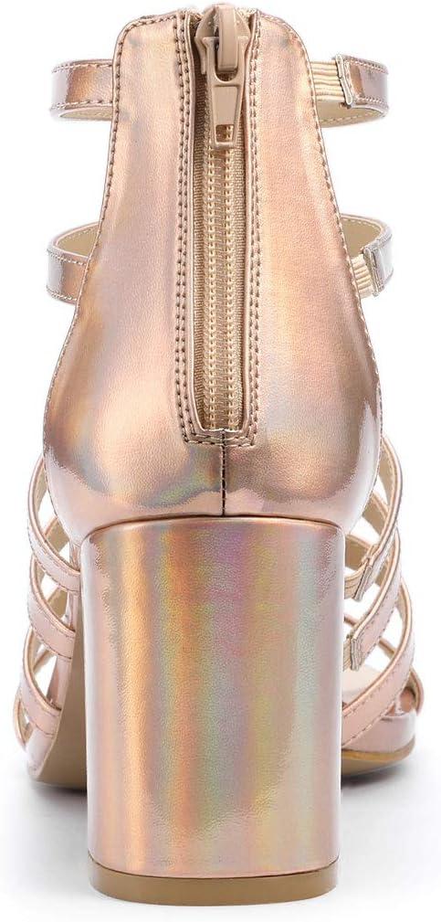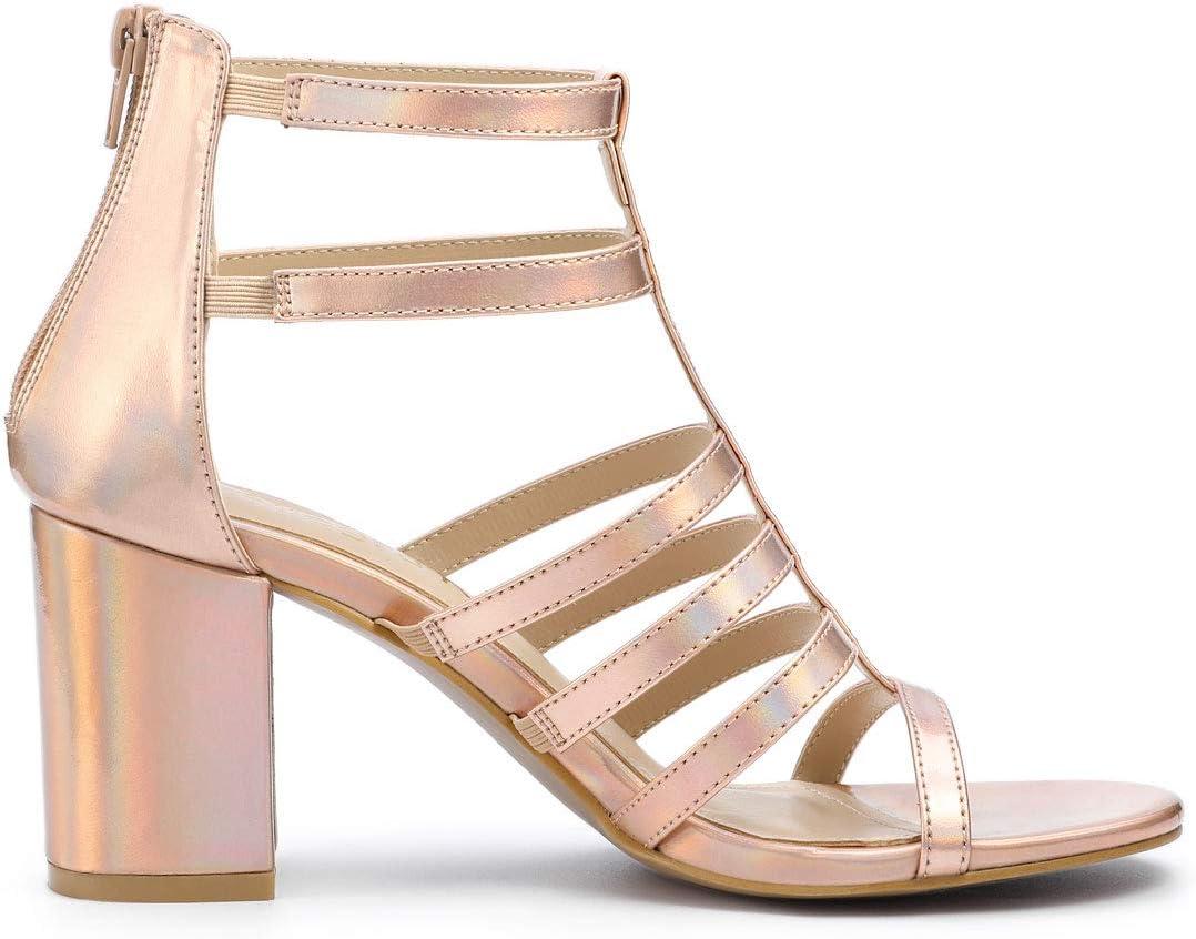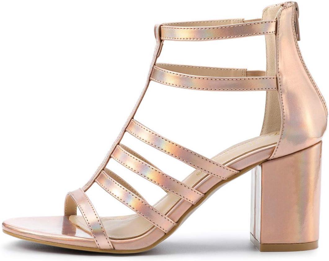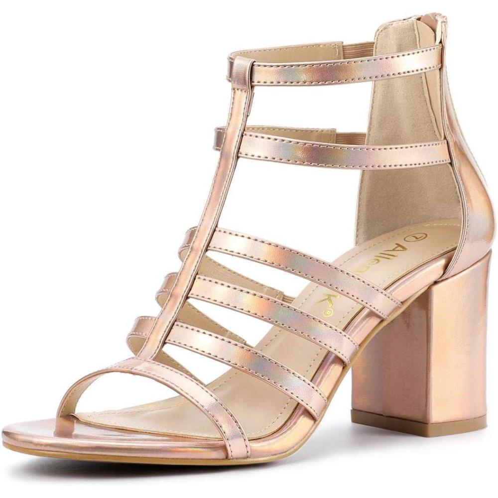 Allegra K Women’s Cage Strappy Gladiators Chunky Heels Sandals(Gradient Rose Gold)