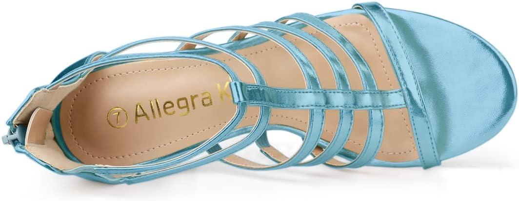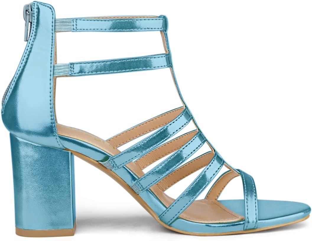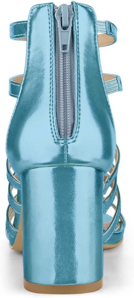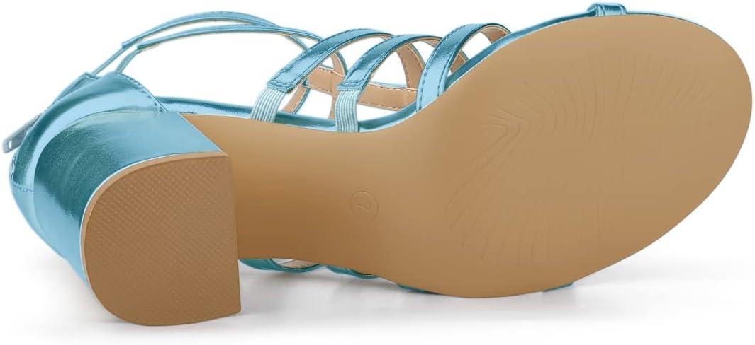 Allegra K Women’s Cage Strappy Gladiators Chunky Heels Sandals(Lake Blue)