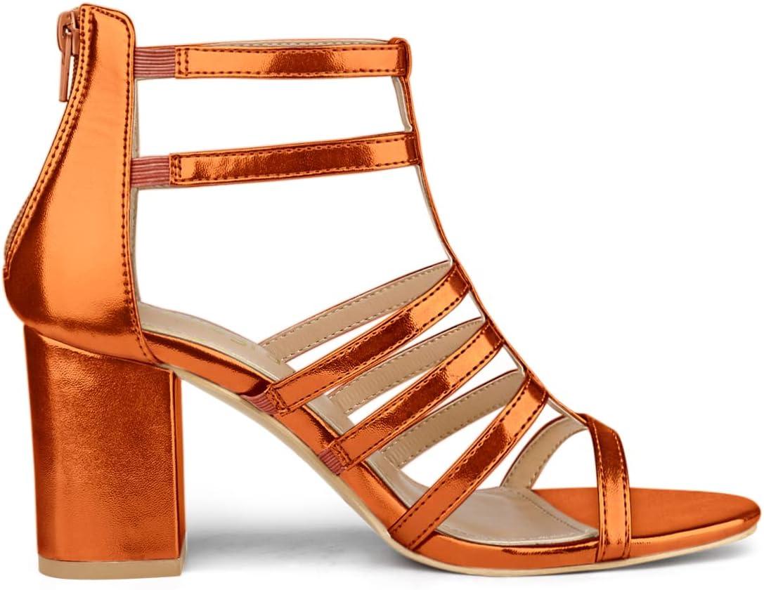 Allegra K Women’s Cage Strappy Gladiators Chunky Heels Sandals(Orange)