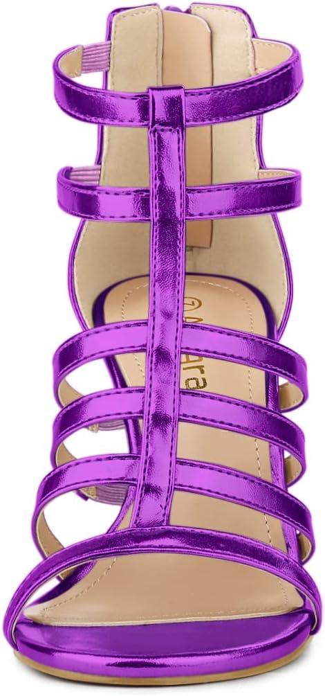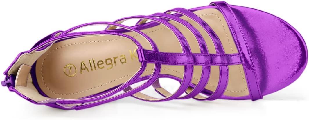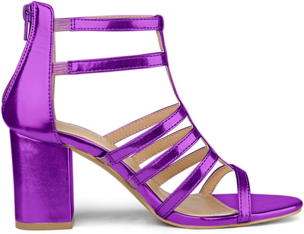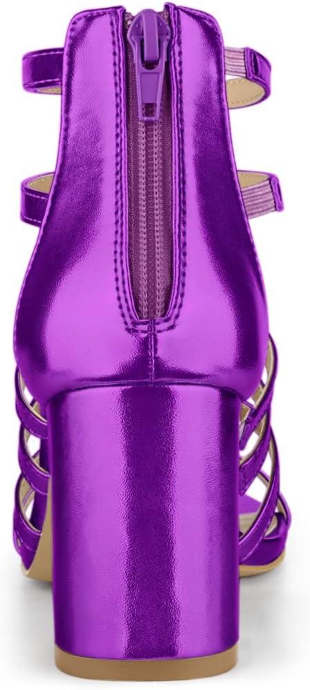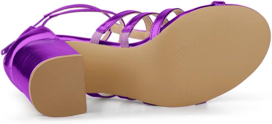Allegra K Women’s Cage Strappy Gladiators Chunky Heels Sandals(Purple)
