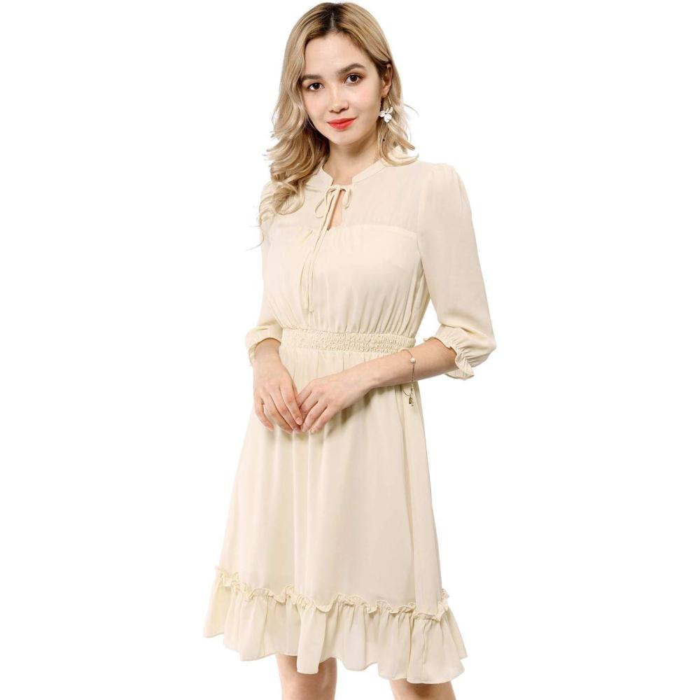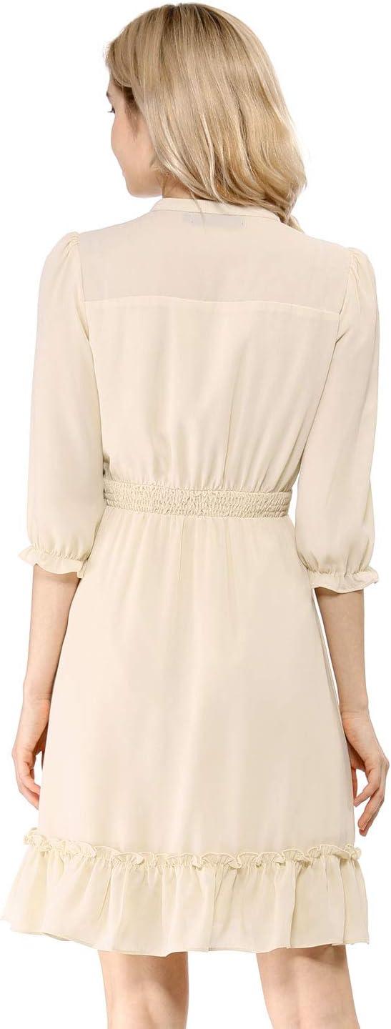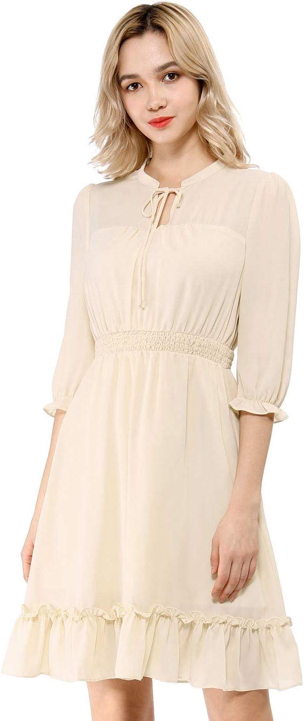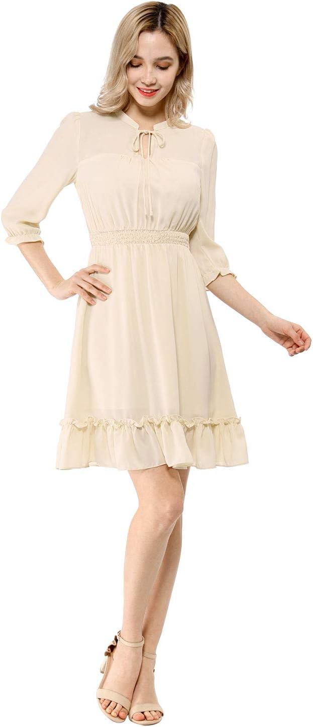 imageAllegra K Womens Casual Dresses 34 Sleeve Summer Boho Chiffon Wedding Guest DressBeige