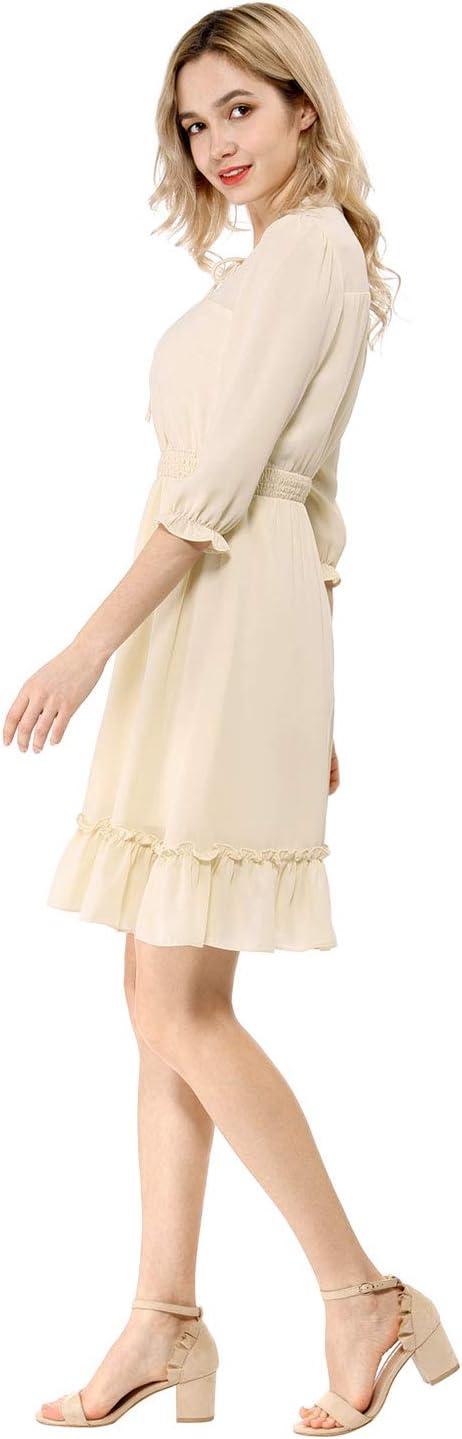 Allegra K Women’s Casual Dresses 3/4 Sleeve Summer Boho Chiffon Wedding Guest Dress(Beige)