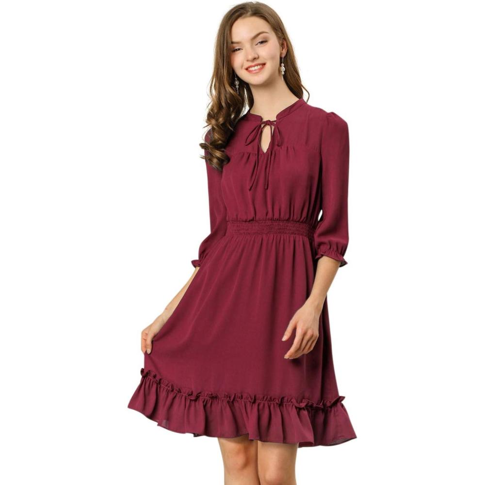 imageAllegra K Womens Casual Dresses 34 Sleeve Summer Boho Chiffon Wedding Guest DressBurgundy