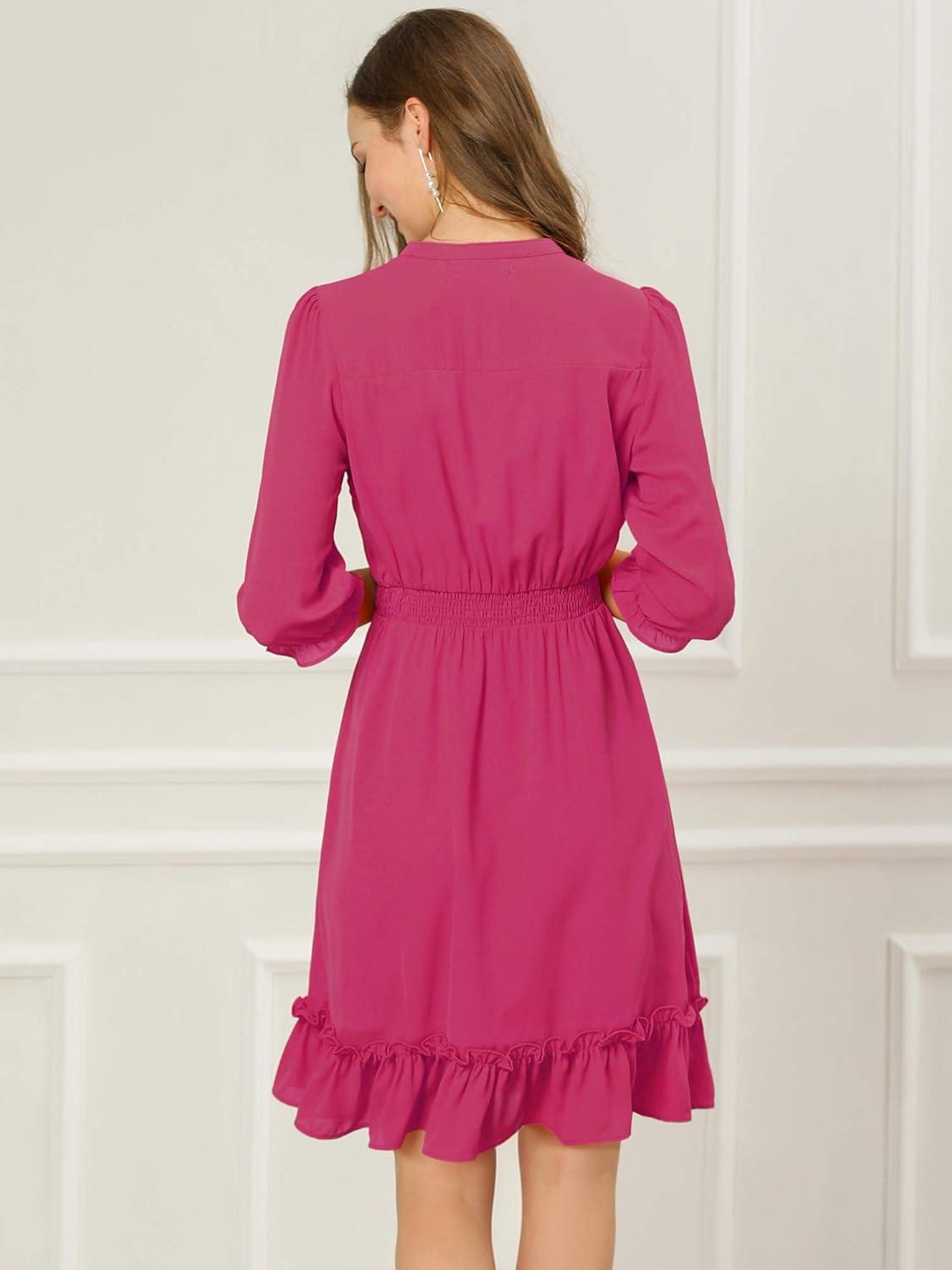 Allegra K Women's Casual Dresses 3/4 Sleeve Summer Boho Chiffon Wedding Guest Dress(Fushcia)