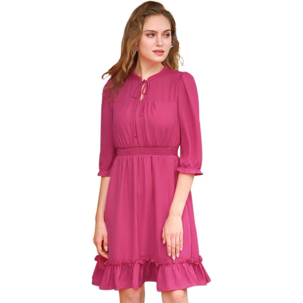 imageAllegra K Womens Casual Dresses 34 Sleeve Summer Boho Chiffon Wedding Guest DressFushcia
