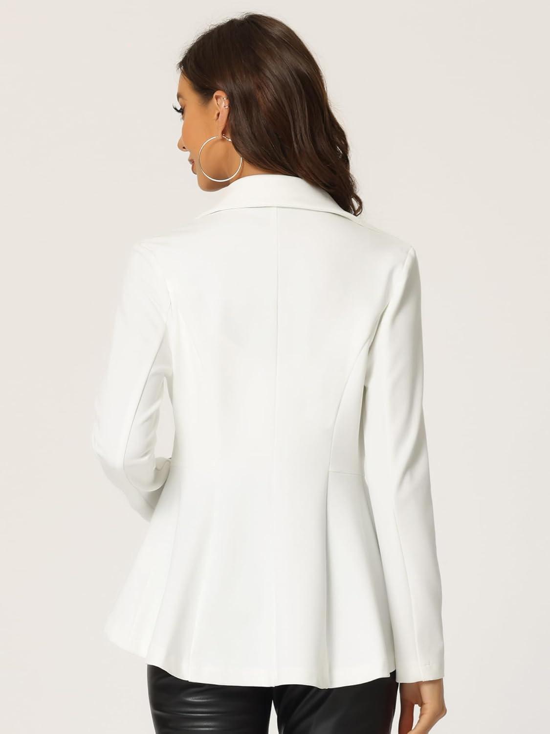 Allegra K Women's Casual Jacket Steampunk High Low Hem Open Front Long Sleeves Work Peplum Blazer(White)