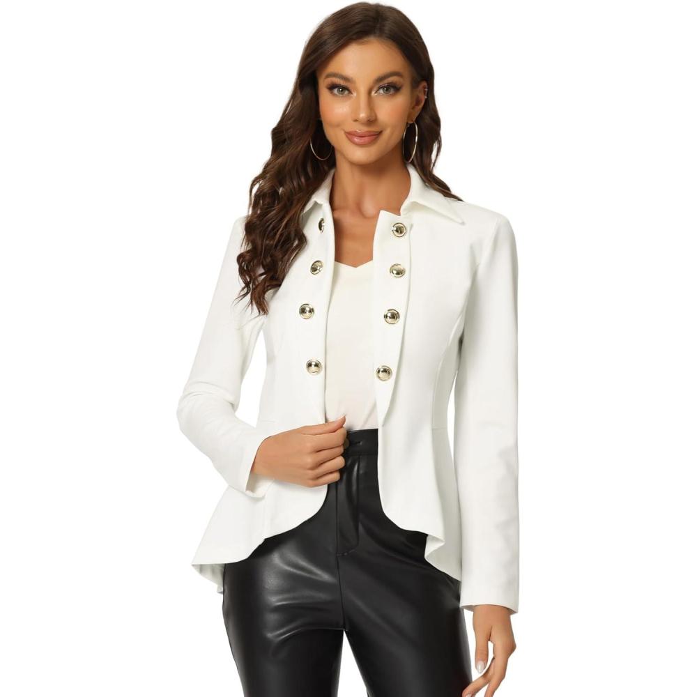 Allegra K Women’s Casual Jacket Steampunk High Low Hem Open Front Long Sleeves Work Peplum Blazer(White)