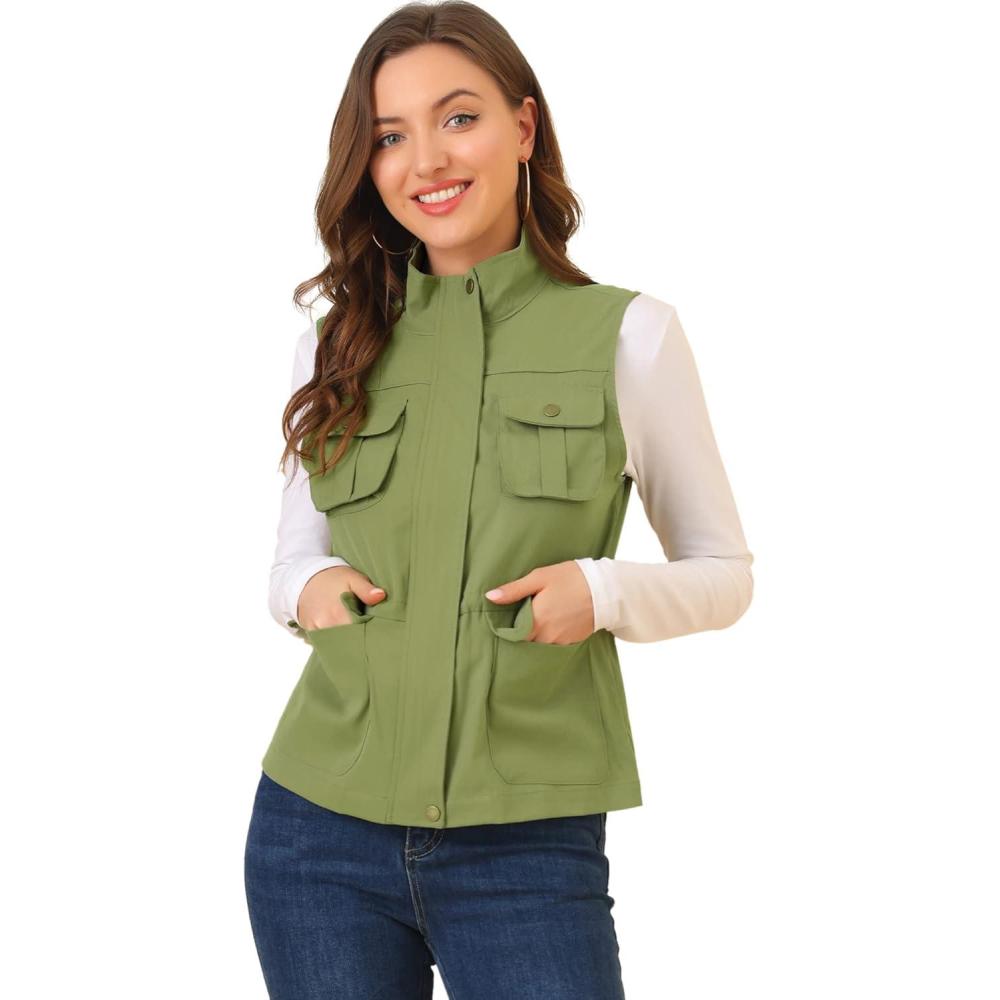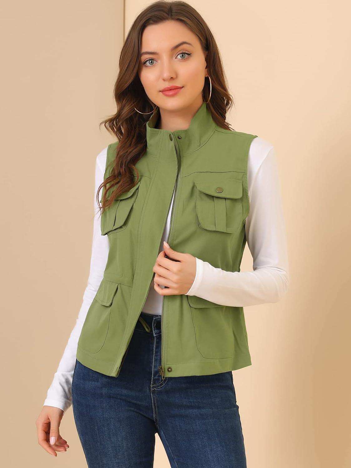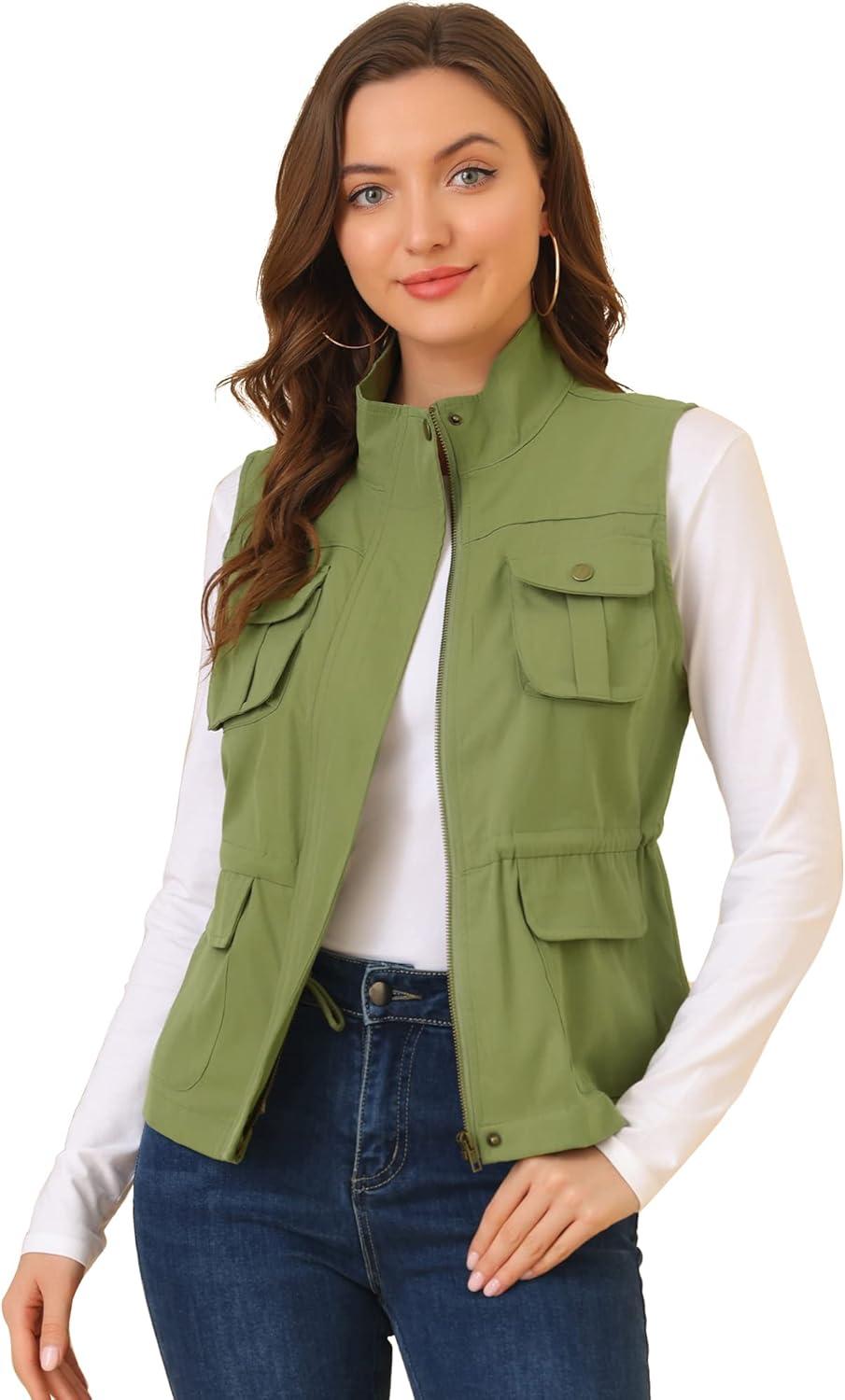 Allegra K Women’s Casual Stand Collar Anorak Cargo Vests Sleeveless Utility Jacket