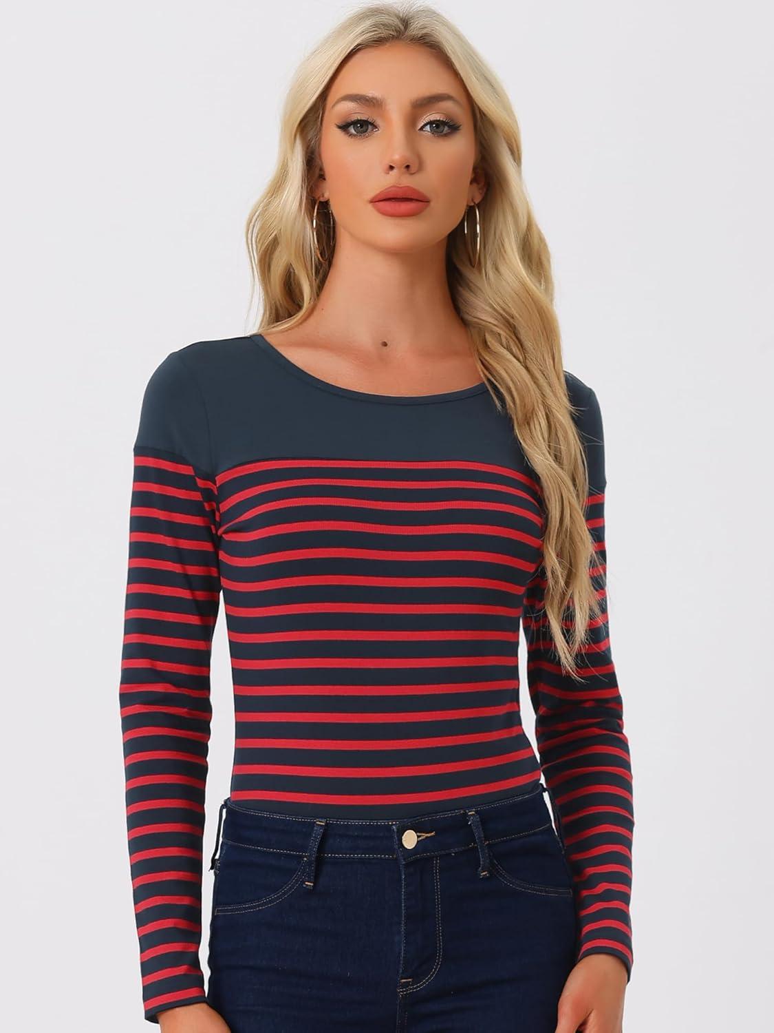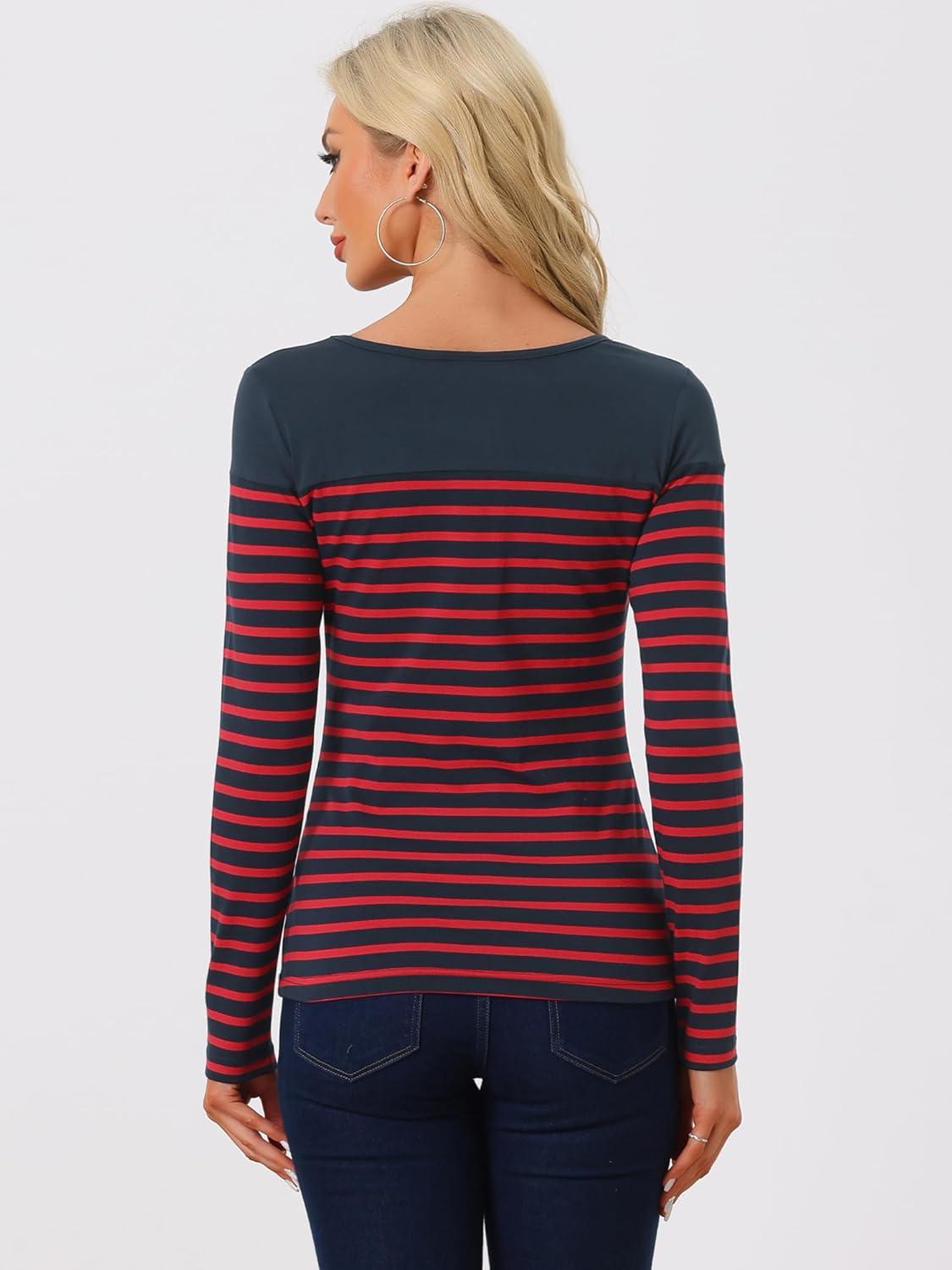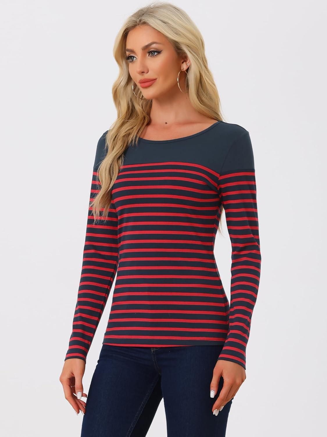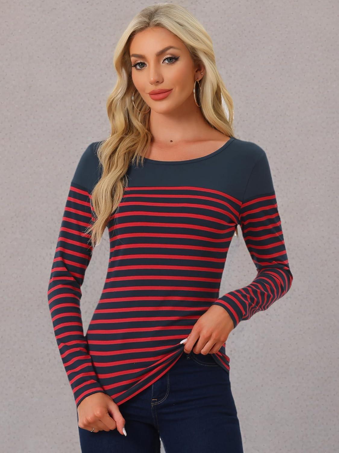 These womens long sleeve striped t shirts offer a modern on a timeless pattern, combining comfort and fashion effortlessly.