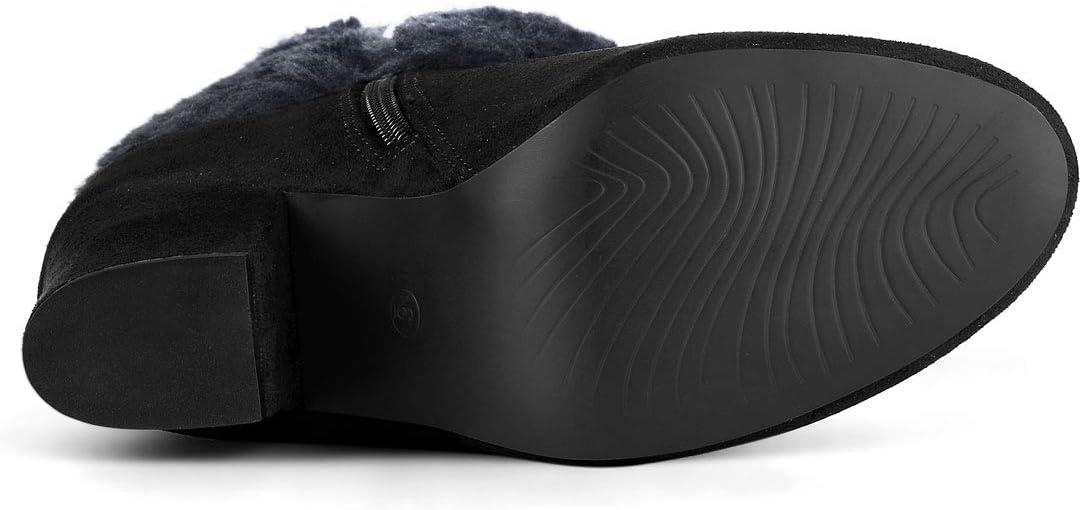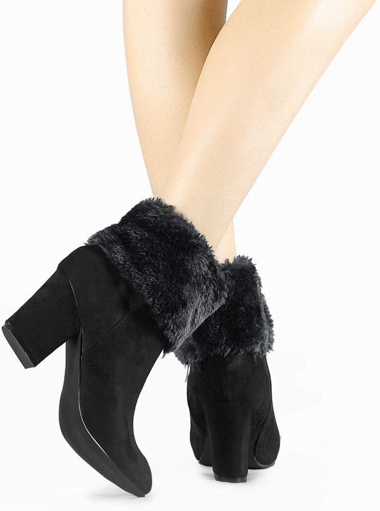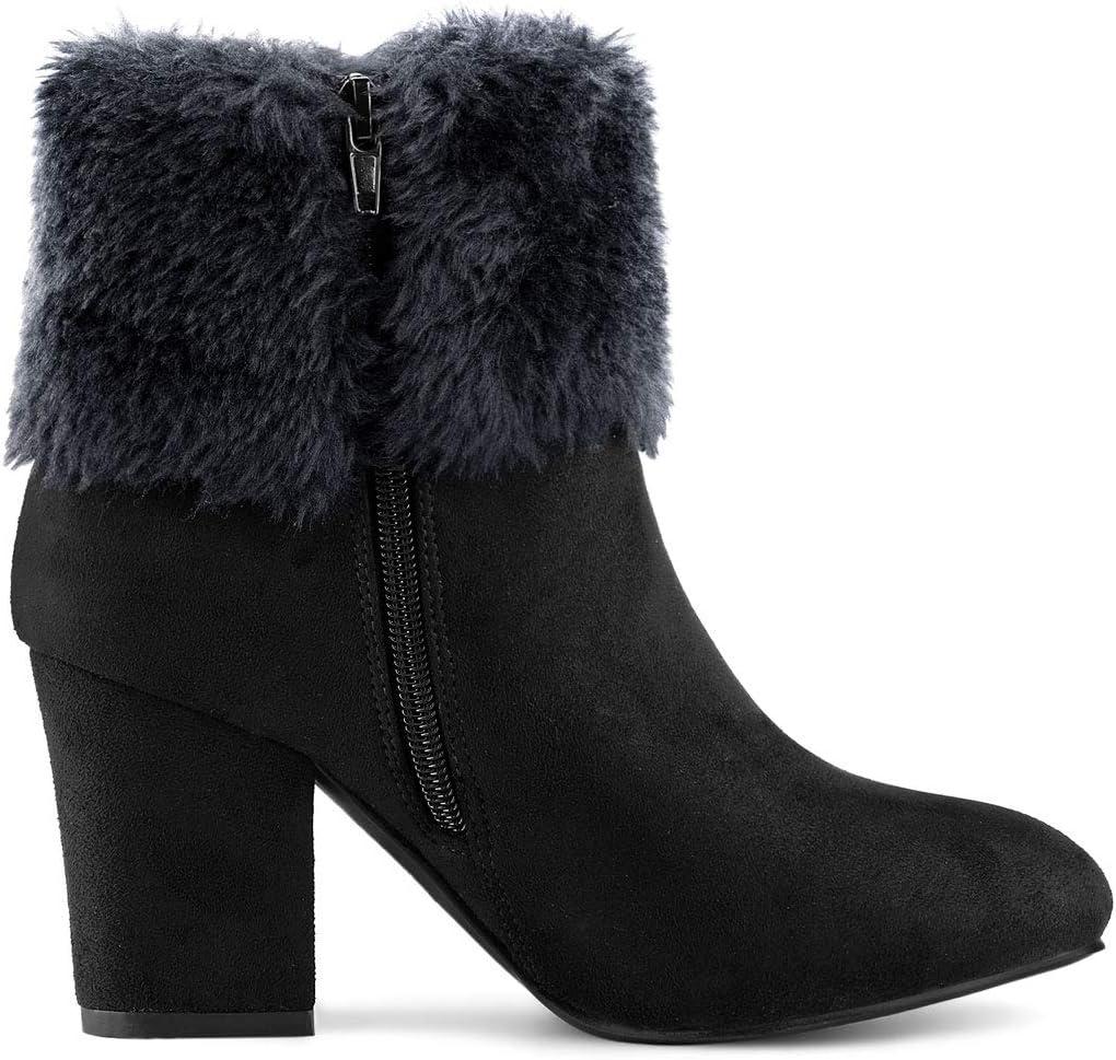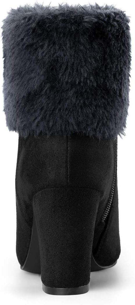 Allegra K Women's Christmas Faux Fur Chunky Heel Ankle Boots(Black)