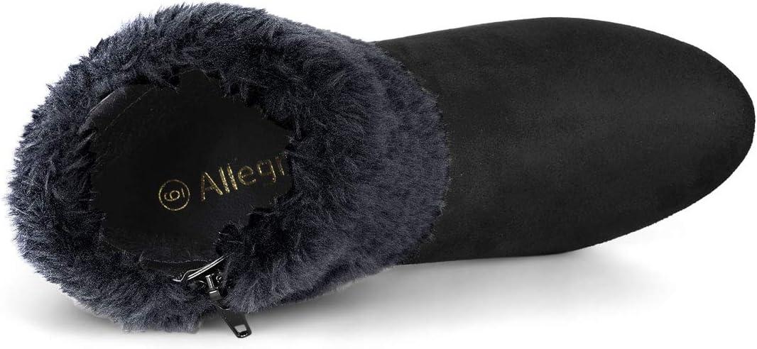 Allegra K Women’s Christmas Faux Fur Chunky Heel Ankle Boots(Black)