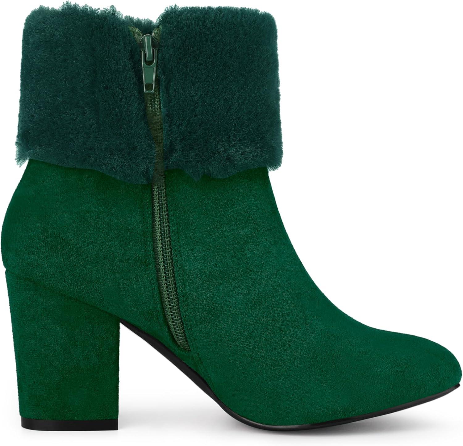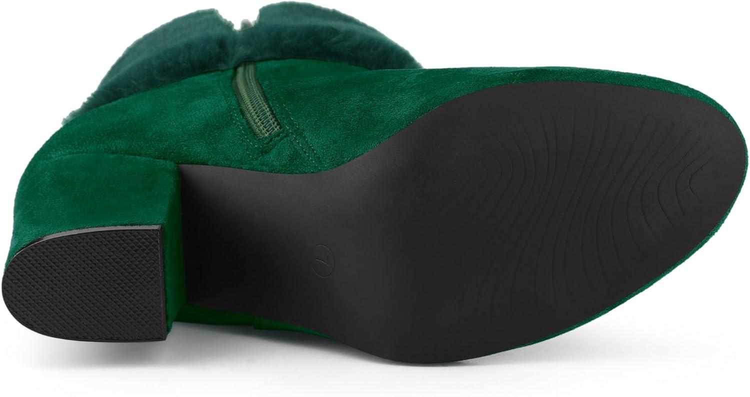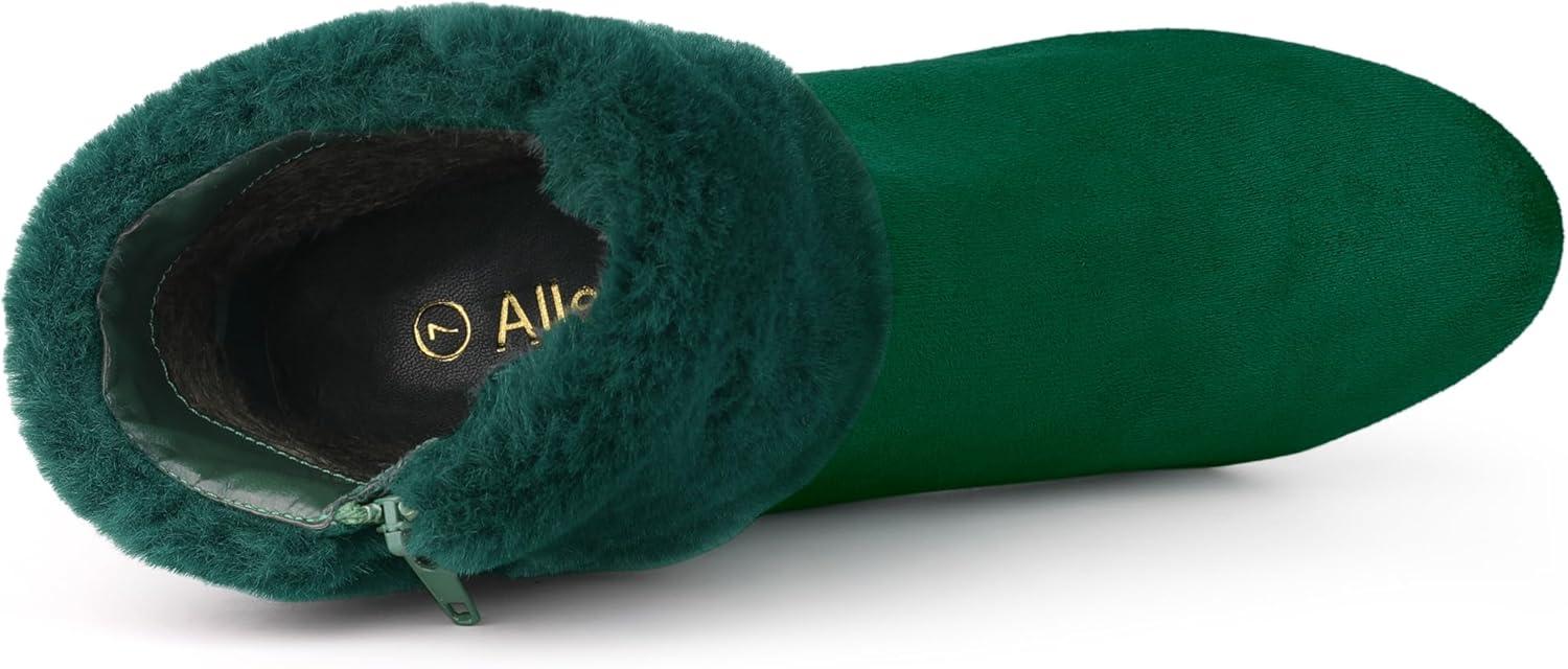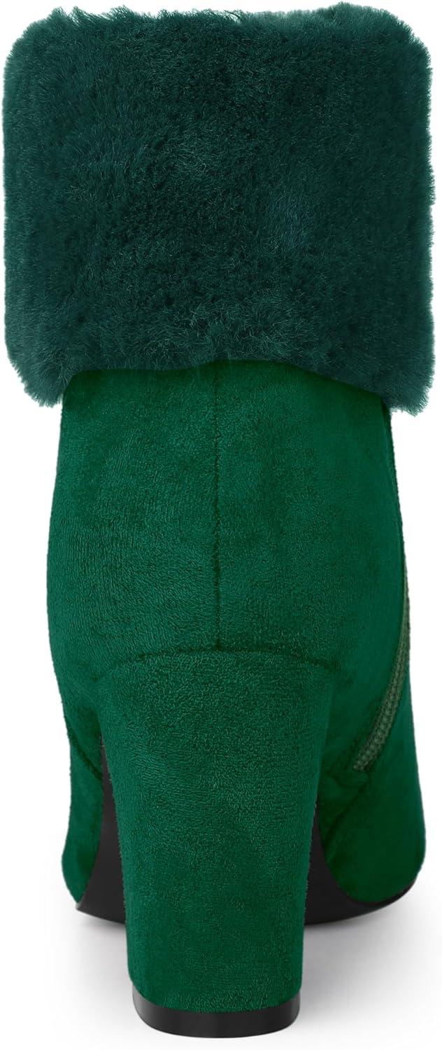 Allegra K Women's Christmas Faux Fur Chunky Heel Ankle Boots(Green)