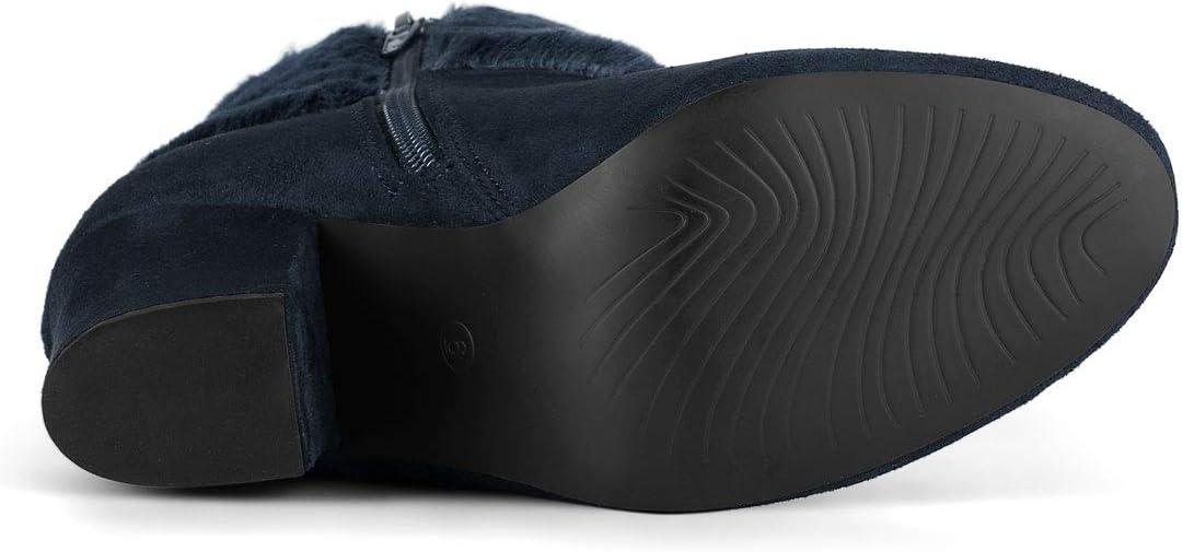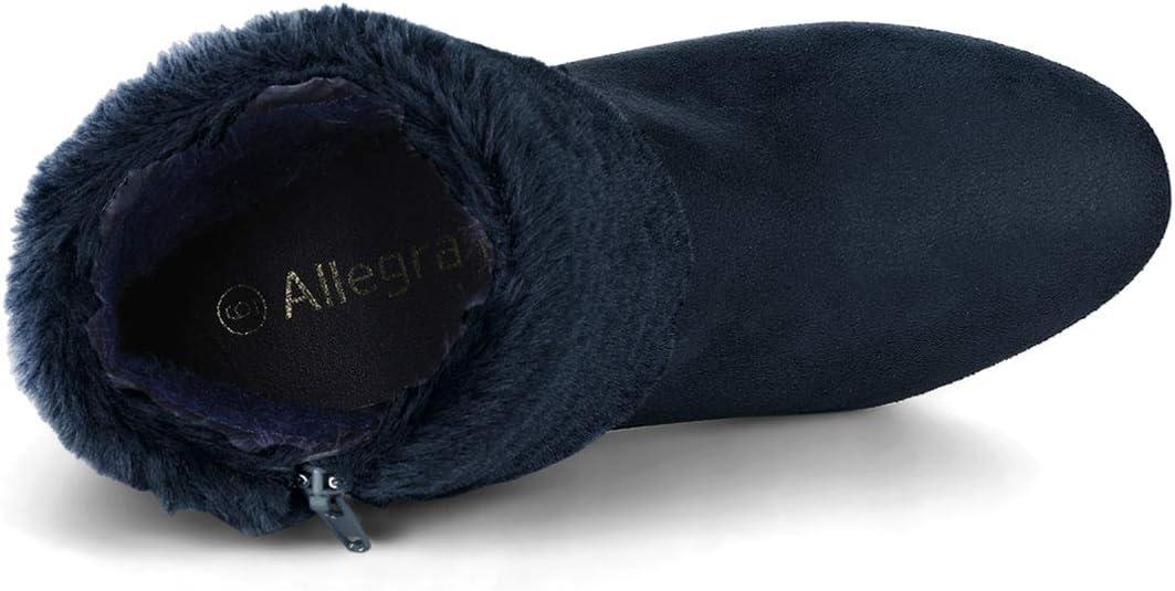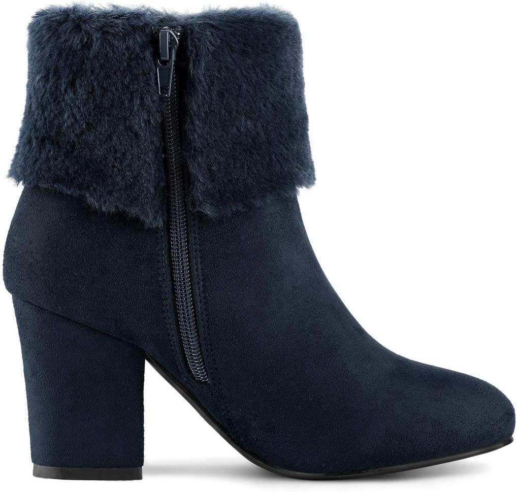 Allegra K Women's Christmas Faux Fur Chunky Heel Ankle Boots(Navy Blue)