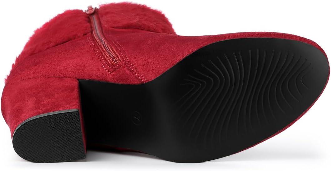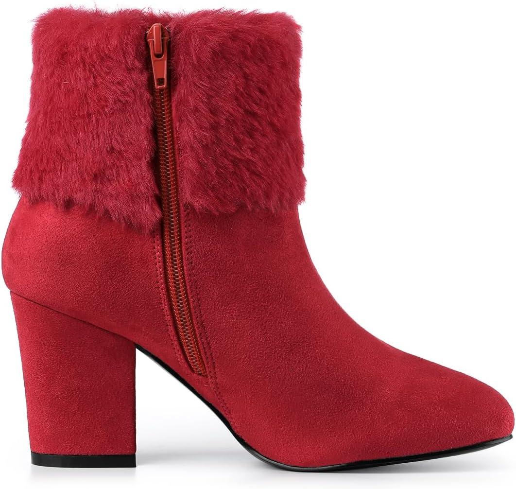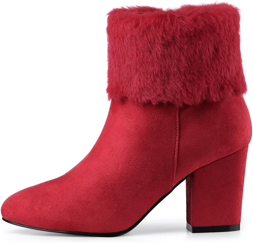 Allegra K Women's Christmas Faux Fur Chunky Heel Ankle Boots(Red)