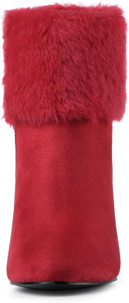 Allegra K Women’s Christmas Faux Fur Chunky Heel Ankle Boots(Red)