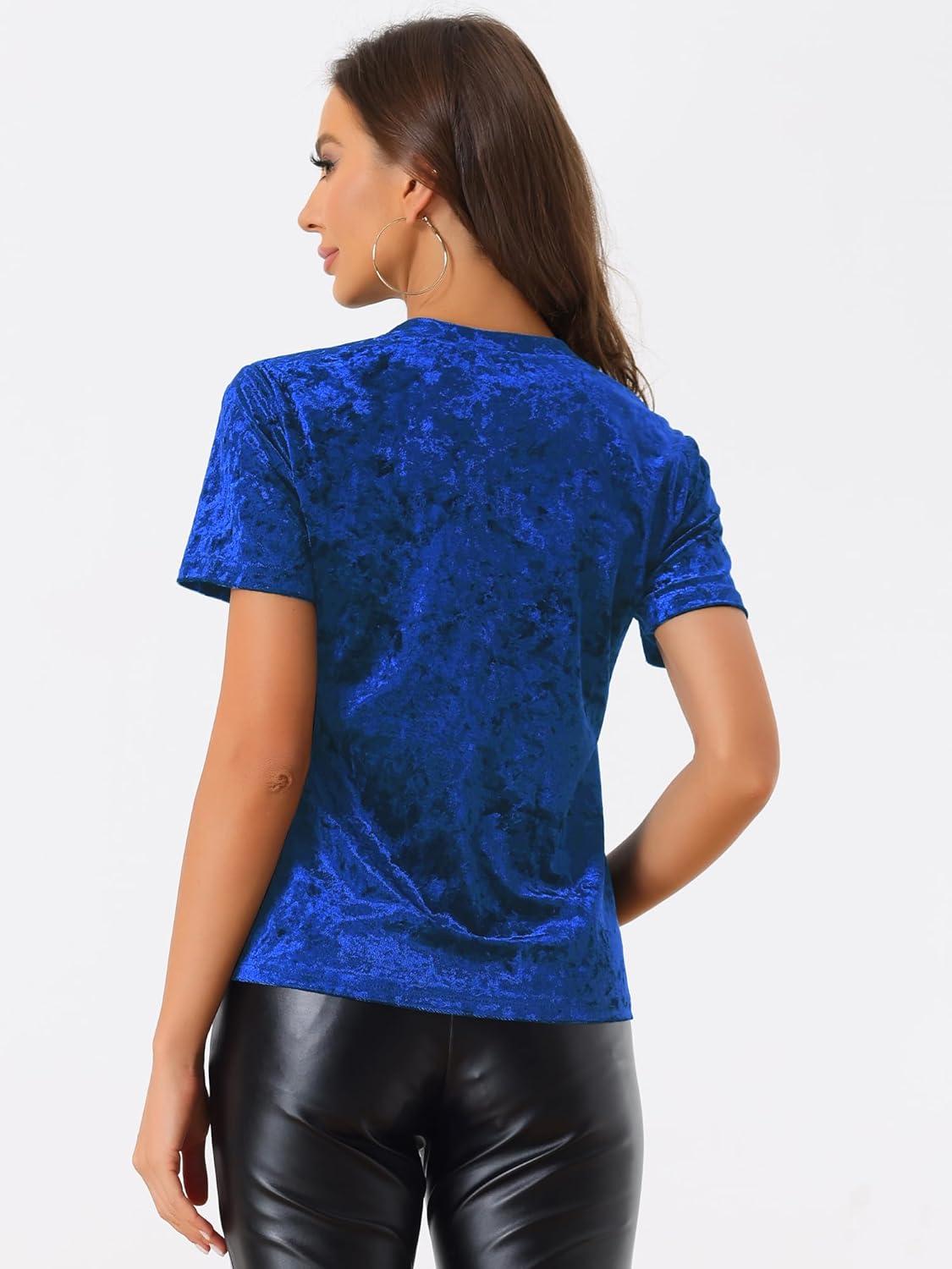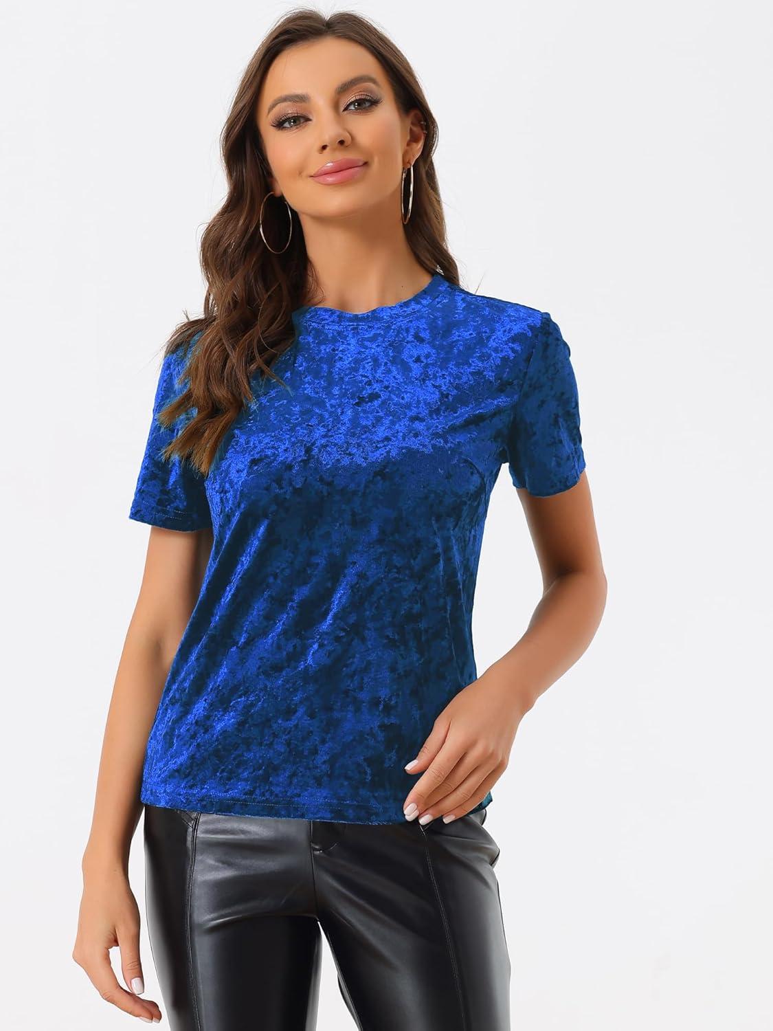 Allegra K Women’s Christmas Velvet Top Crew Neck Short Sleeve Casual T-Shirt(Sapphire Blue)