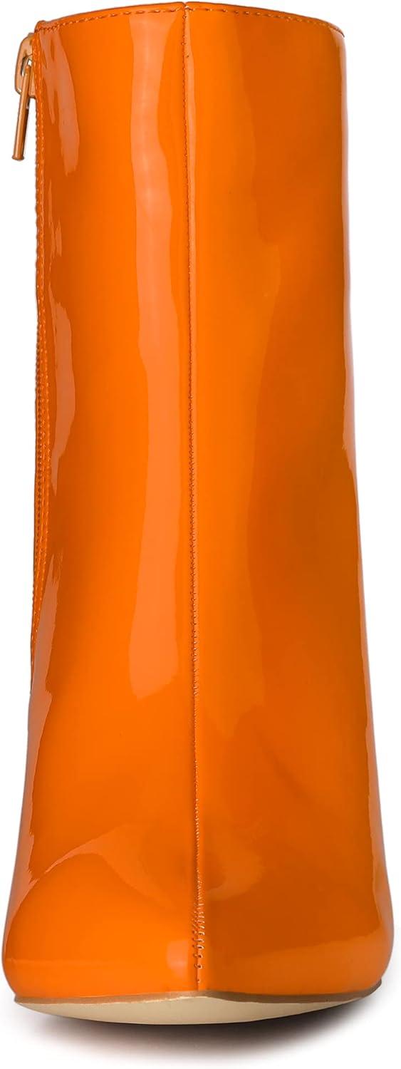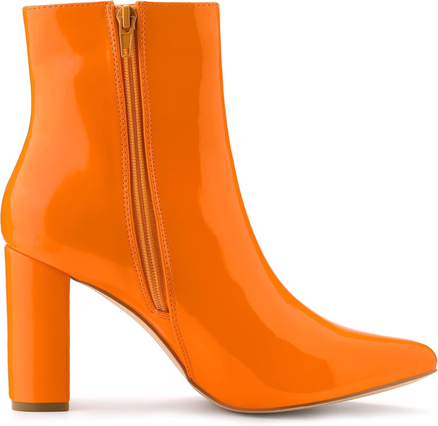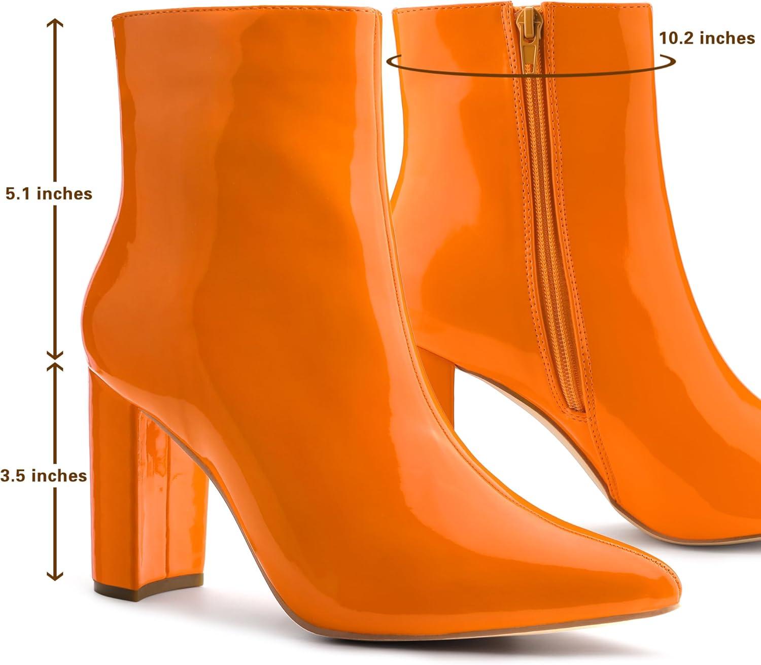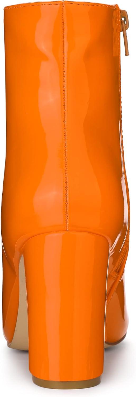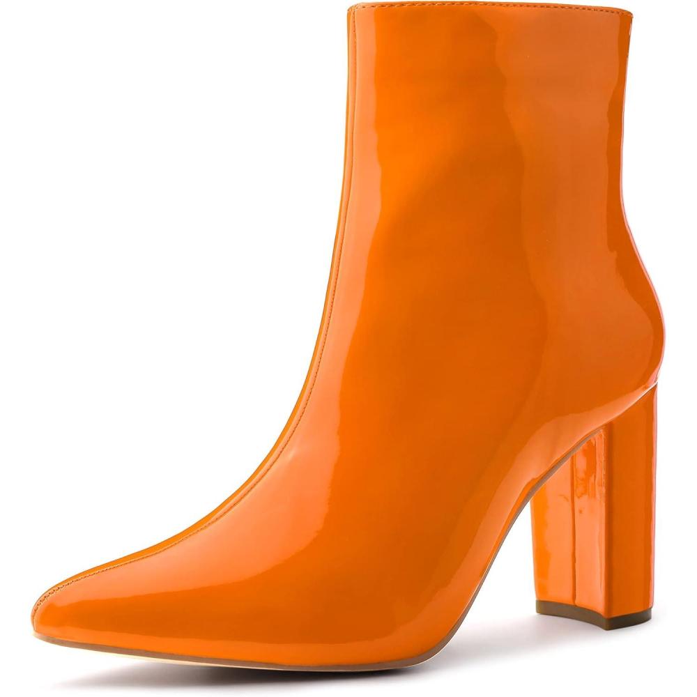 Allegra K Women's Chunky Heel Pointed Toe Zipper Ankle Boots(Orange)
