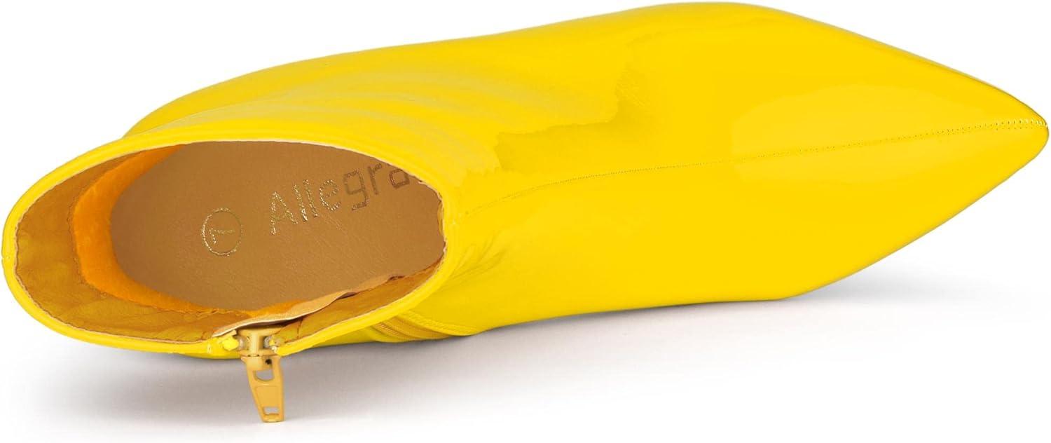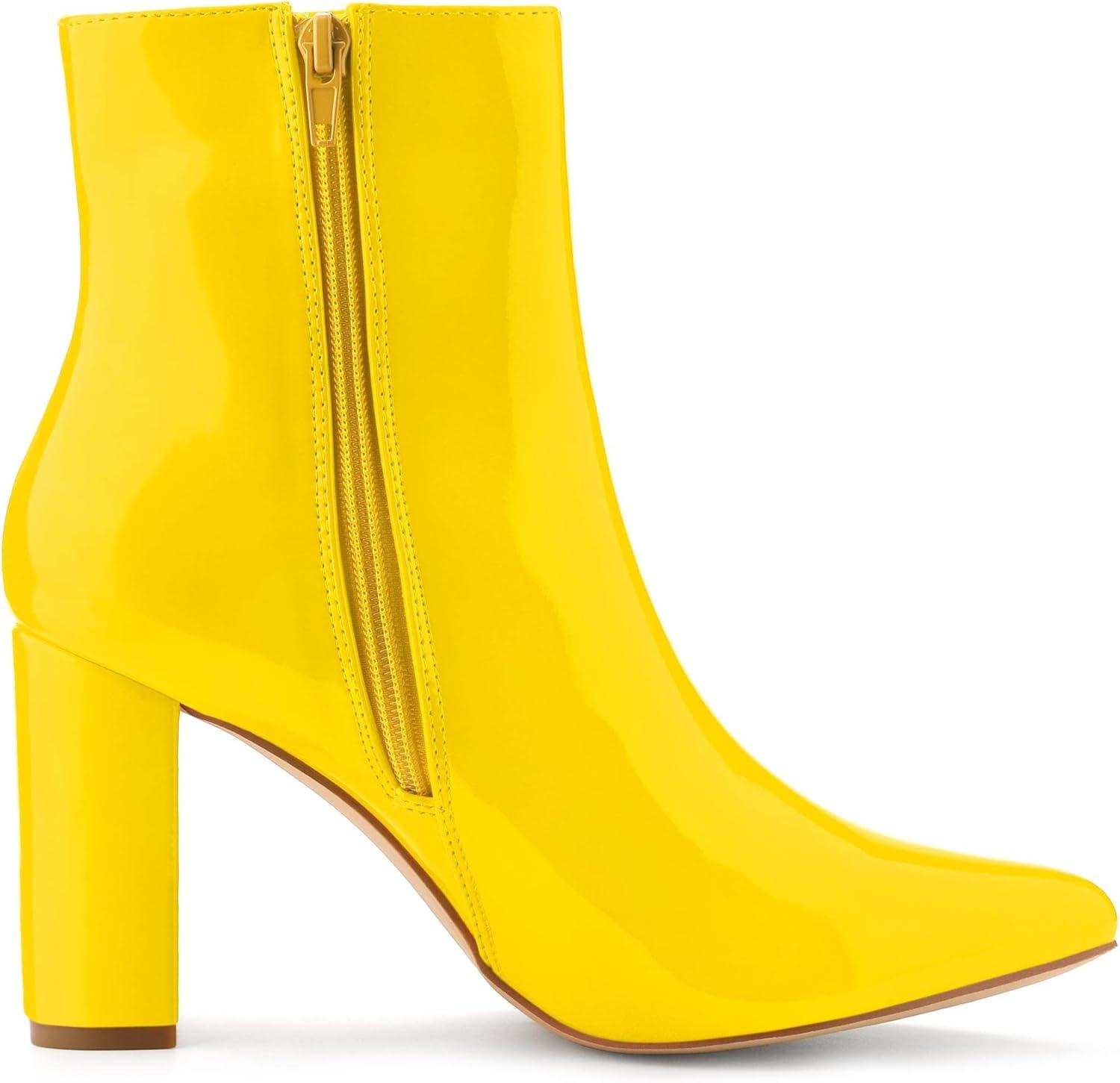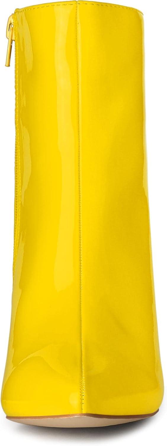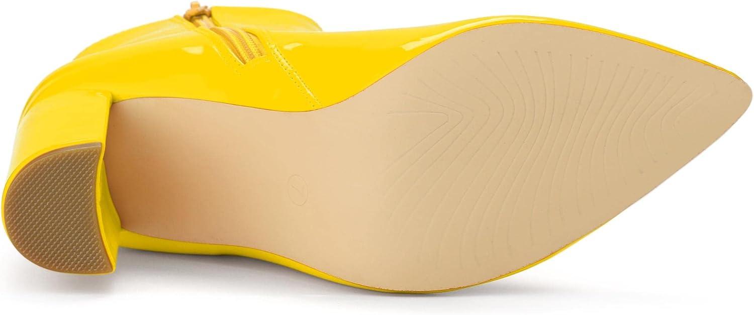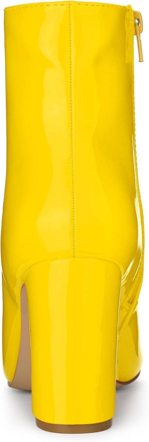 Allegra K Women’s Chunky Heel Pointed Toe Zipper Ankle Boots(Yellow)